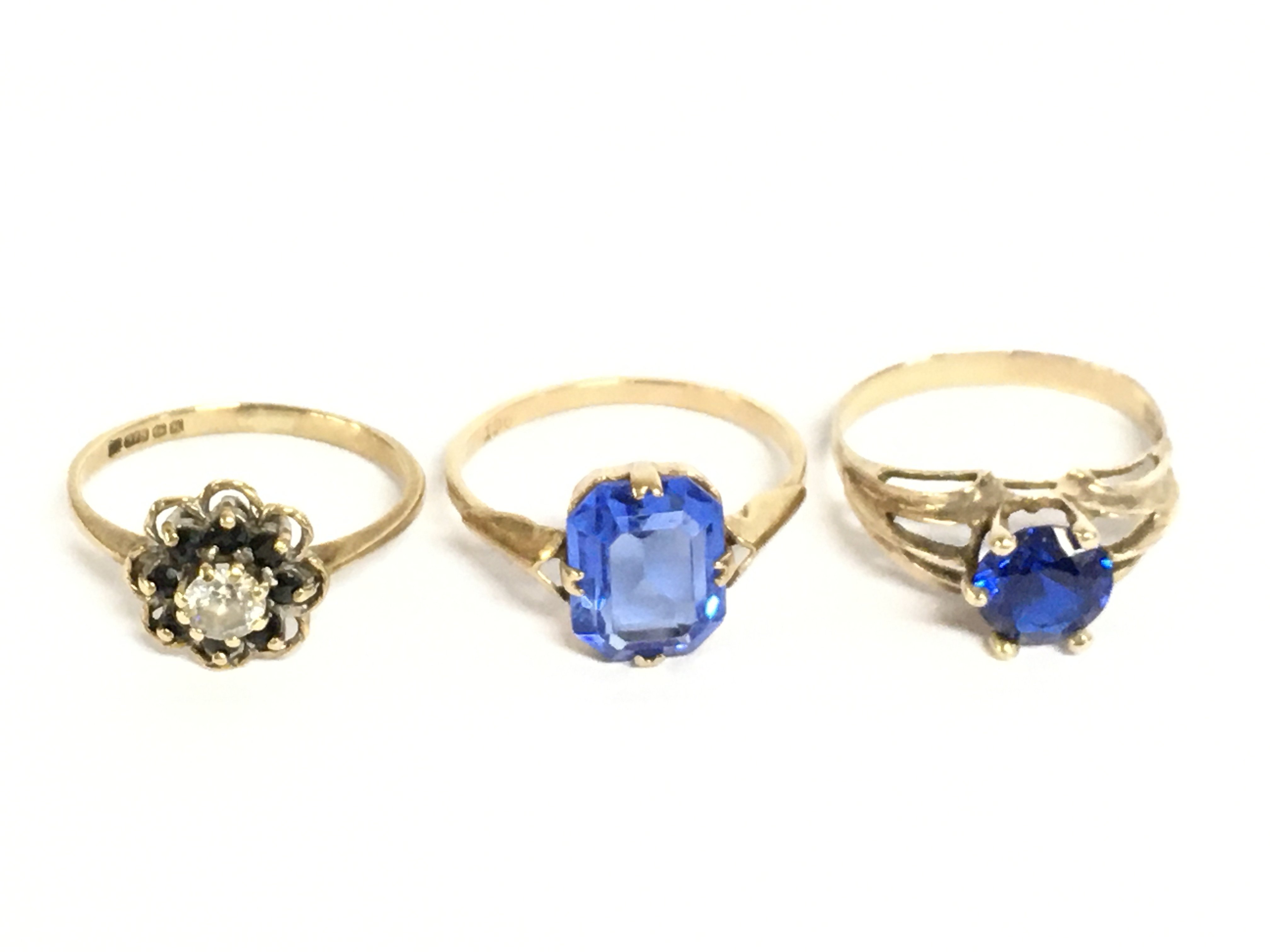 A collection of 9 carat gold rings set with various gem stones and one 8 carat gold ring. Sizes O & M. Overall weight 5.2G Postage category A
