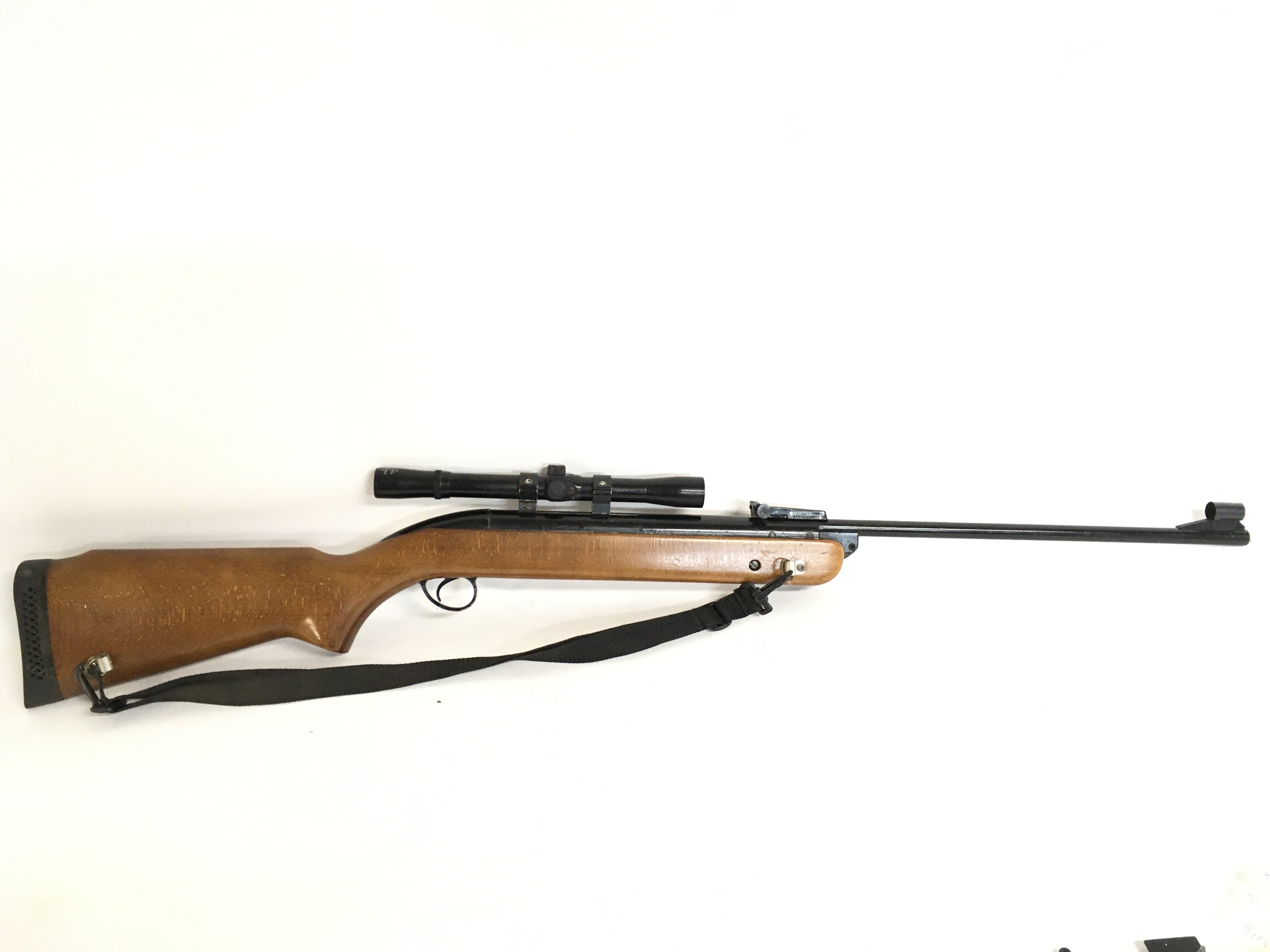A vintage BSA .22 calibre Air rifle with a model 9 original 4x20 scope. Also including some pellets and a carry bag. This lot cannot be posted