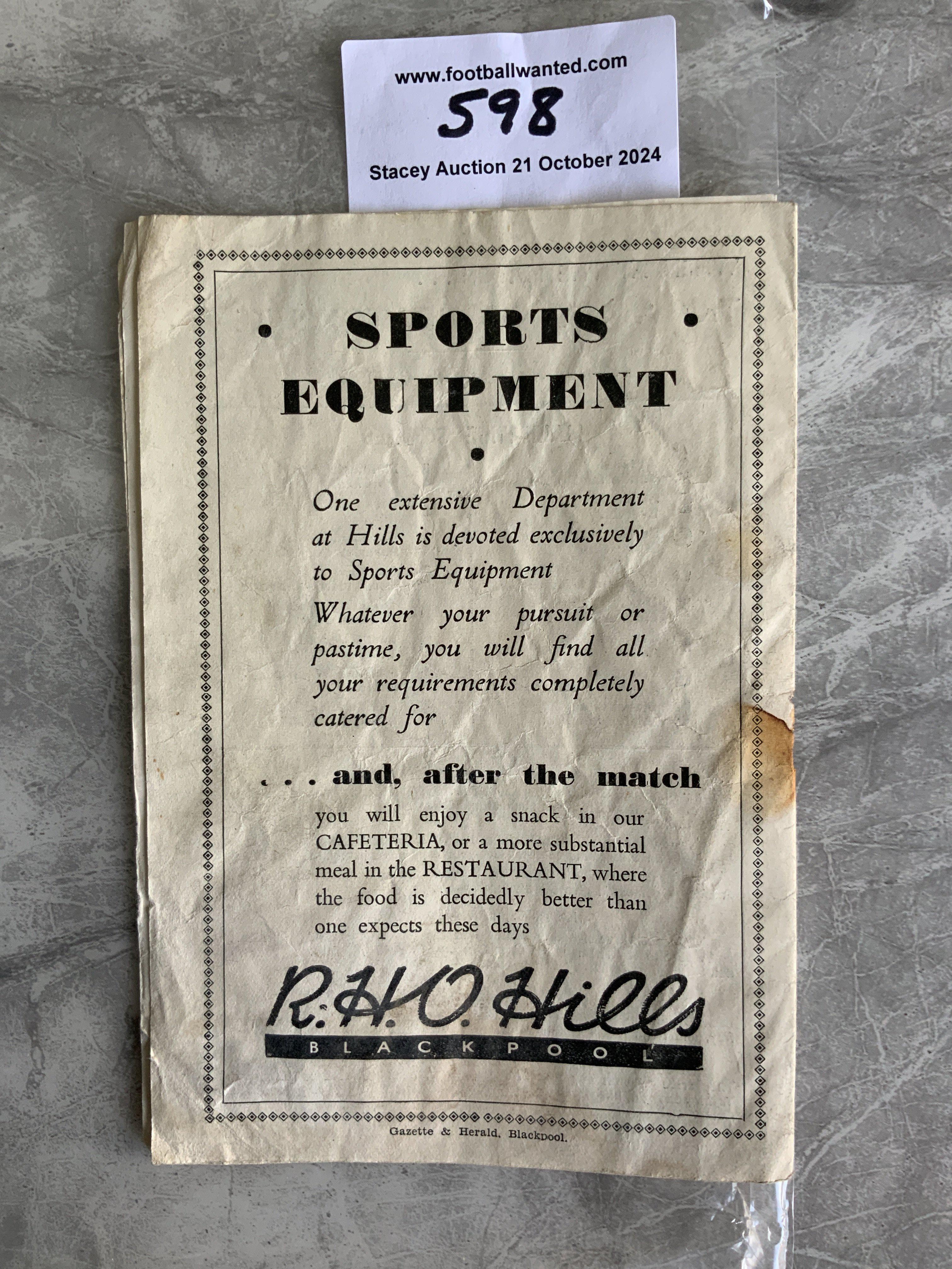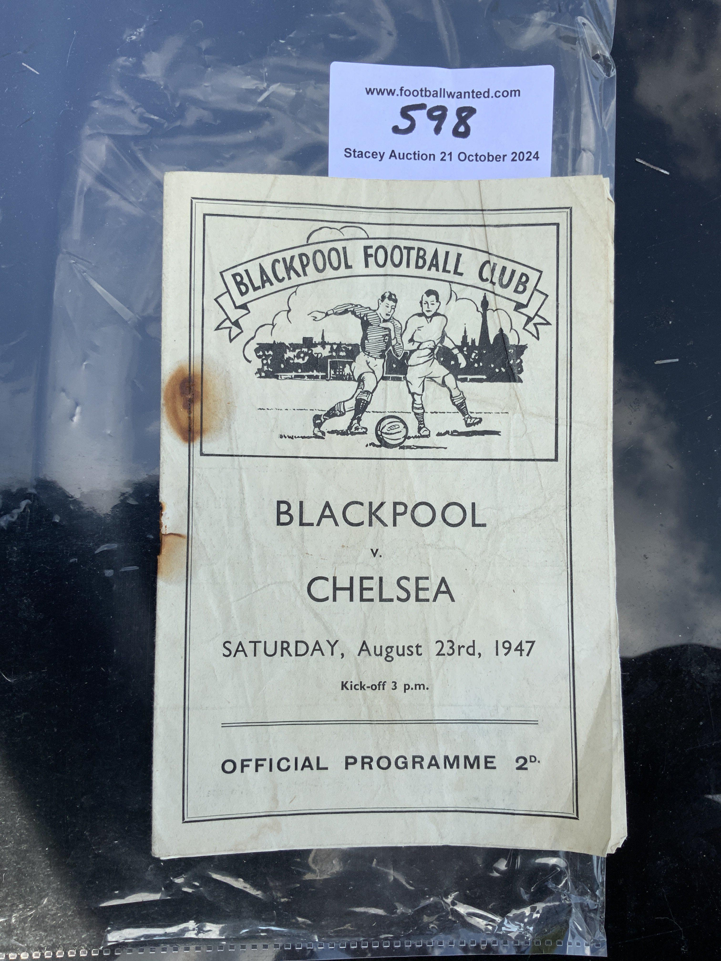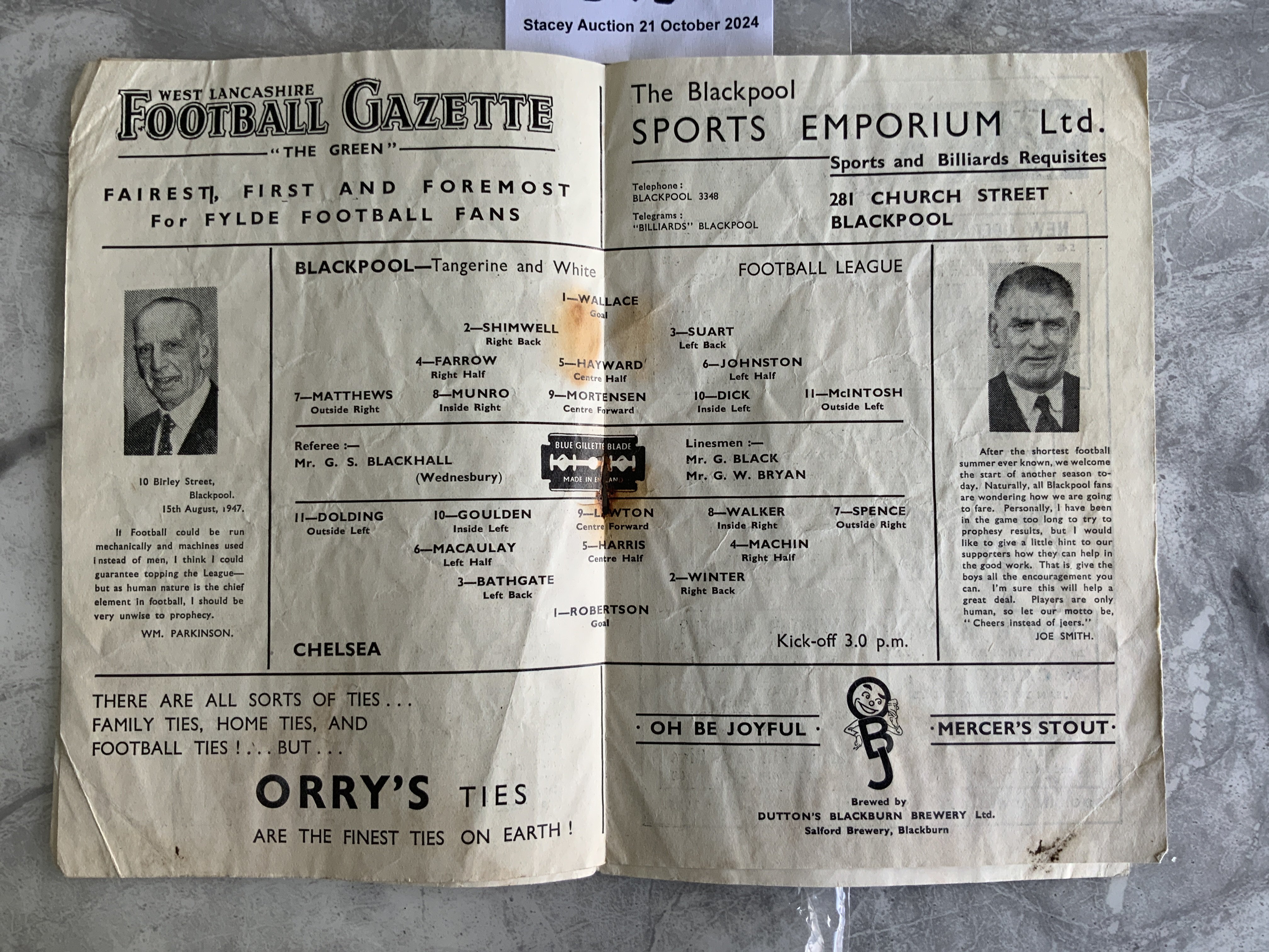 47/48 Blackpool v Chelsea Football Programme: Stanley Matthews debut match for Blackpool. Staple has rusted away leaving hole and there is a rust mark to front.