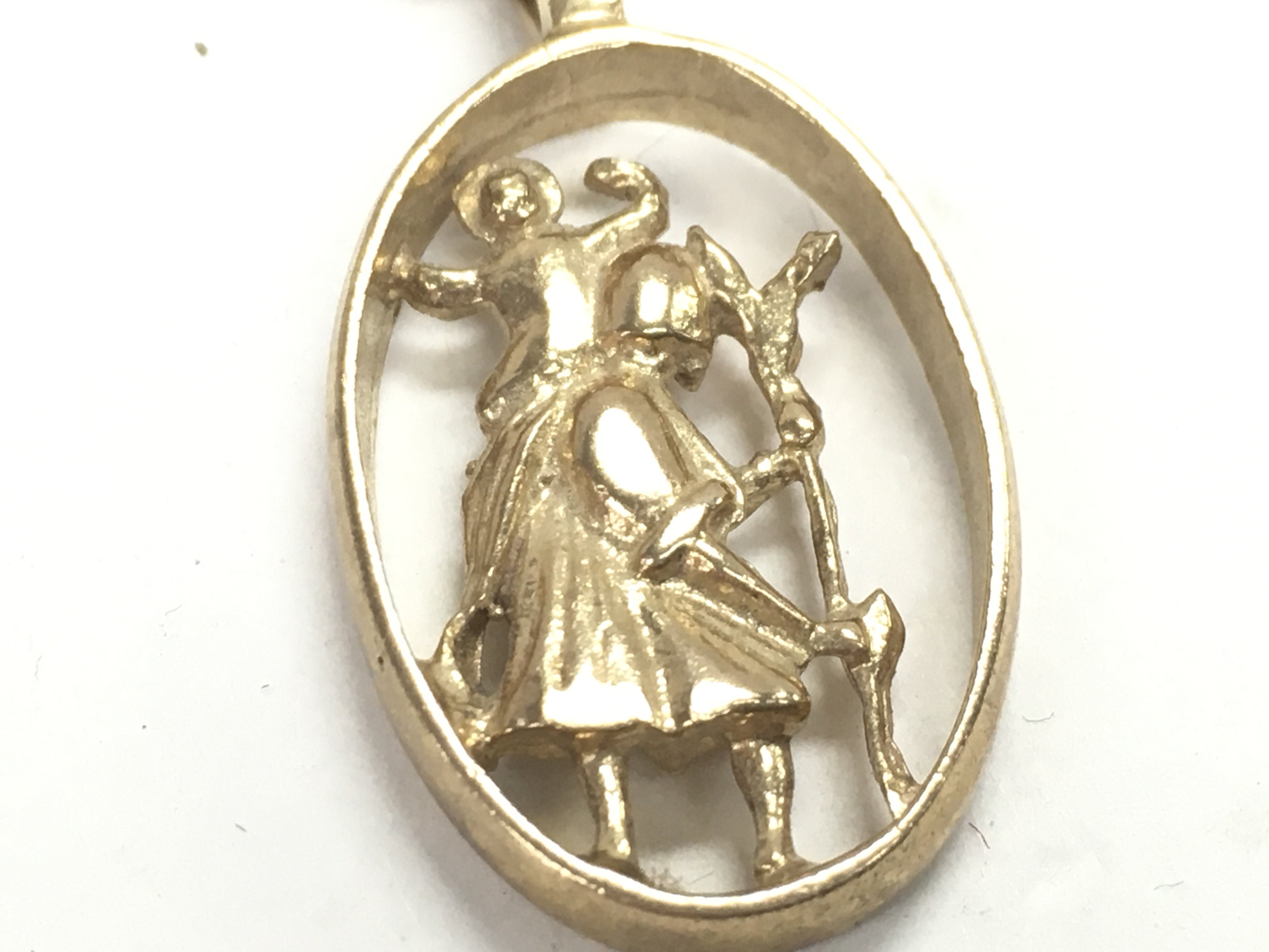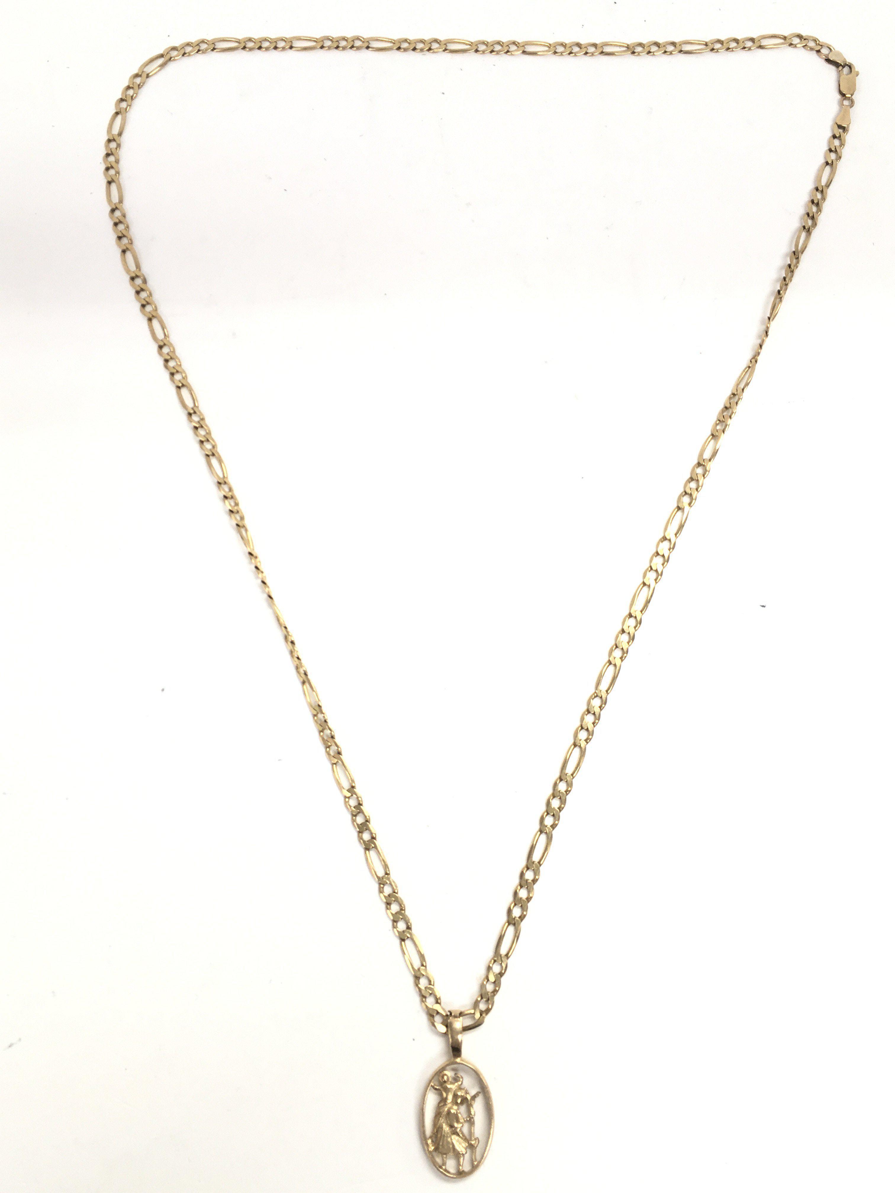 A 9 carat gold necklace with a 9 carat gold St Christopher pendant. Overall weight 22.5g Postage category A