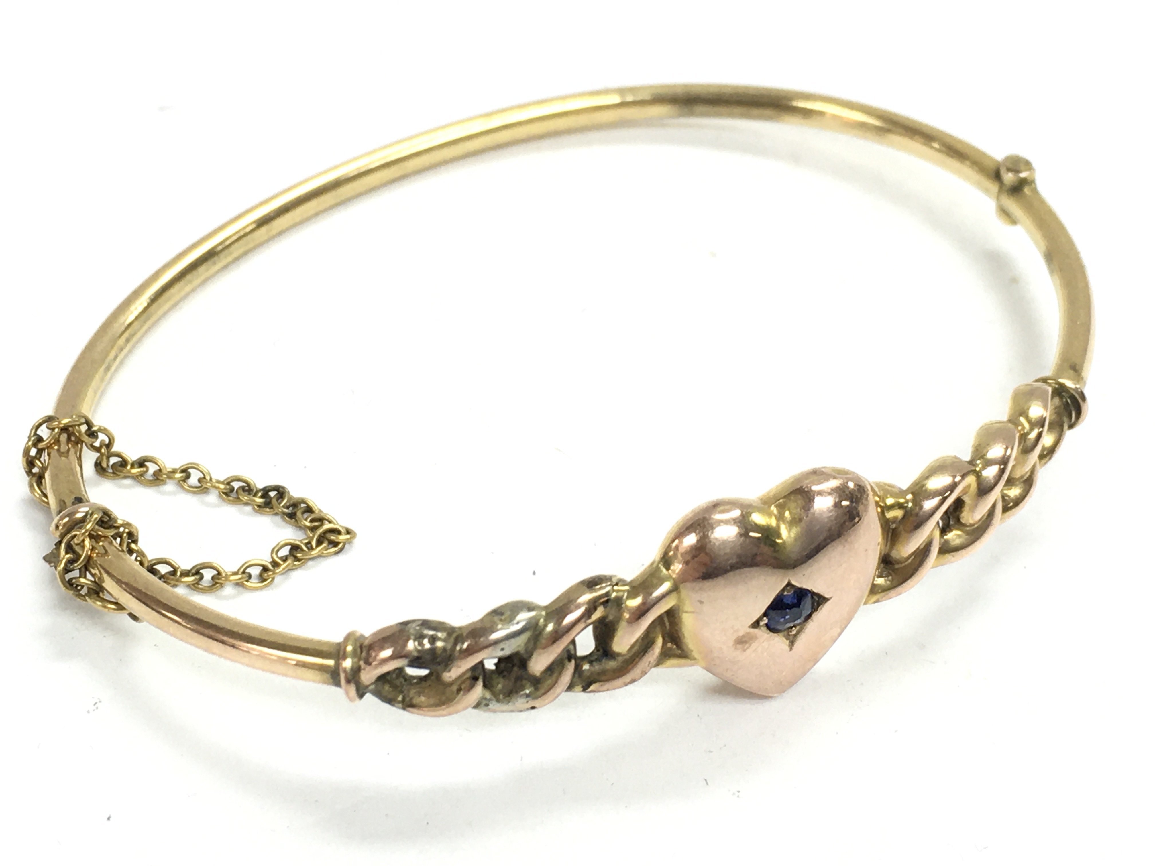 A 9 carat gold Edwardian heart shaped bangle, 4.8g. Postage category A