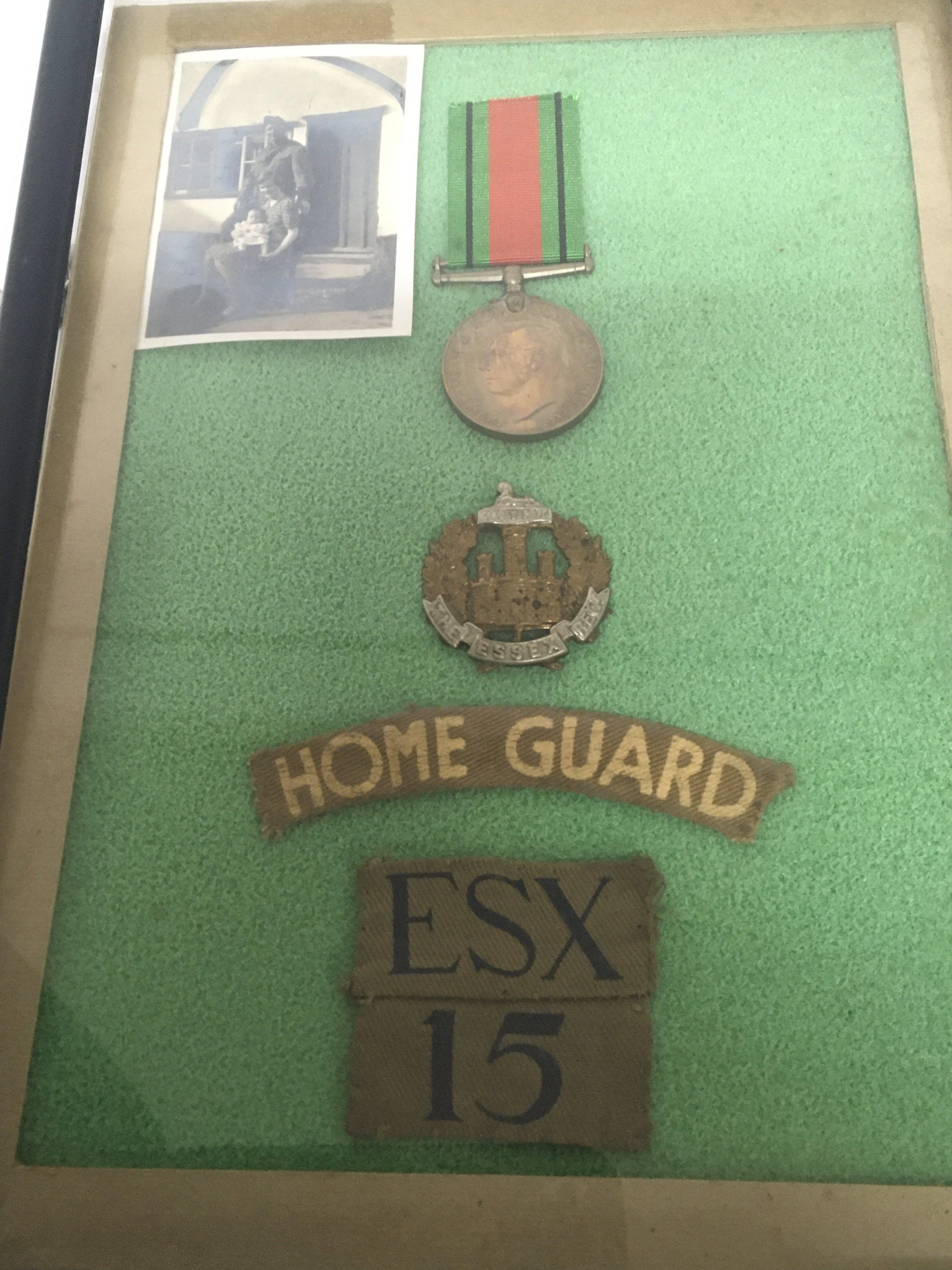 A Second World War medal Essex Home Guard. With photo cloth badges.