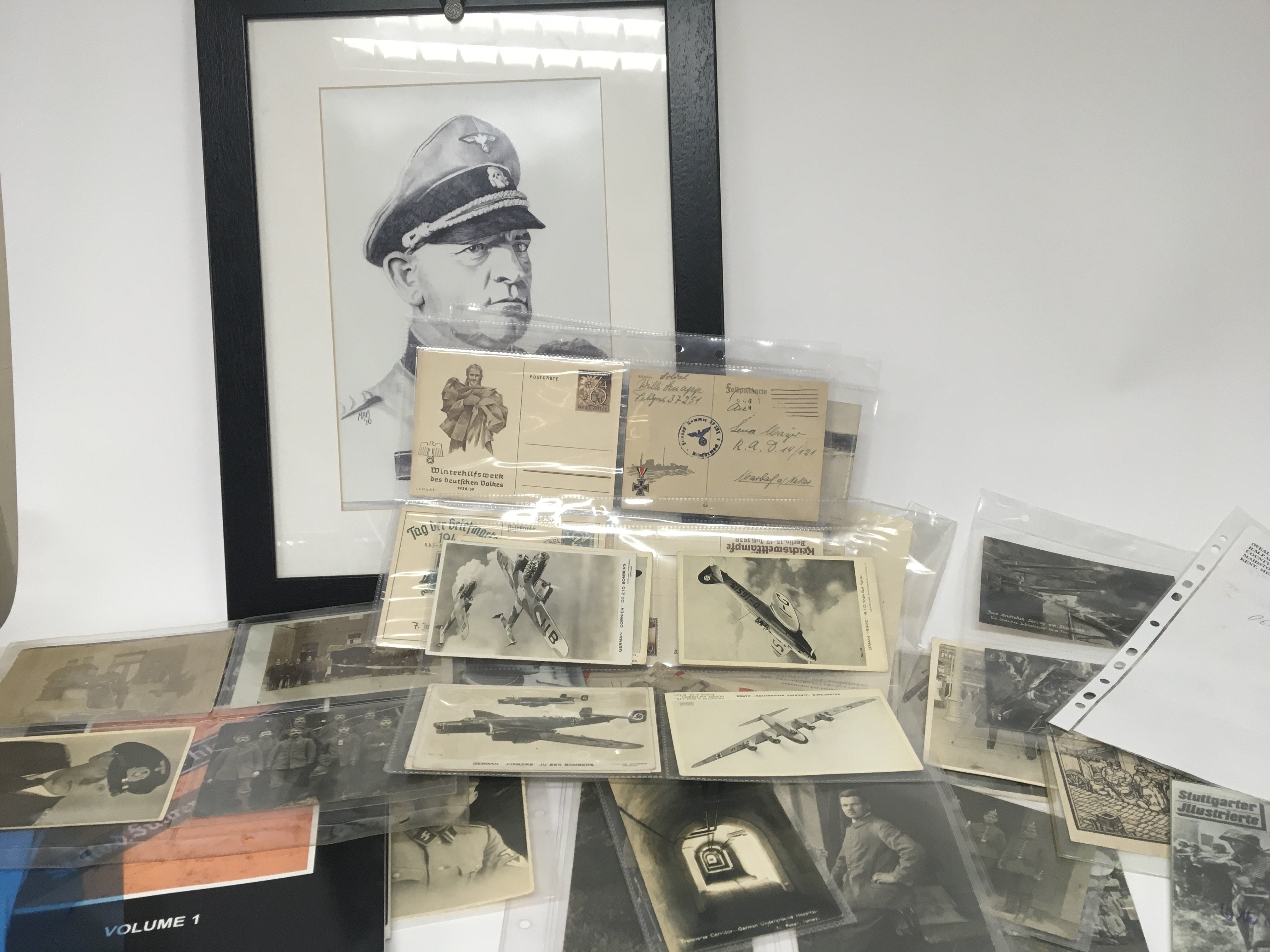 A collection of German First and Second World War Third Reich postcards and memorabilia and a copy Ronald Kray Order of Service and letter (copy)
