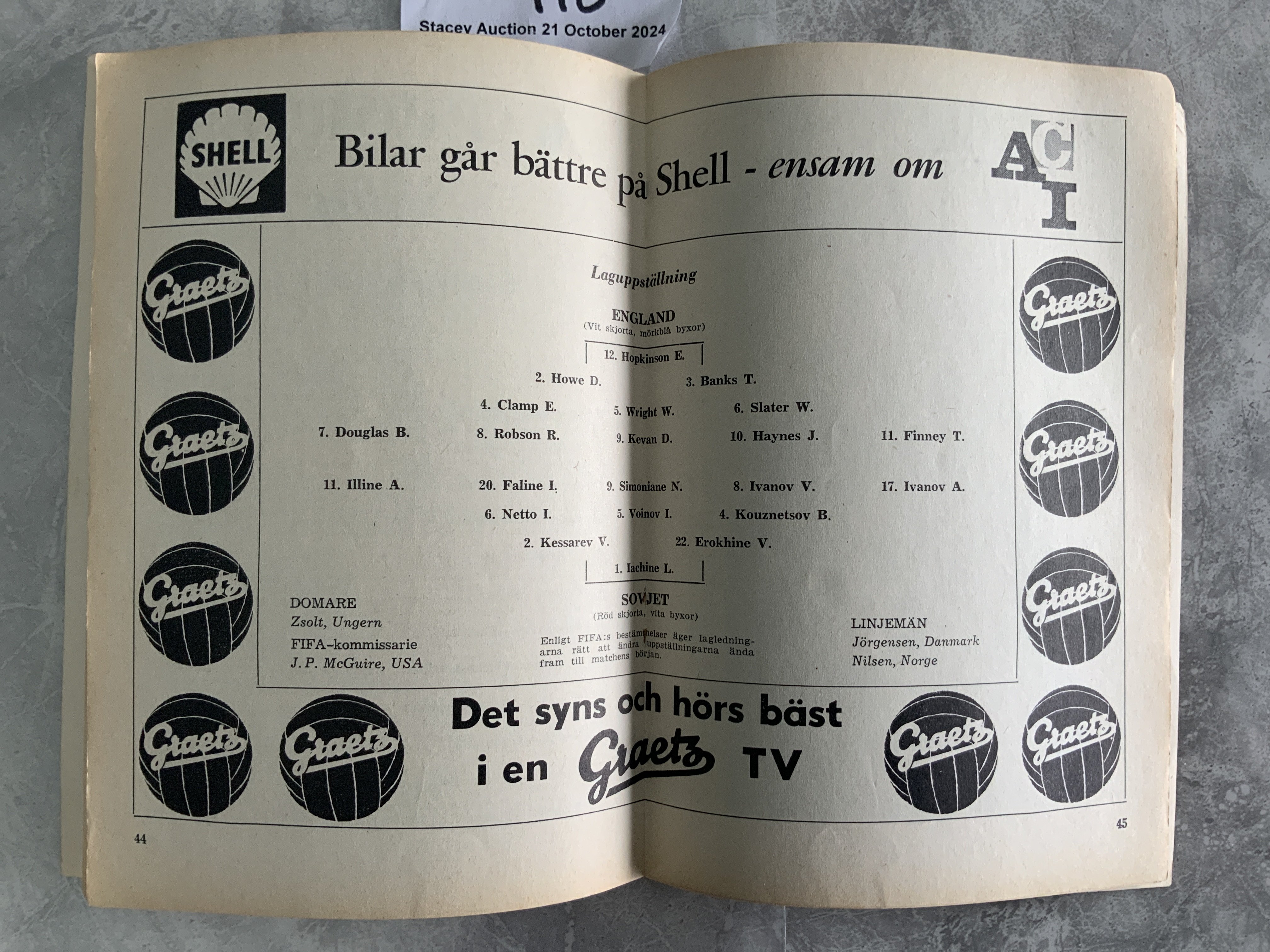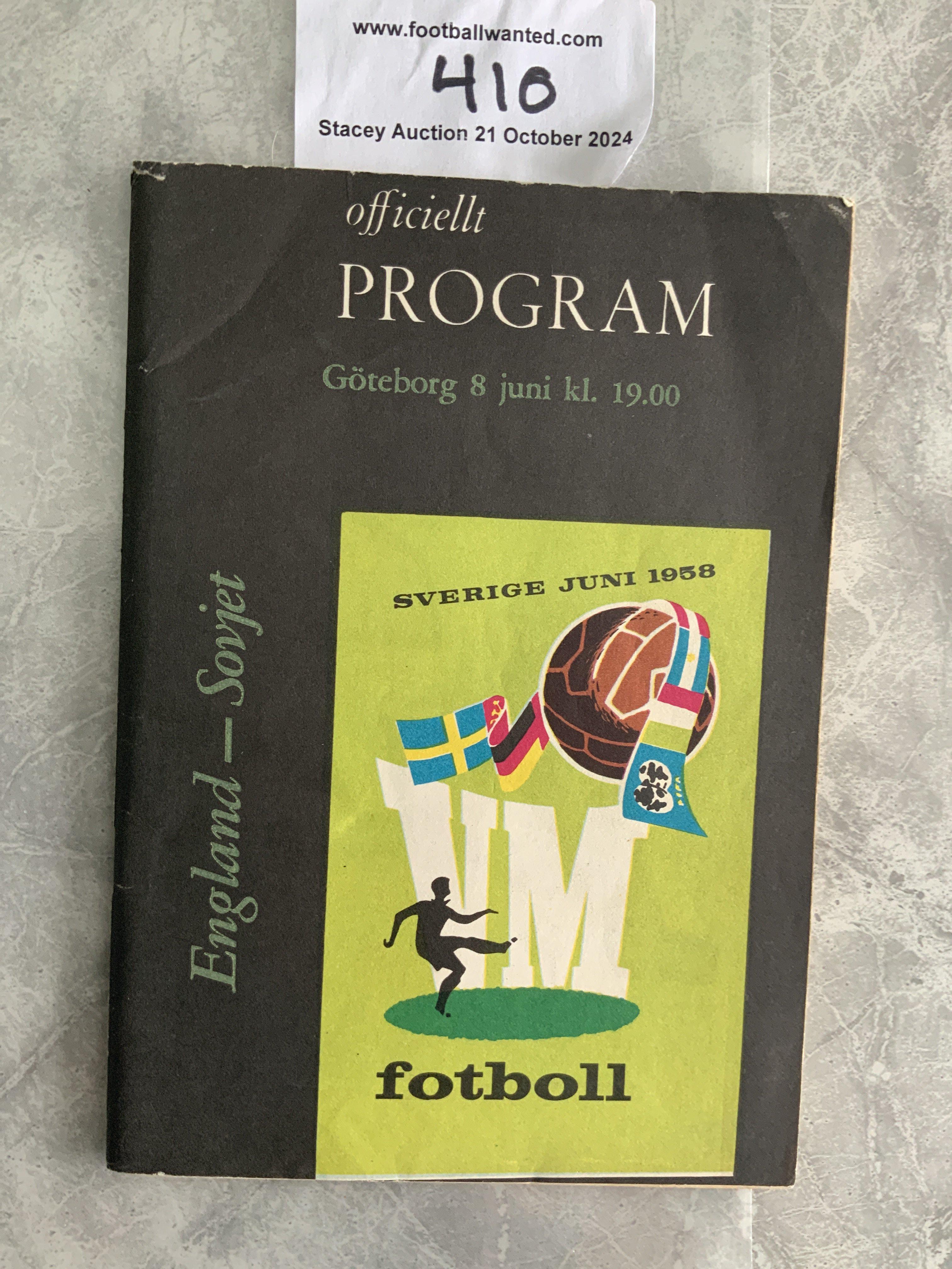 1958 World Cup England v Russia Football Programme: Dated 8 6 1958 played in Sweden. Good with centre team page loose. No team changes.