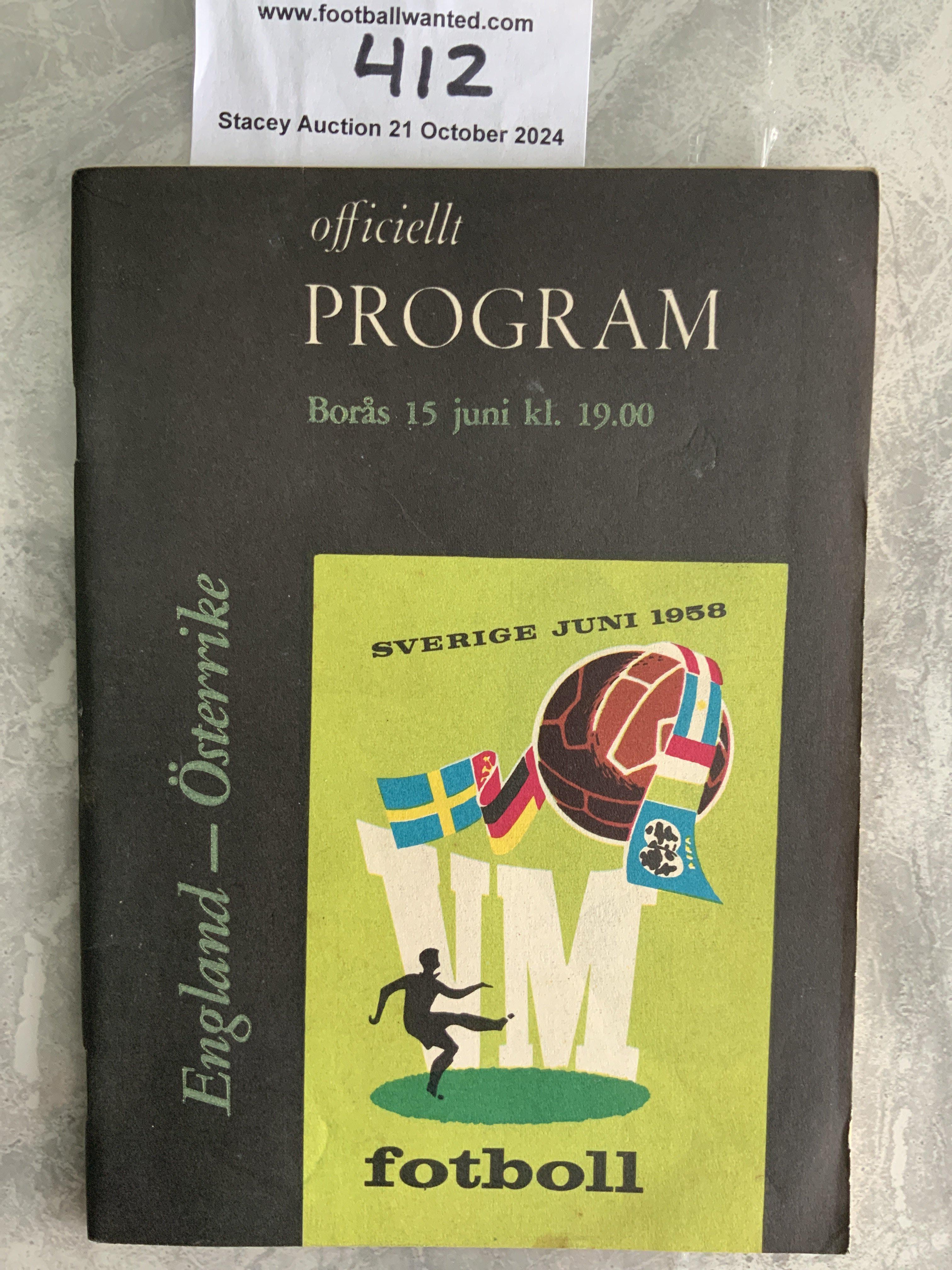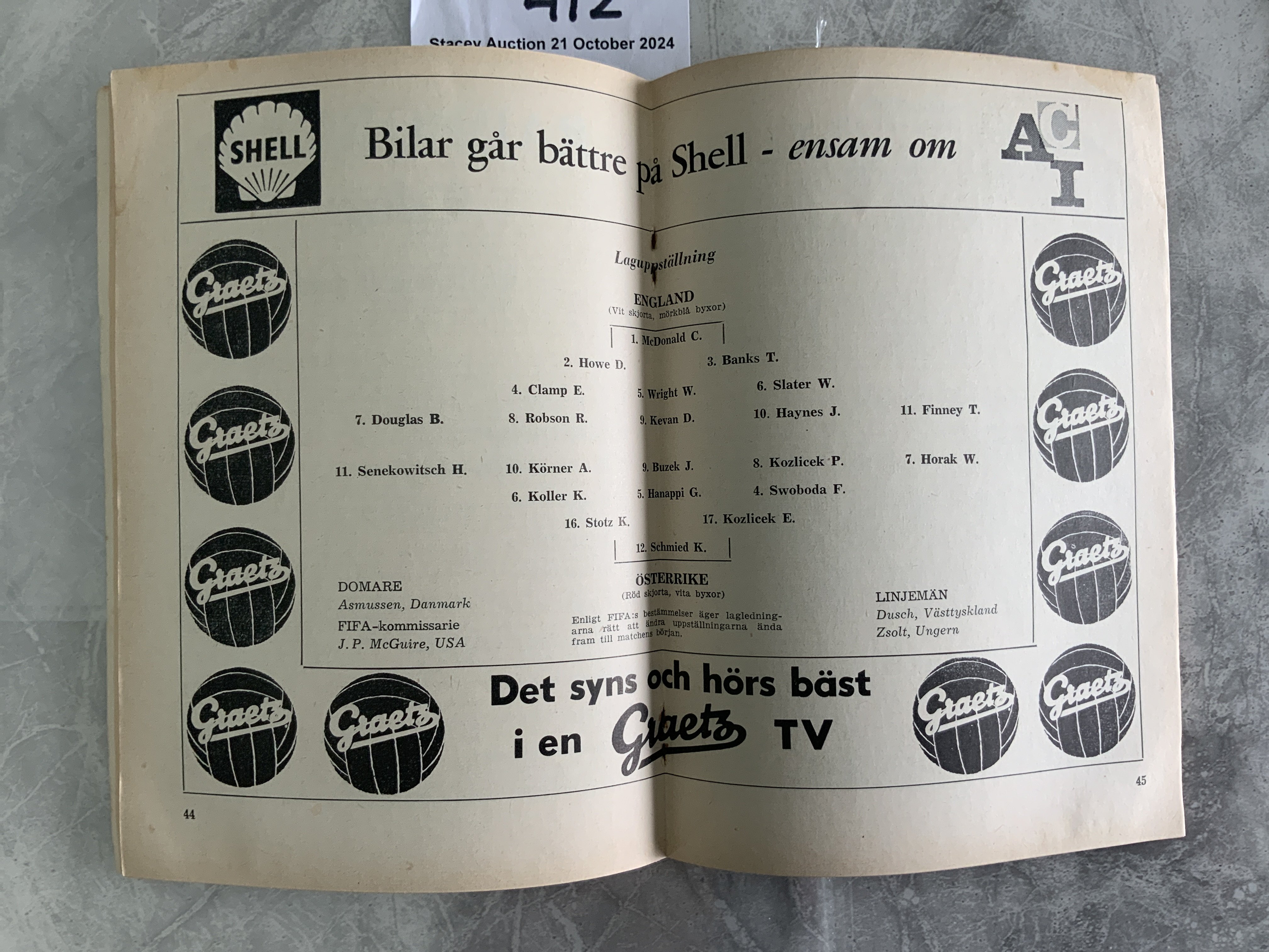1958 World Cup England v Austria Football Programme: Dated 15 6 1958 played in Sweden. Very good with no team changes.