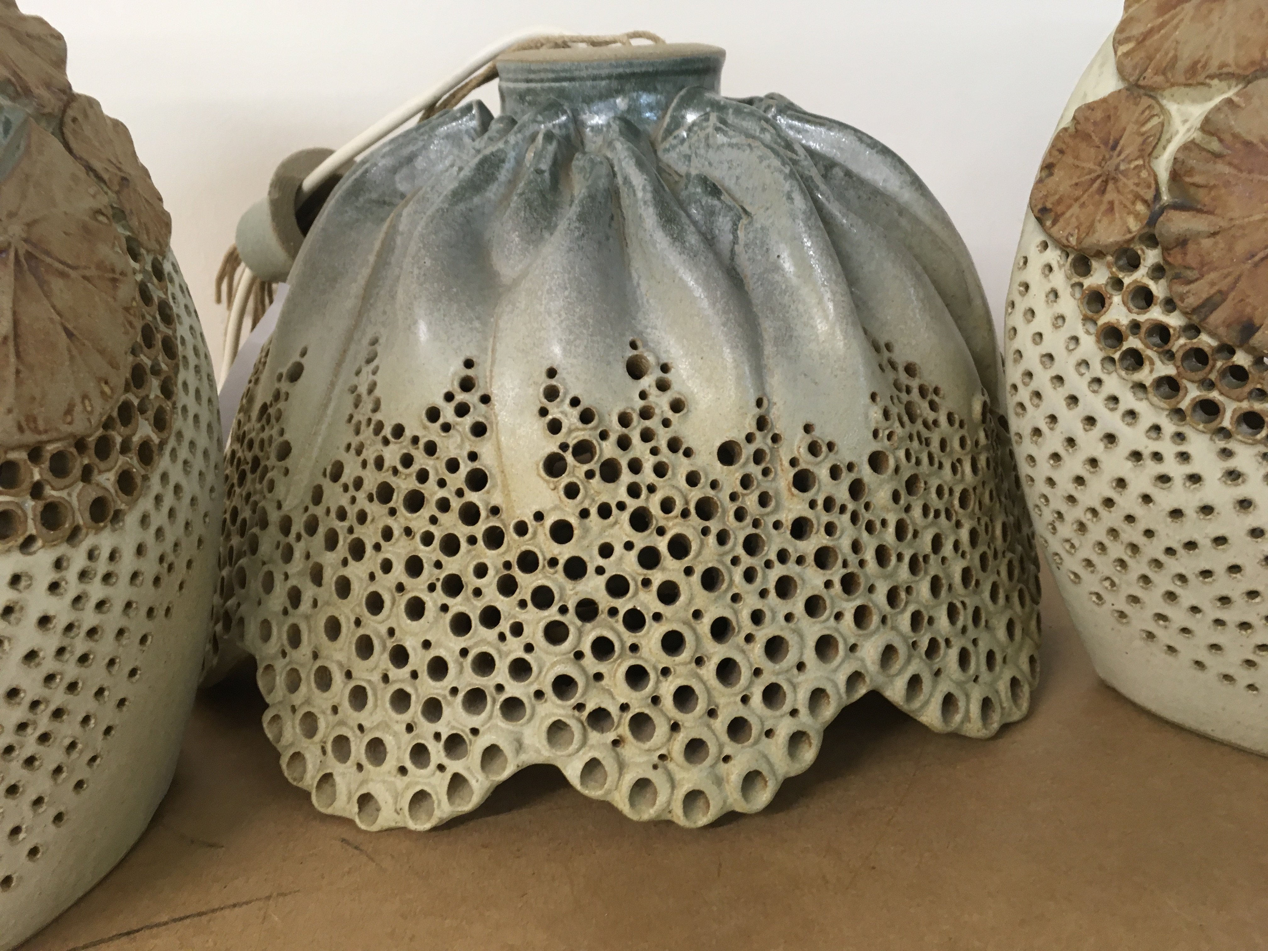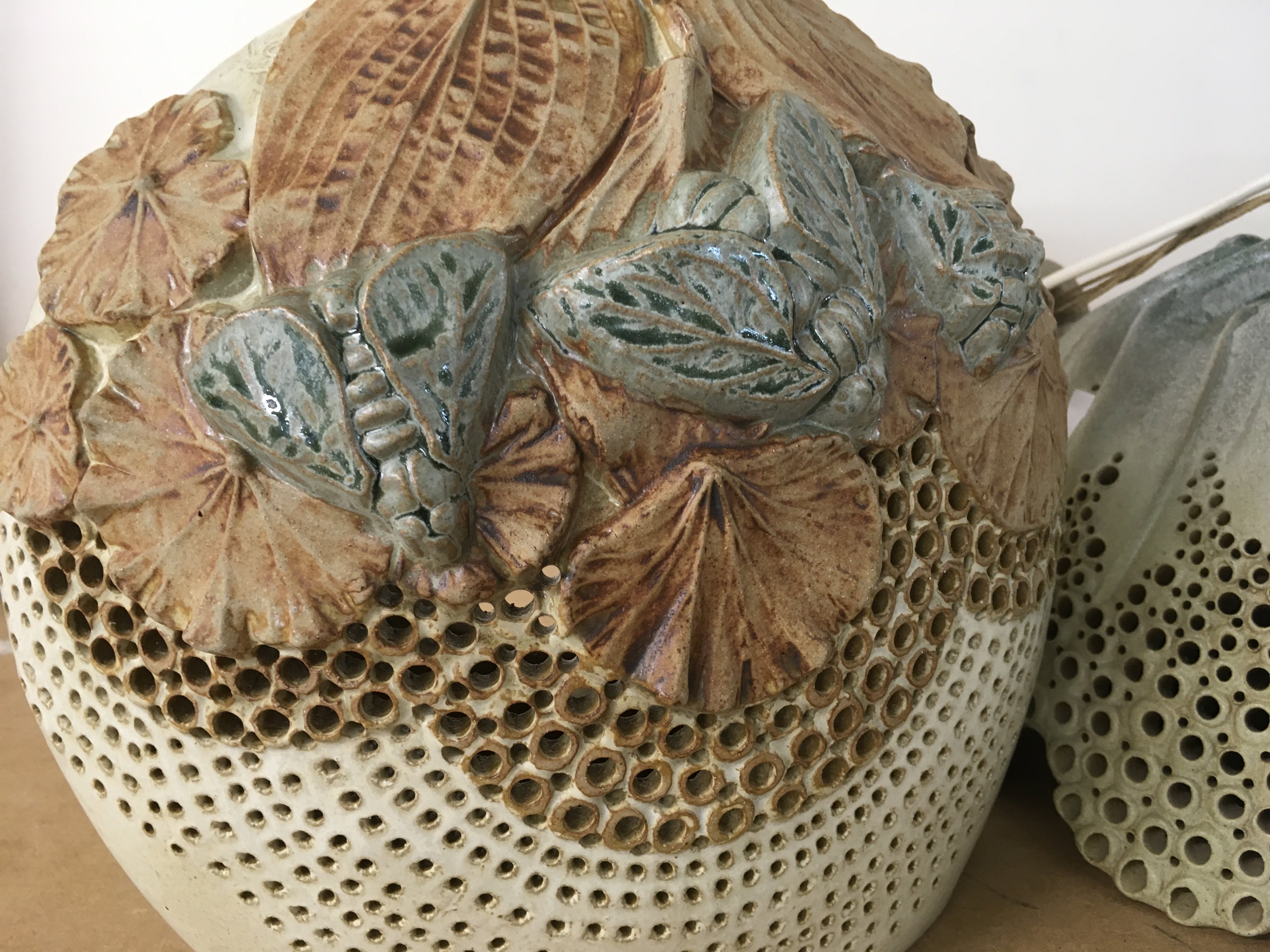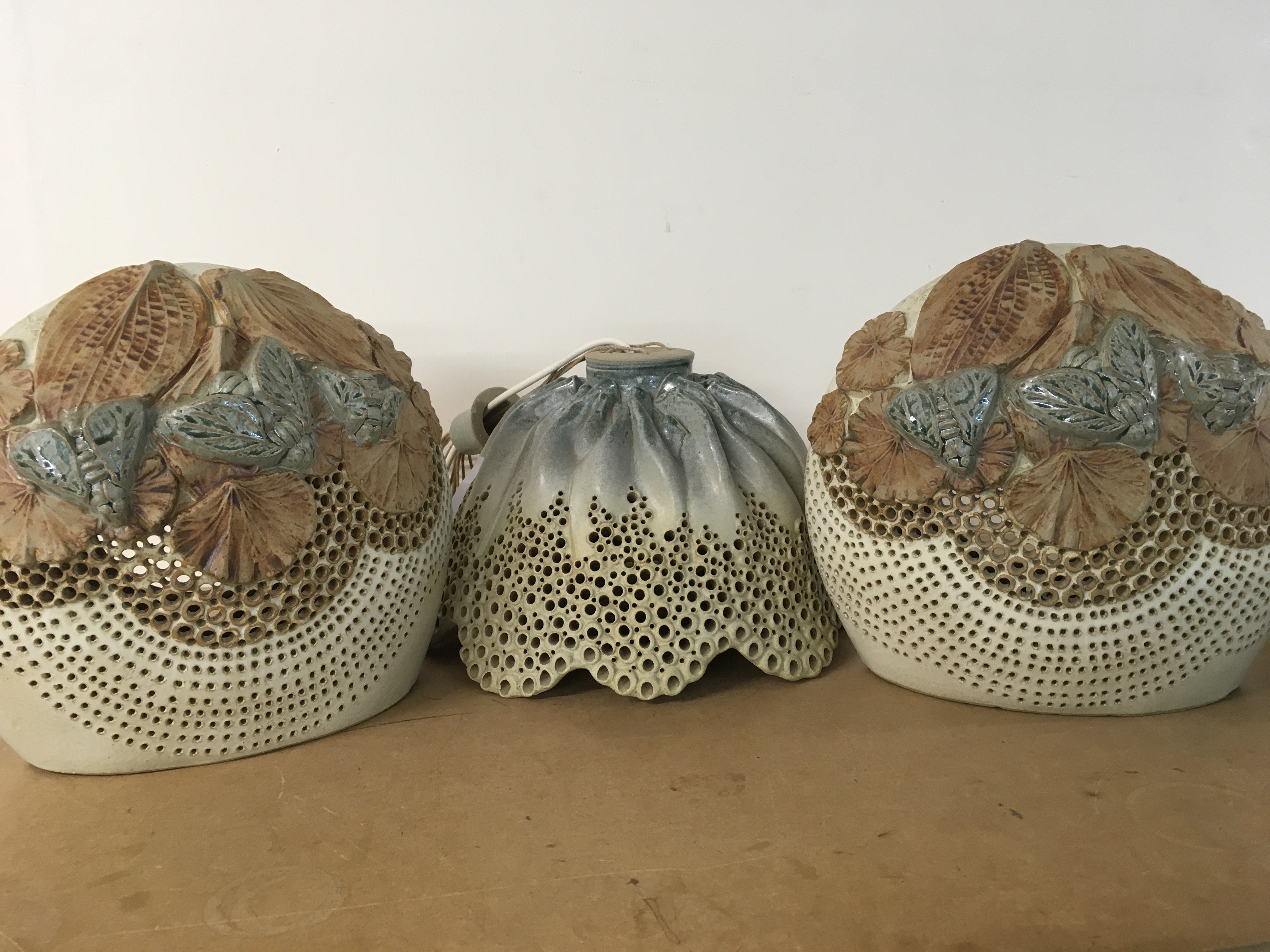 A pair of Bernard Rooke wall lights together with a lamp shade.