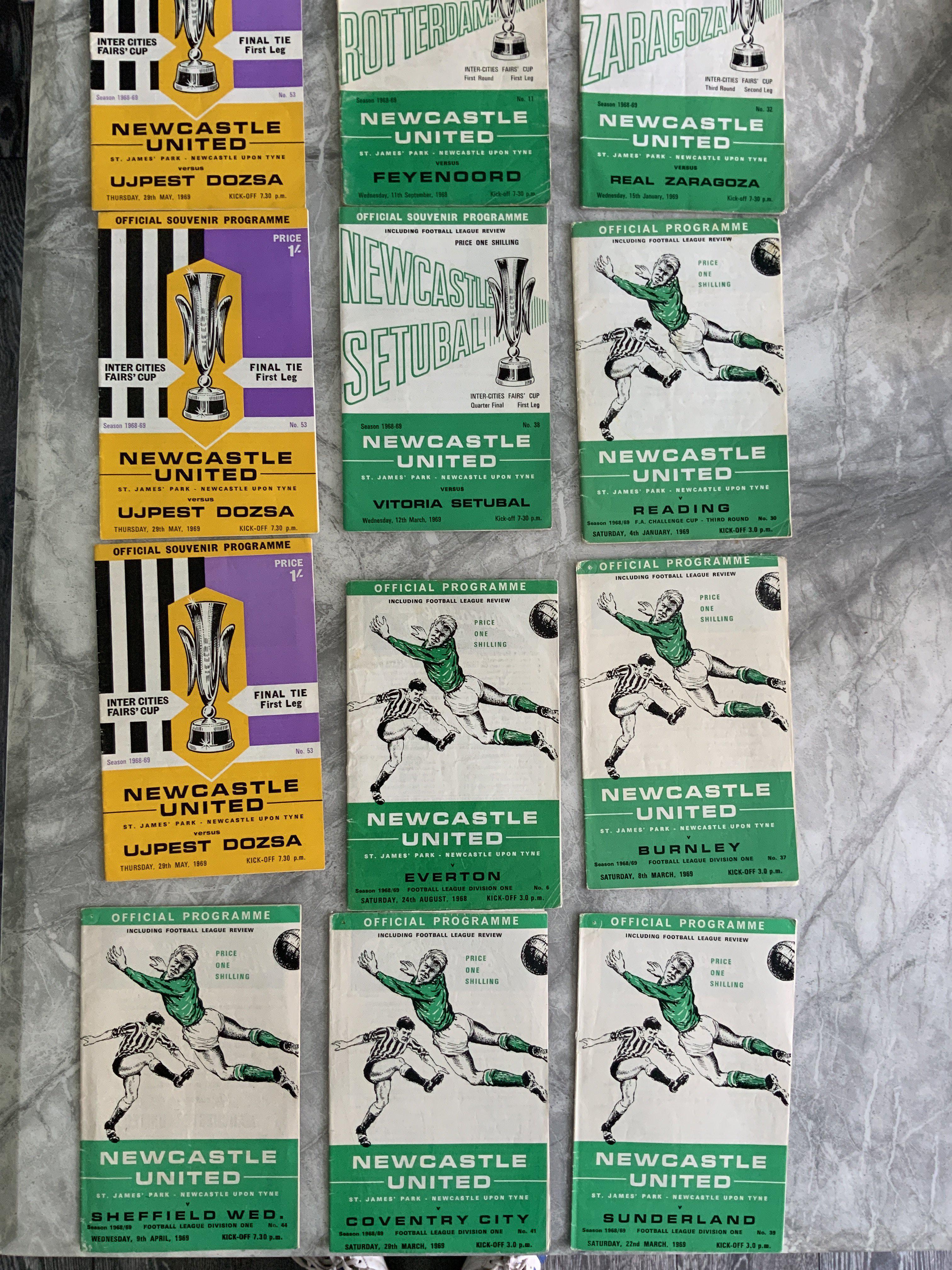 1969 Fairs Cup Final Football Programmes: Newcastle v Ujpest Dozsa x 3 plus 9 other homes from 68/69 Newcastle. Very good. (12)