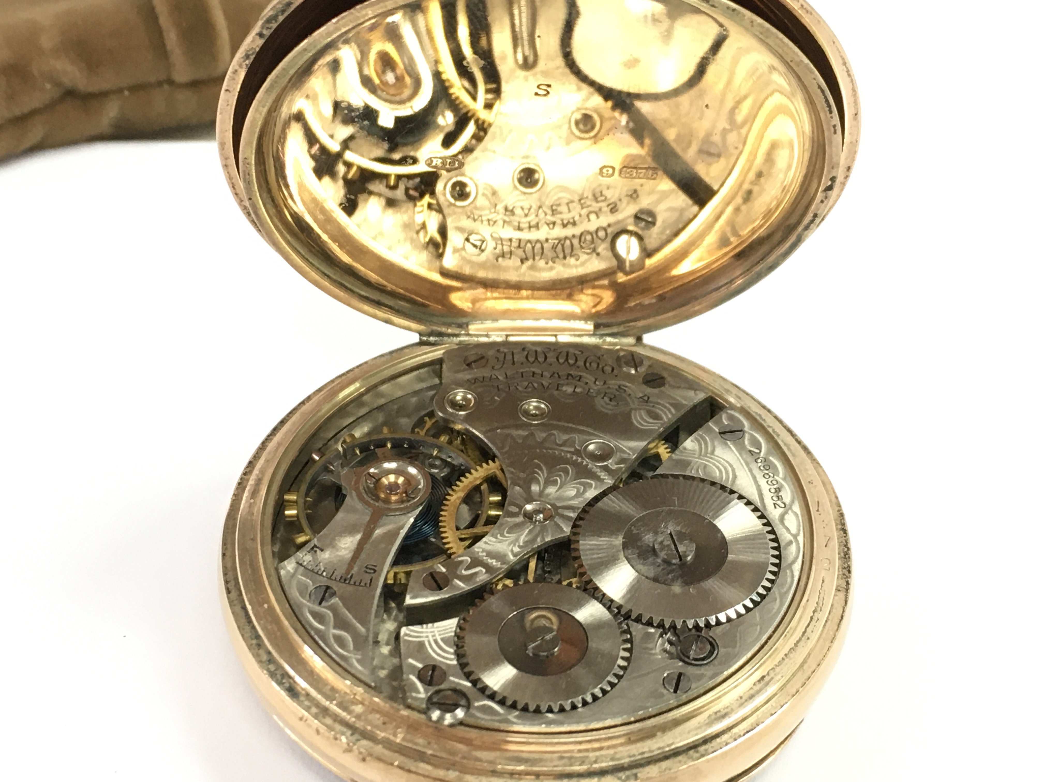 A 9 carat gold cased Waltham USA Traveler pocket watch