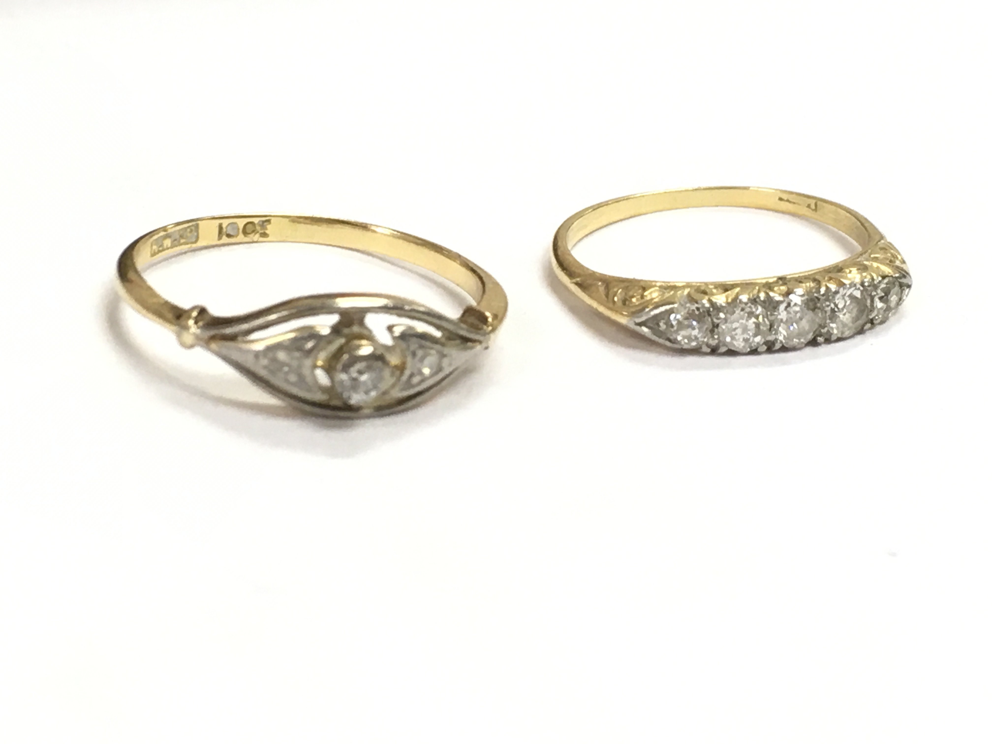 Two 18 carat gold rings set with diamond shards. Size L & P. 4.2g Postage category a