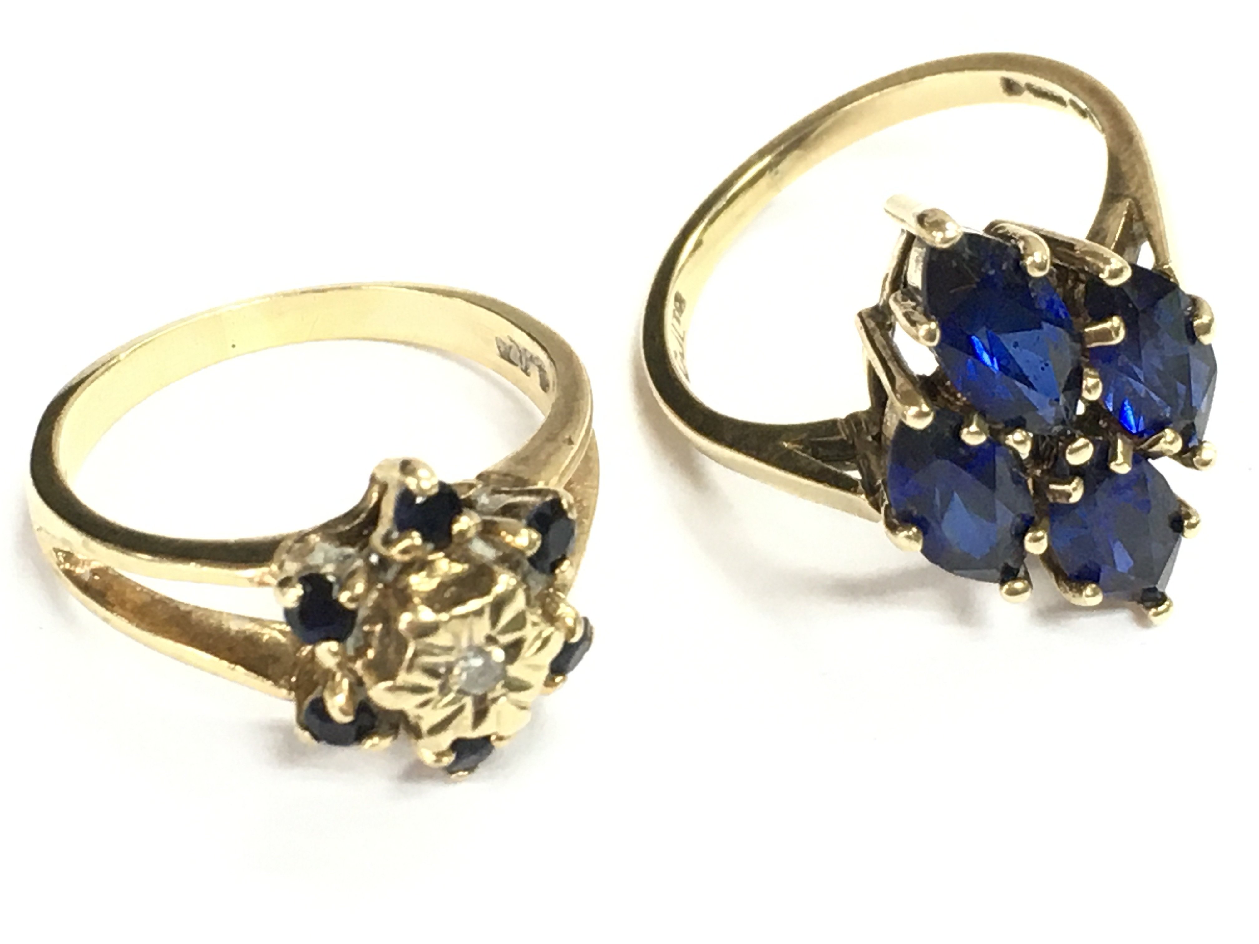 9 carat gold rings one set with Marquise stones and one Sapphire and diamond. Size K. Overall weight 5.7g. Postage category A