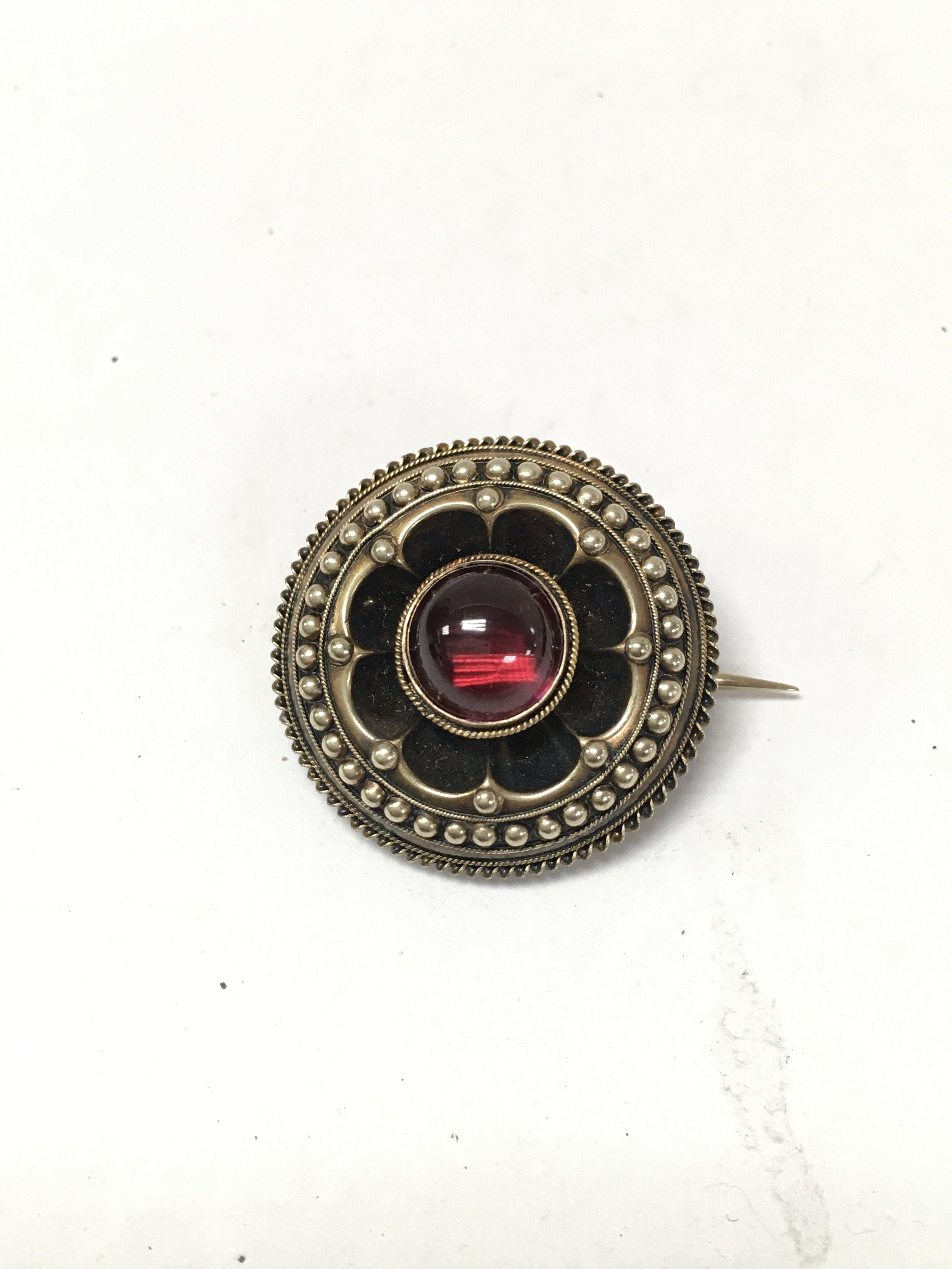 An antique unmarked cabochon garnet set brooch.