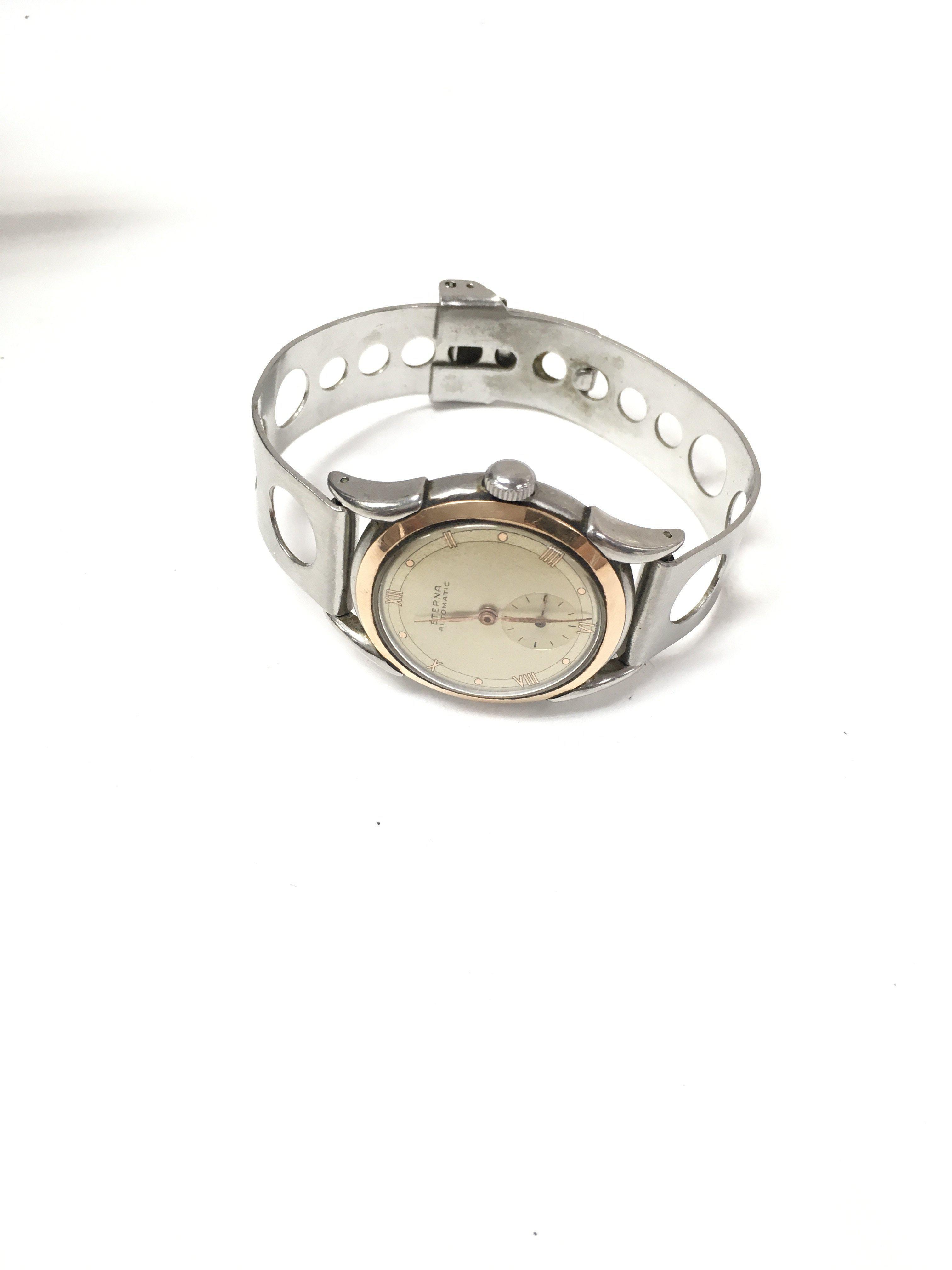 A vintage eterna automatic watch with a gold bezel.
