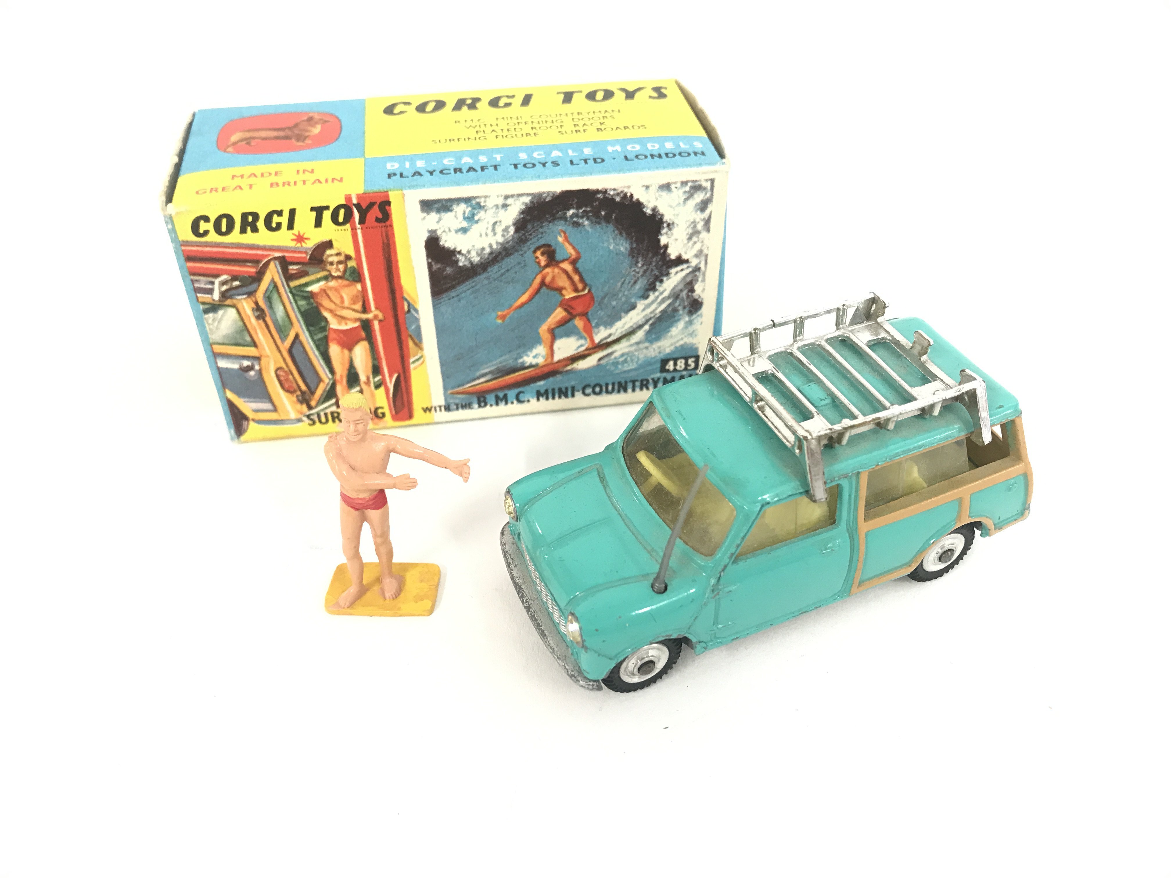 A Boxed Corgi Surfing With The B.M.C Mini Countryman. #485. No Surf Boards.