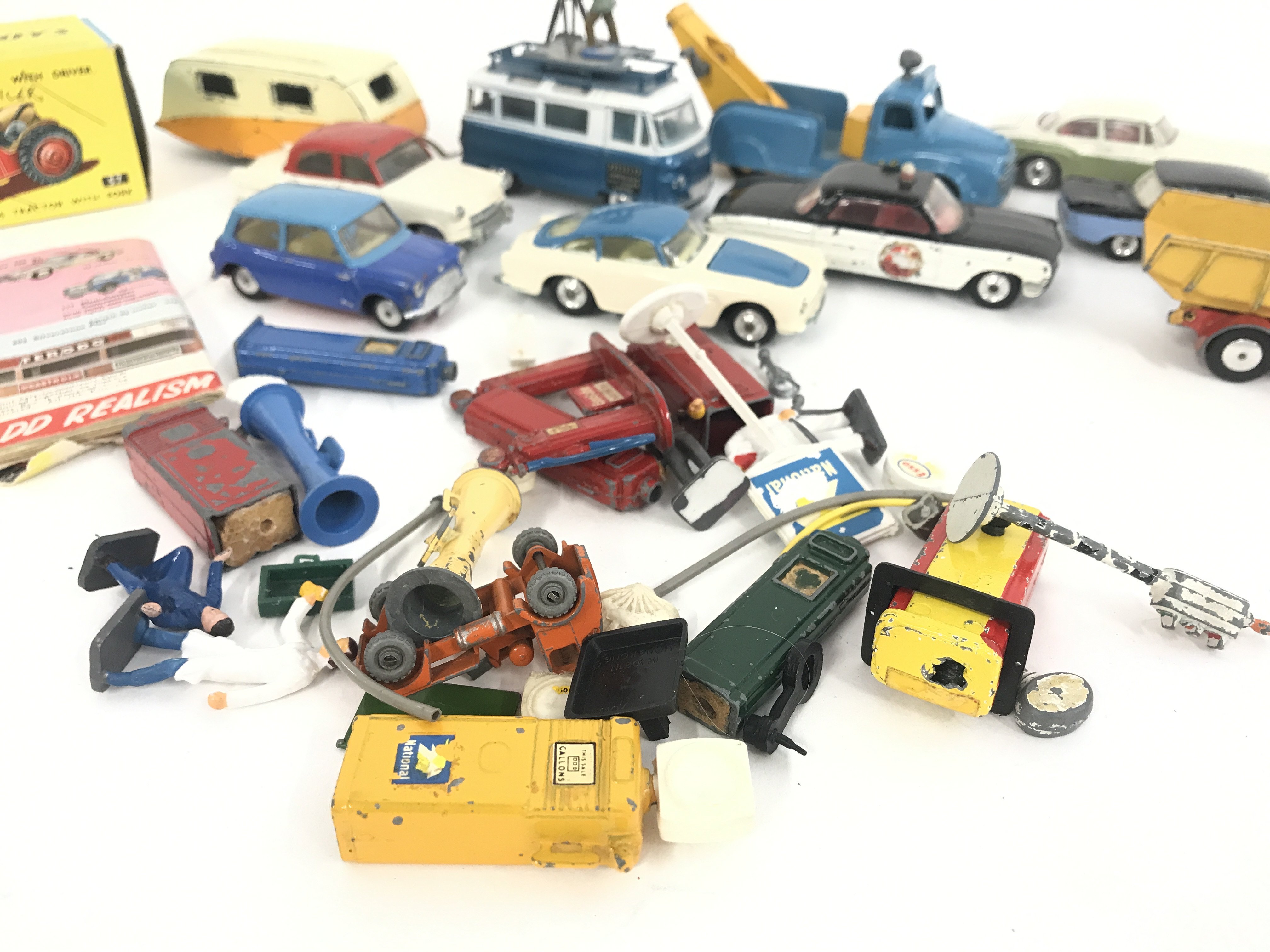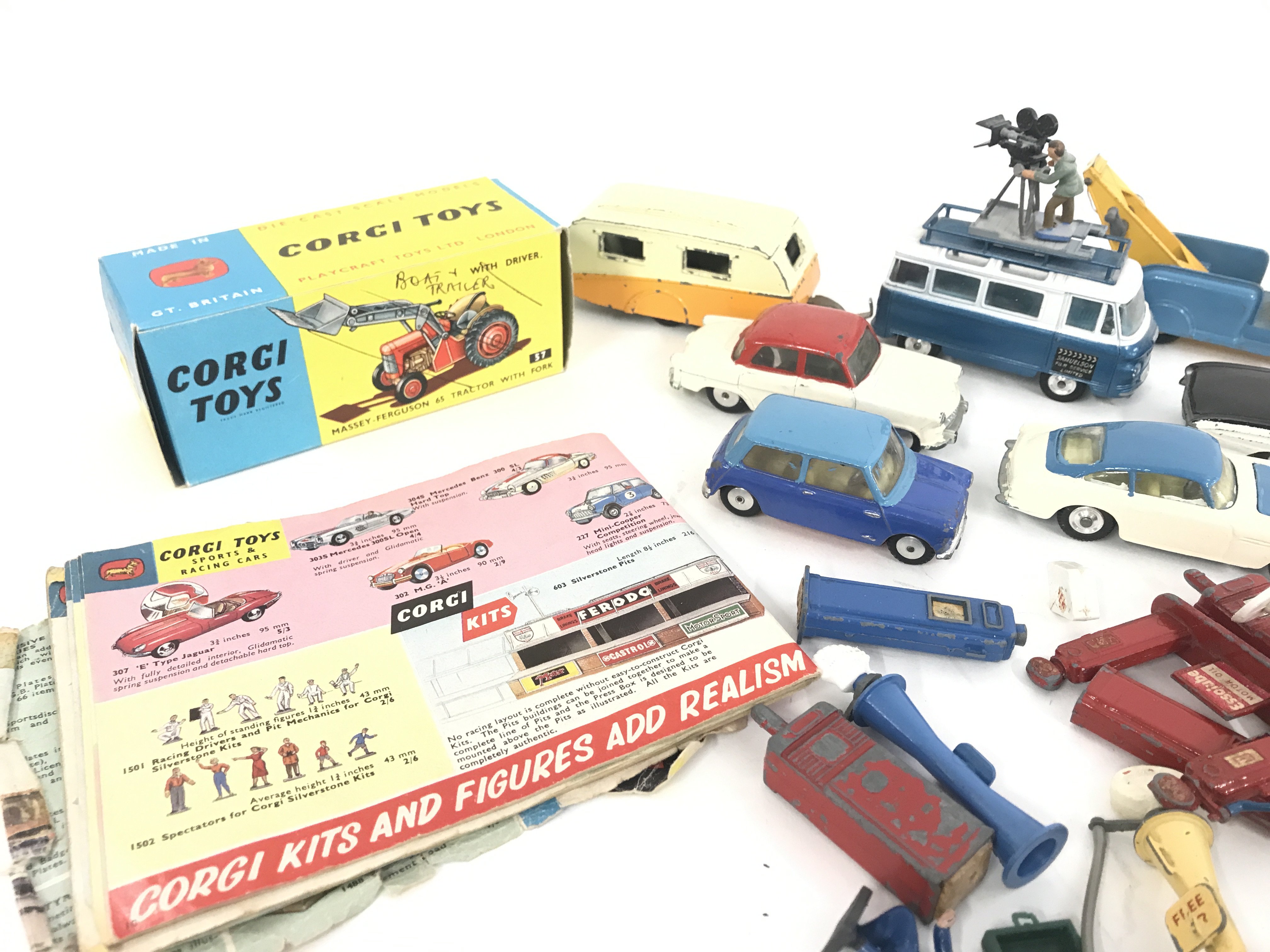 A Collection of Playworn Diecast all Corgi with an empty Massey Ferguson Box.