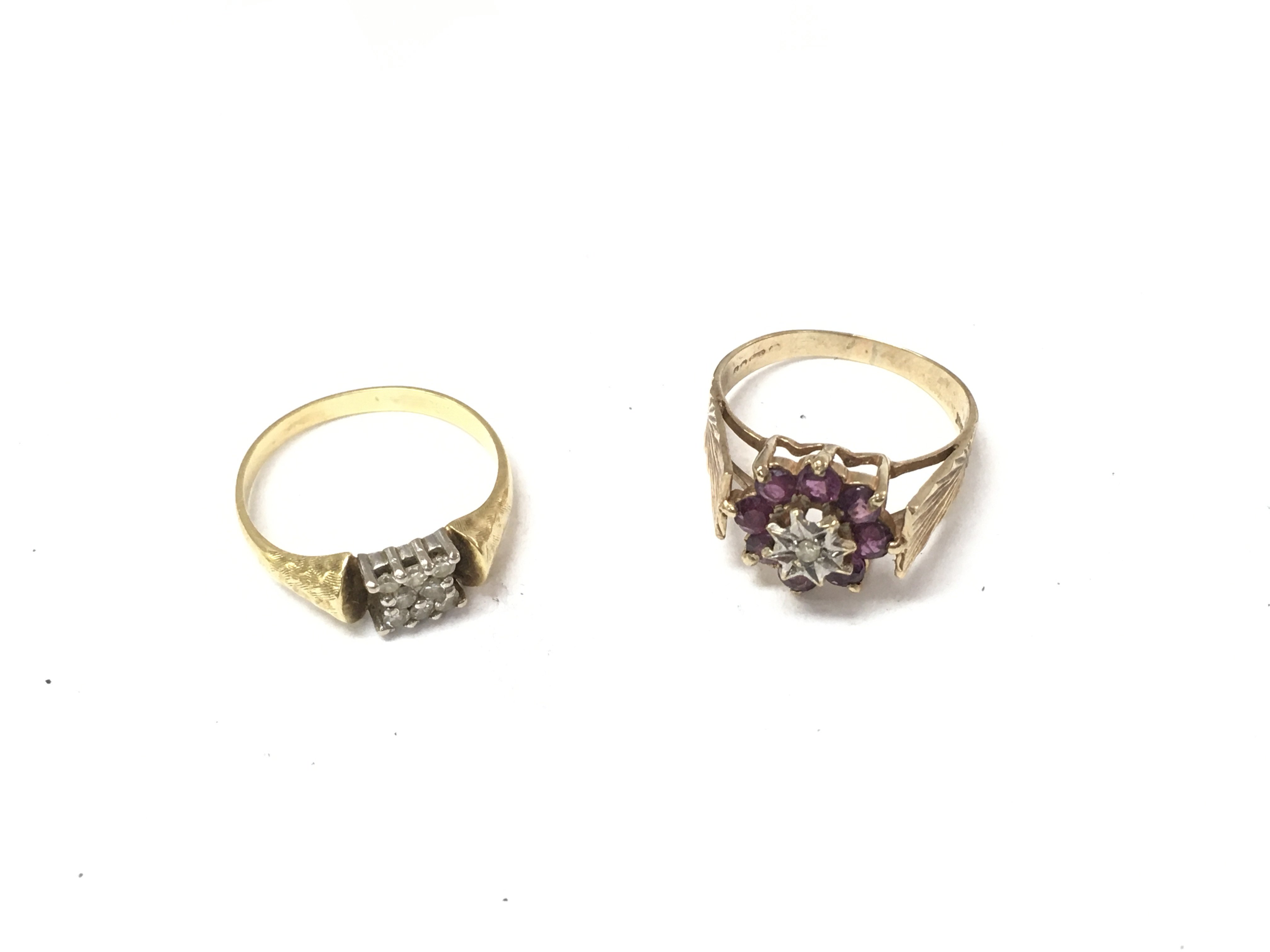 One 9ct gold ring and another unmarked ring set with diamonds.