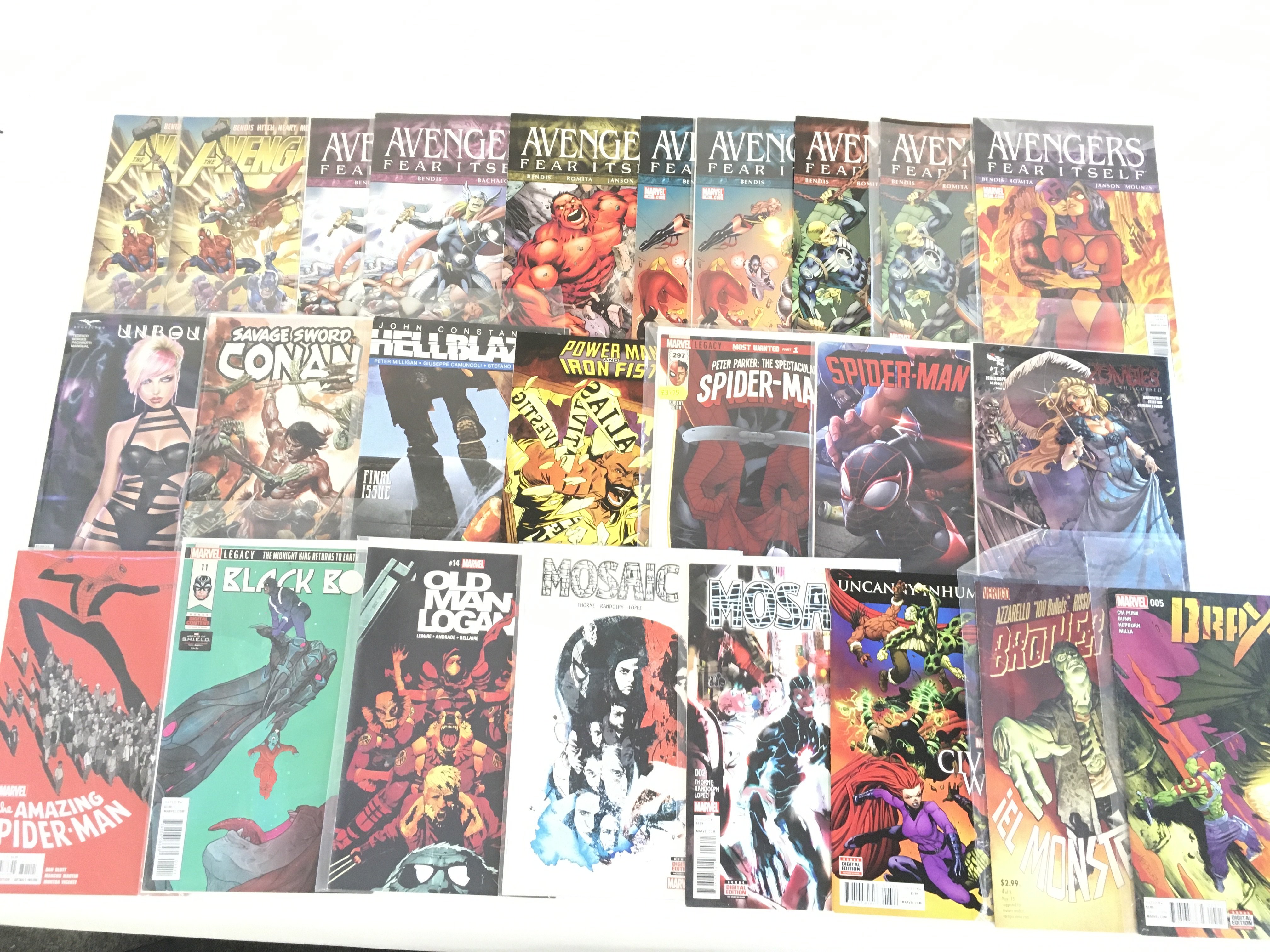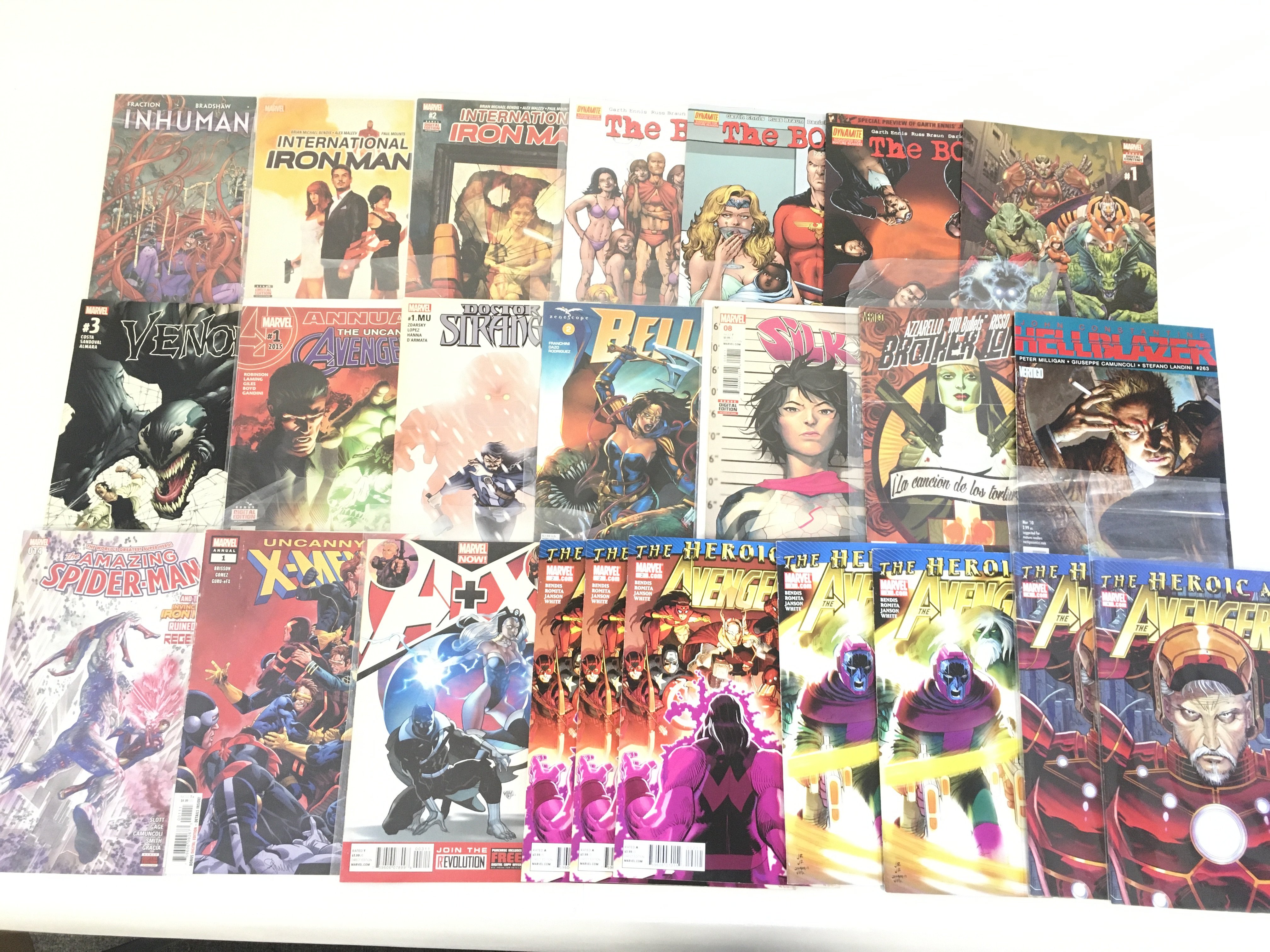 Box containing approximately 180 comics. Various titles including marvel and DC. No reserve.