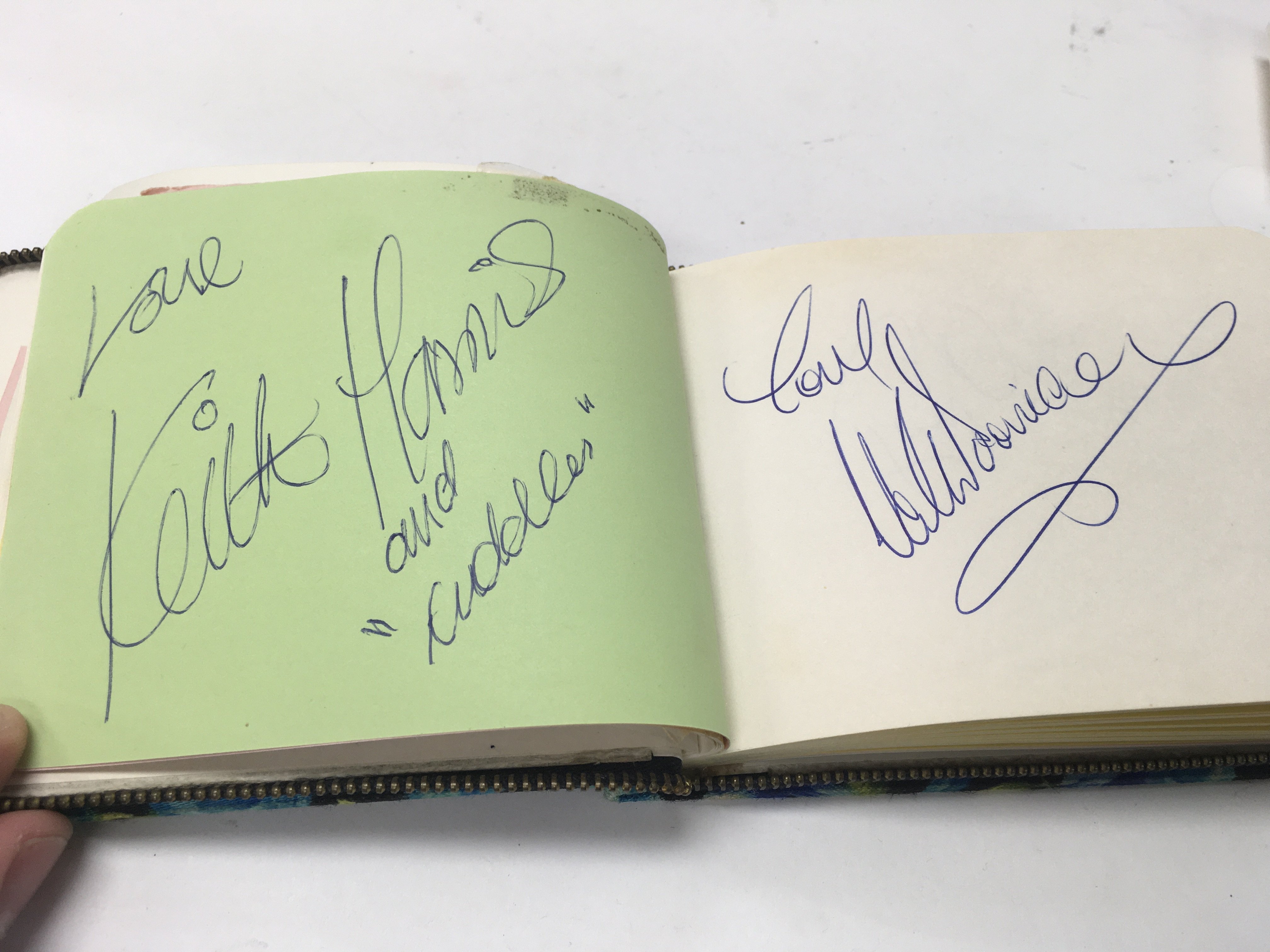 A book of autographs including autographs from Betty Davis, Cliff richard and more.
