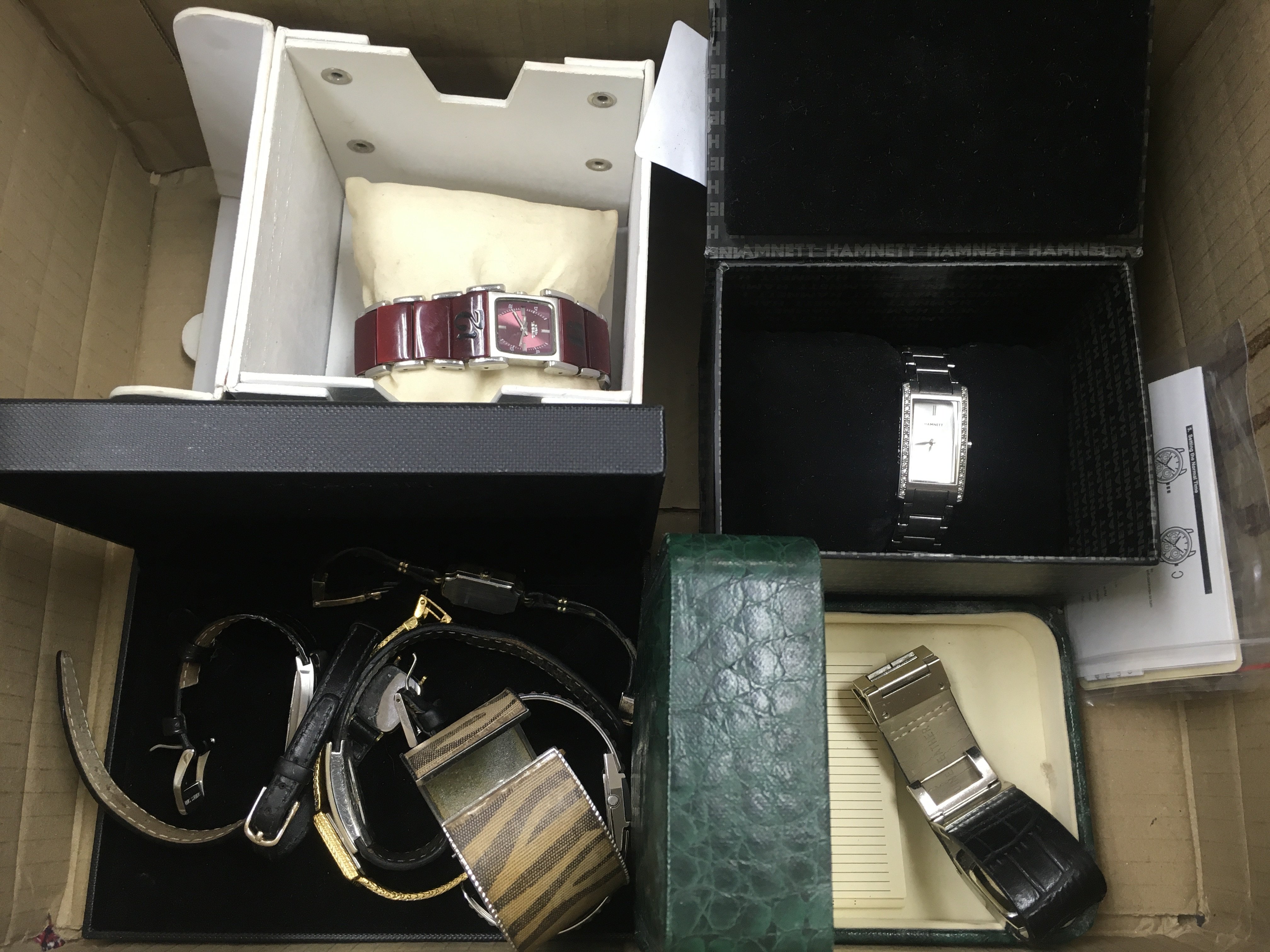 A box of watches some unworn and boxed.Condition Report