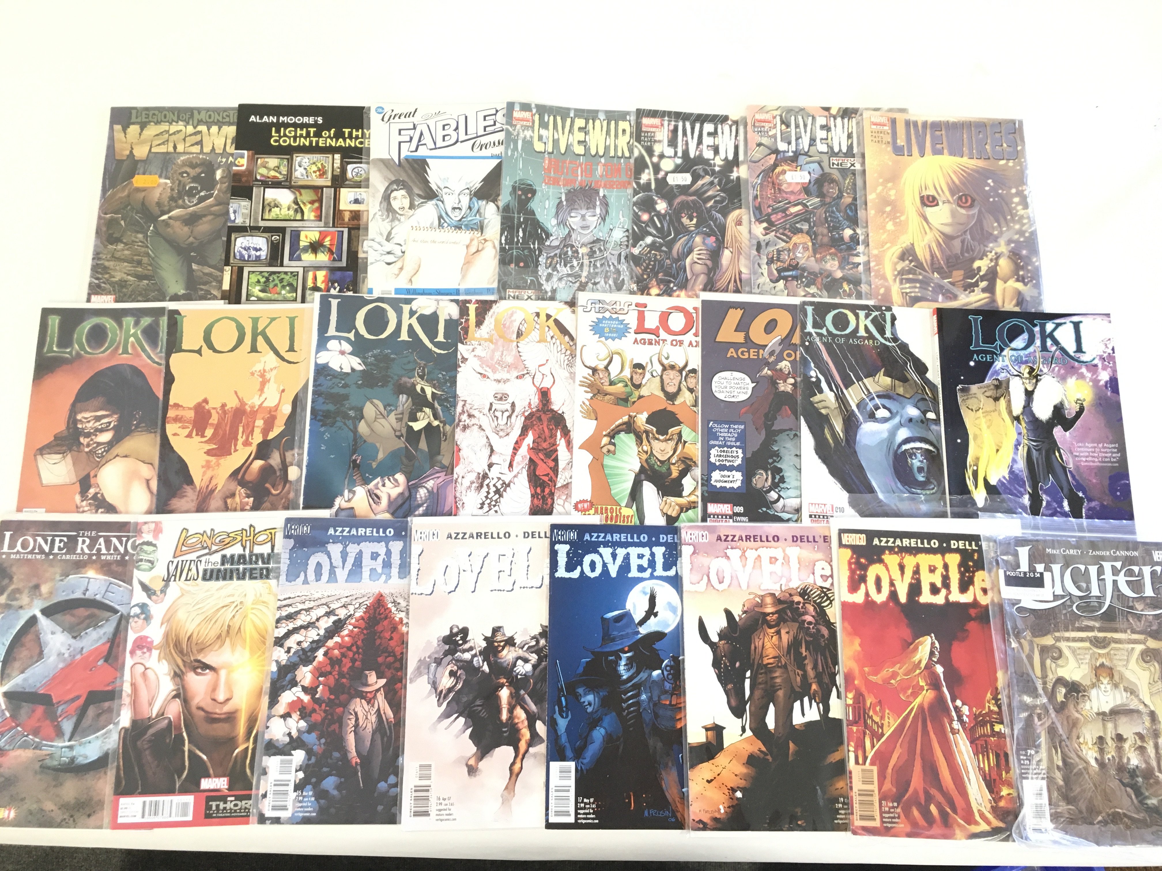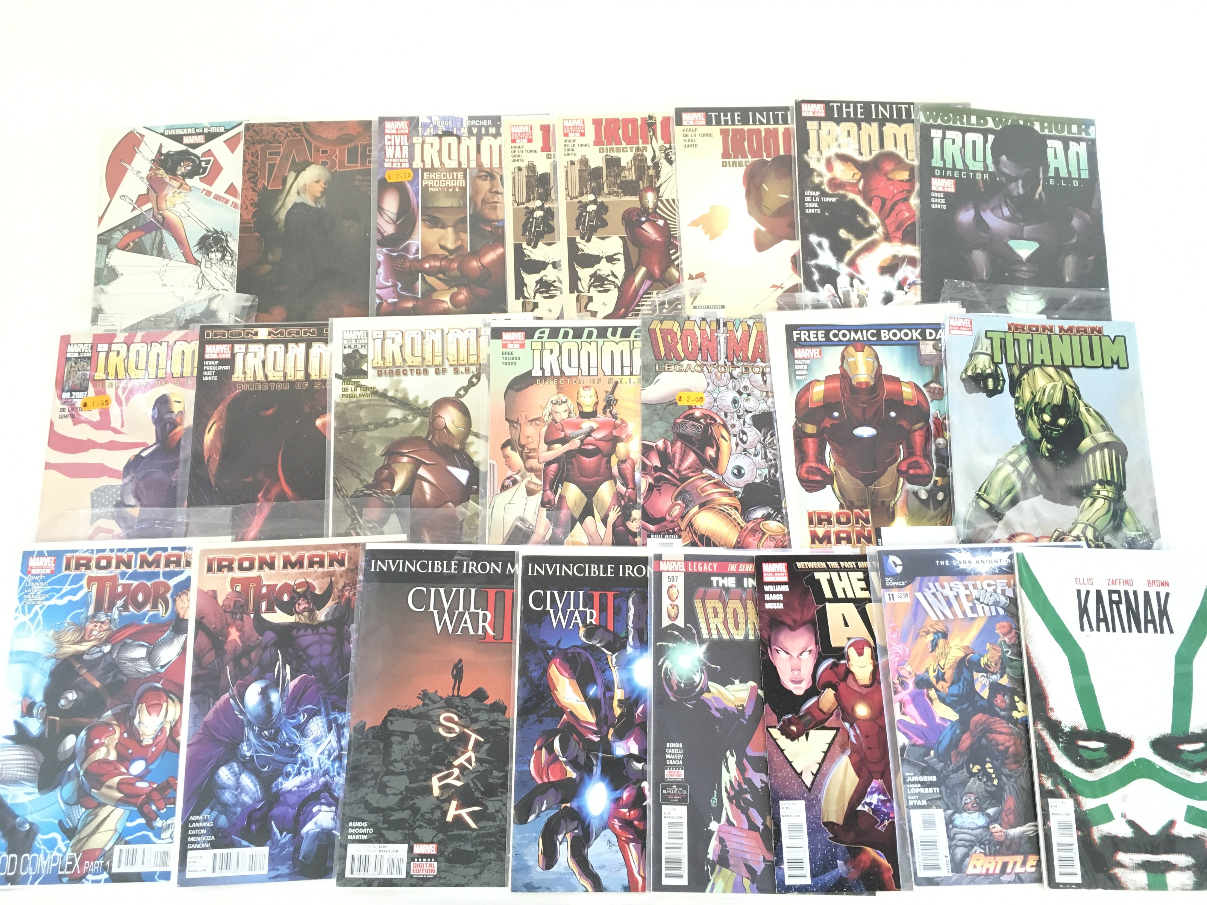 A box containing approximately 100 comics. Various titles to include marvel. No reserve.