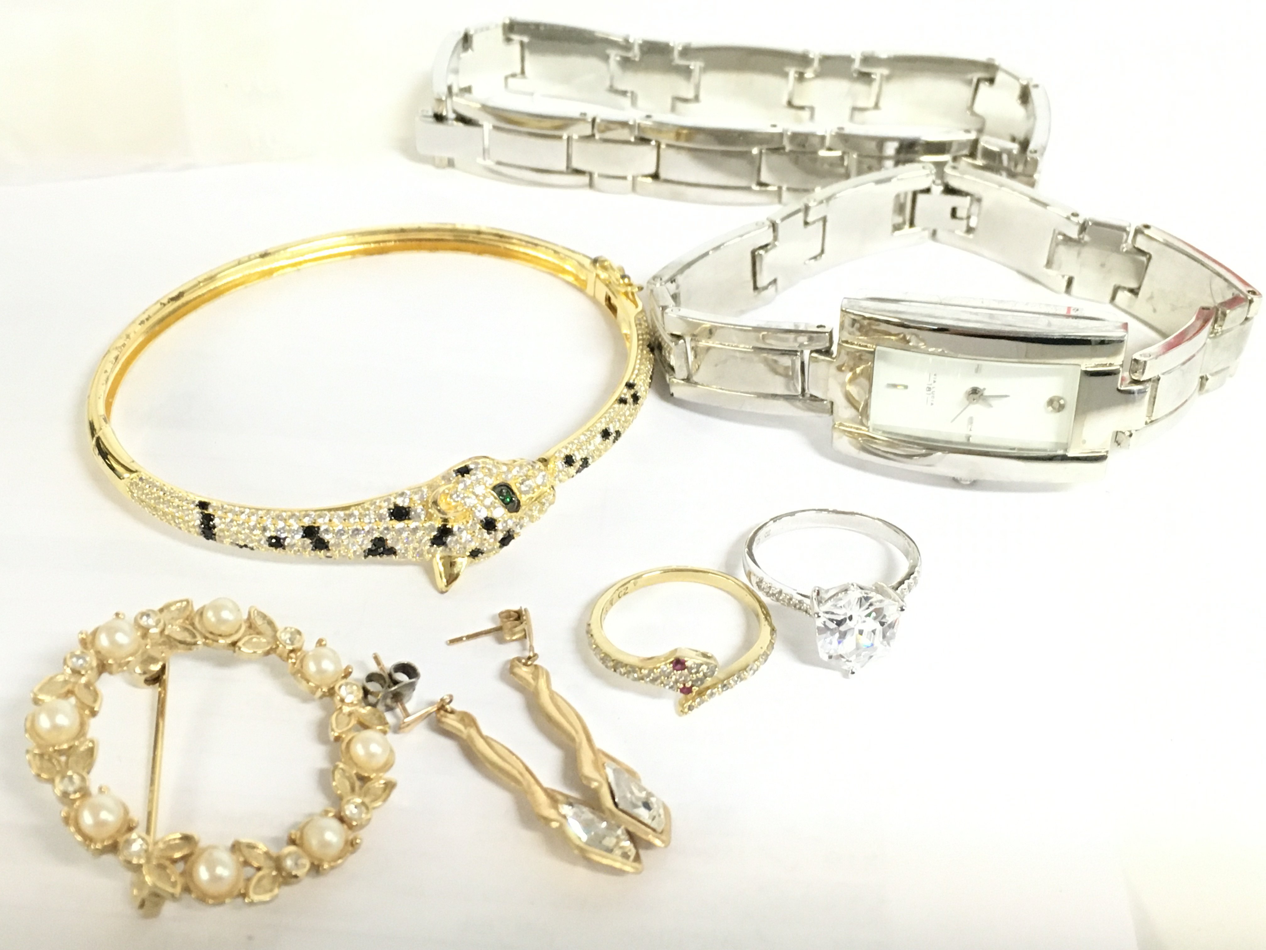 A collection of costume jewellery including some silver rings, Bronze Milor Italy jewellery, 9ct gold earrings