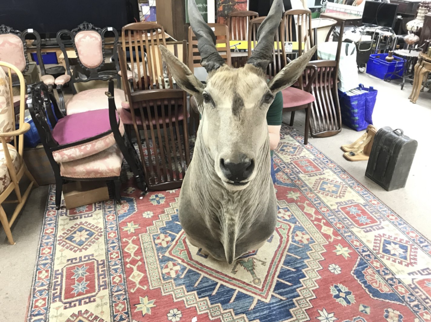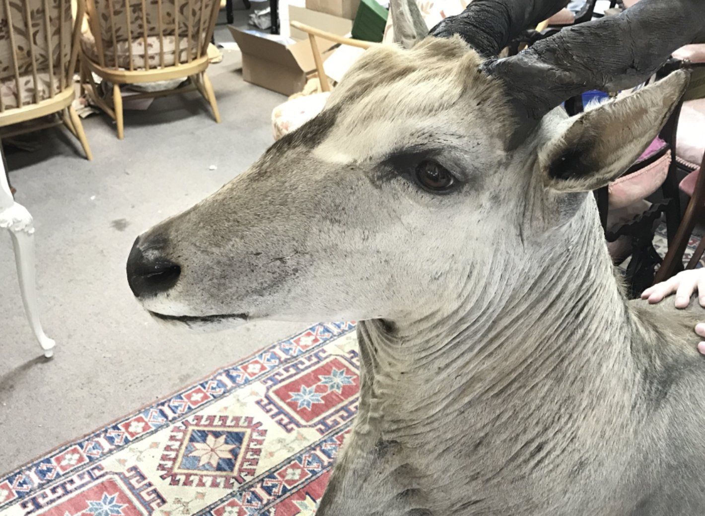 A large taxidermy Eland with bracket on rear for wall mount. Approx 140cm tall and 50cm wide 100cm deep.