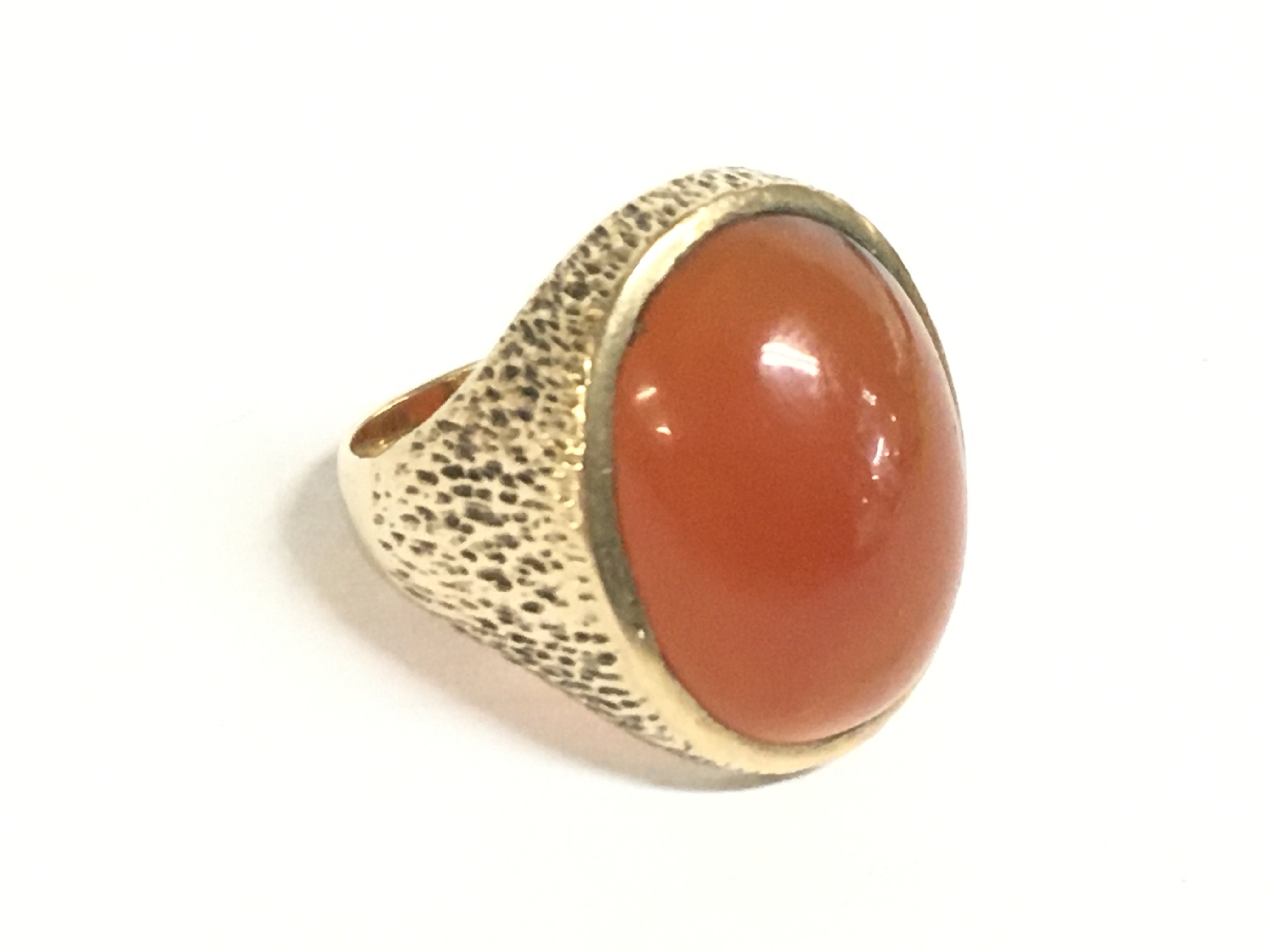 A 9ct gold Barnelian agate ring, size P, 9g. Postage category A