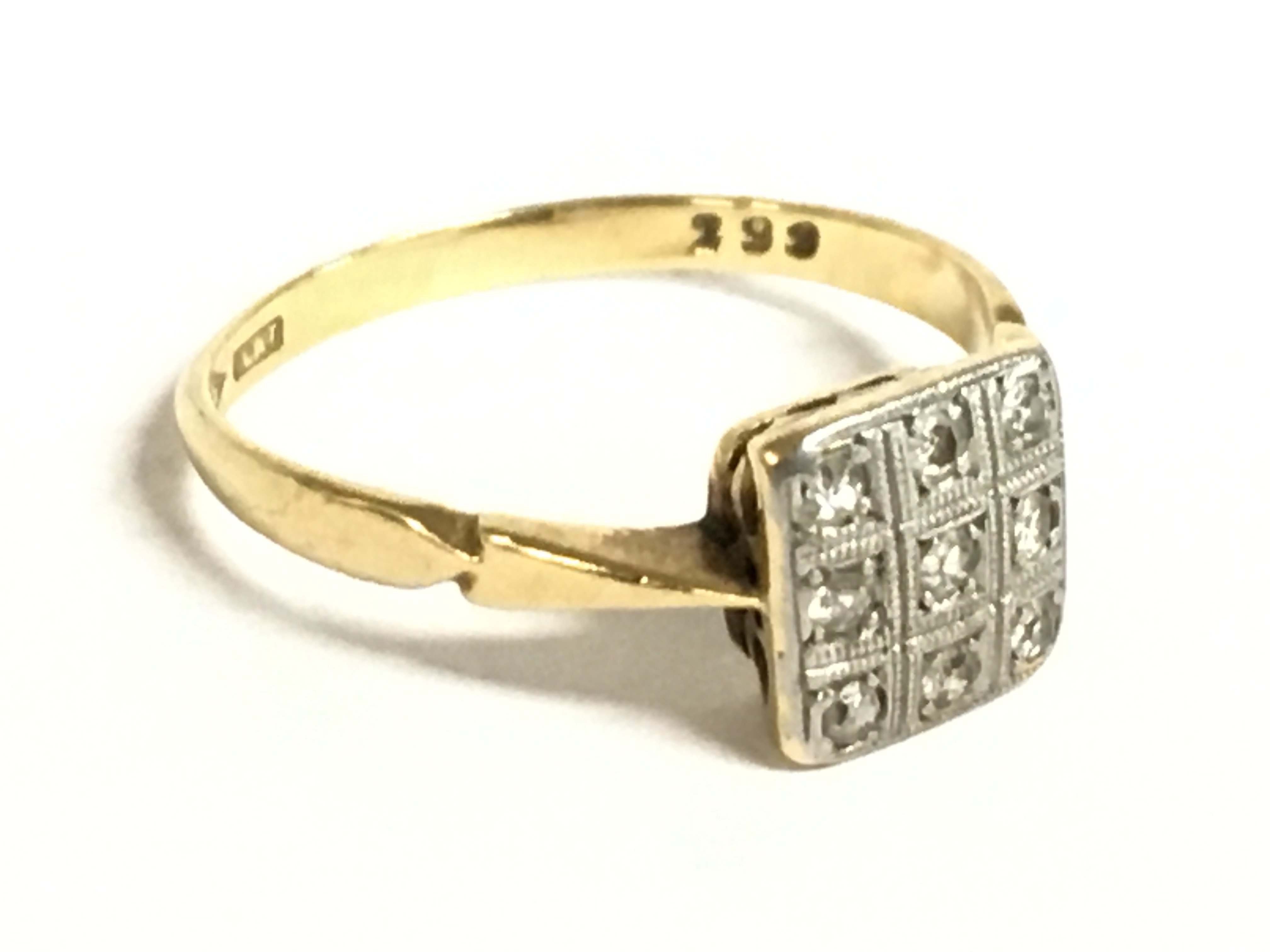 An Art Deco 18 carat gold and platinum diamond panel ring, 2.5g, size O. Postage category a