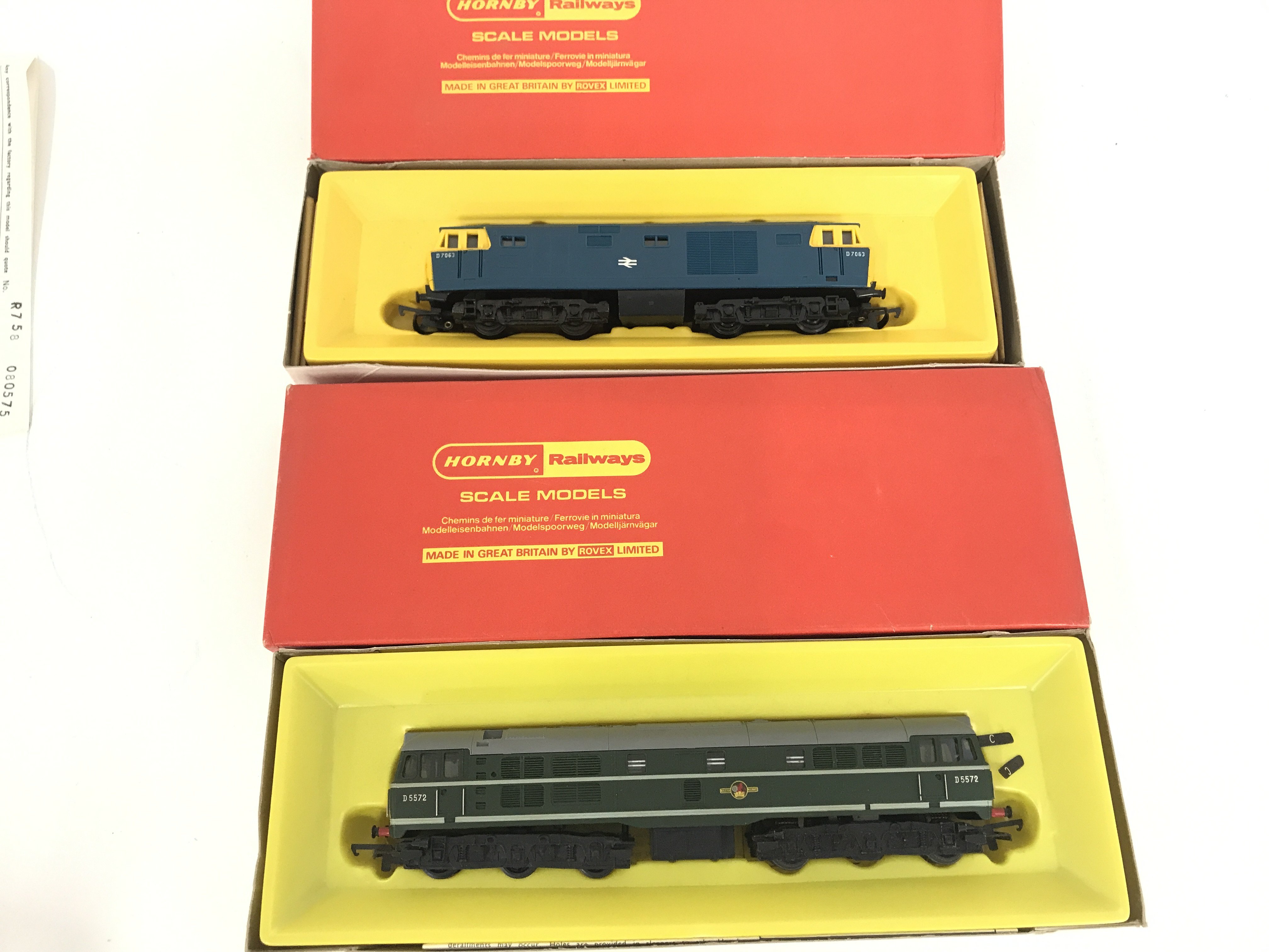 2 Boxed Hornby 00 Gauge Locomotives. A B.R. A-I-A Diesel Electric Locomotive #R.357. B.R. Hymek Diesel Hydraulic Locomotive #R.758.