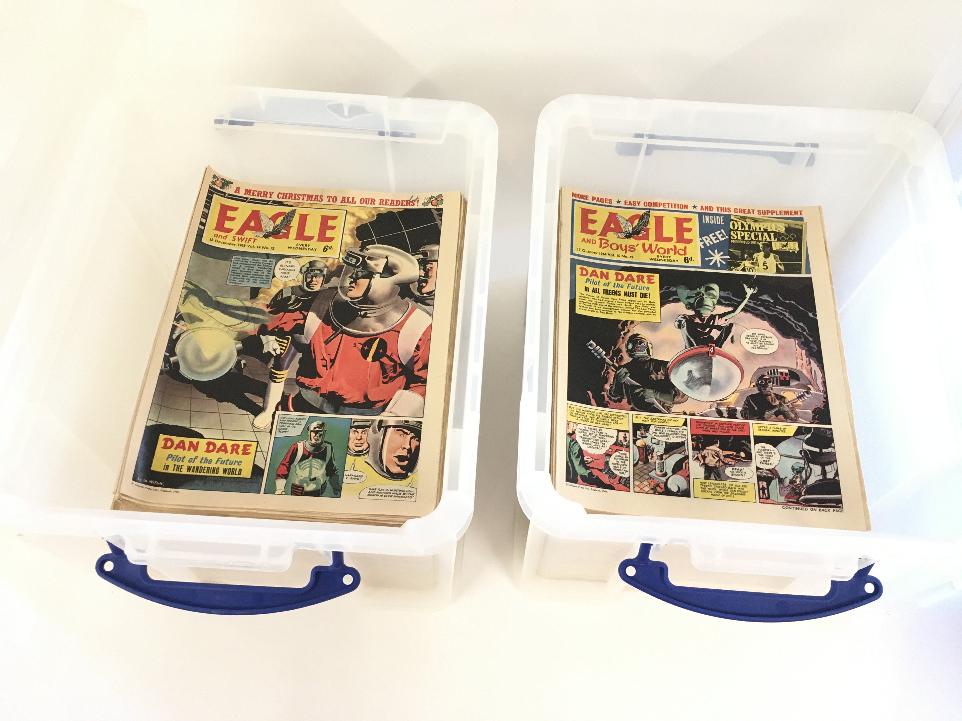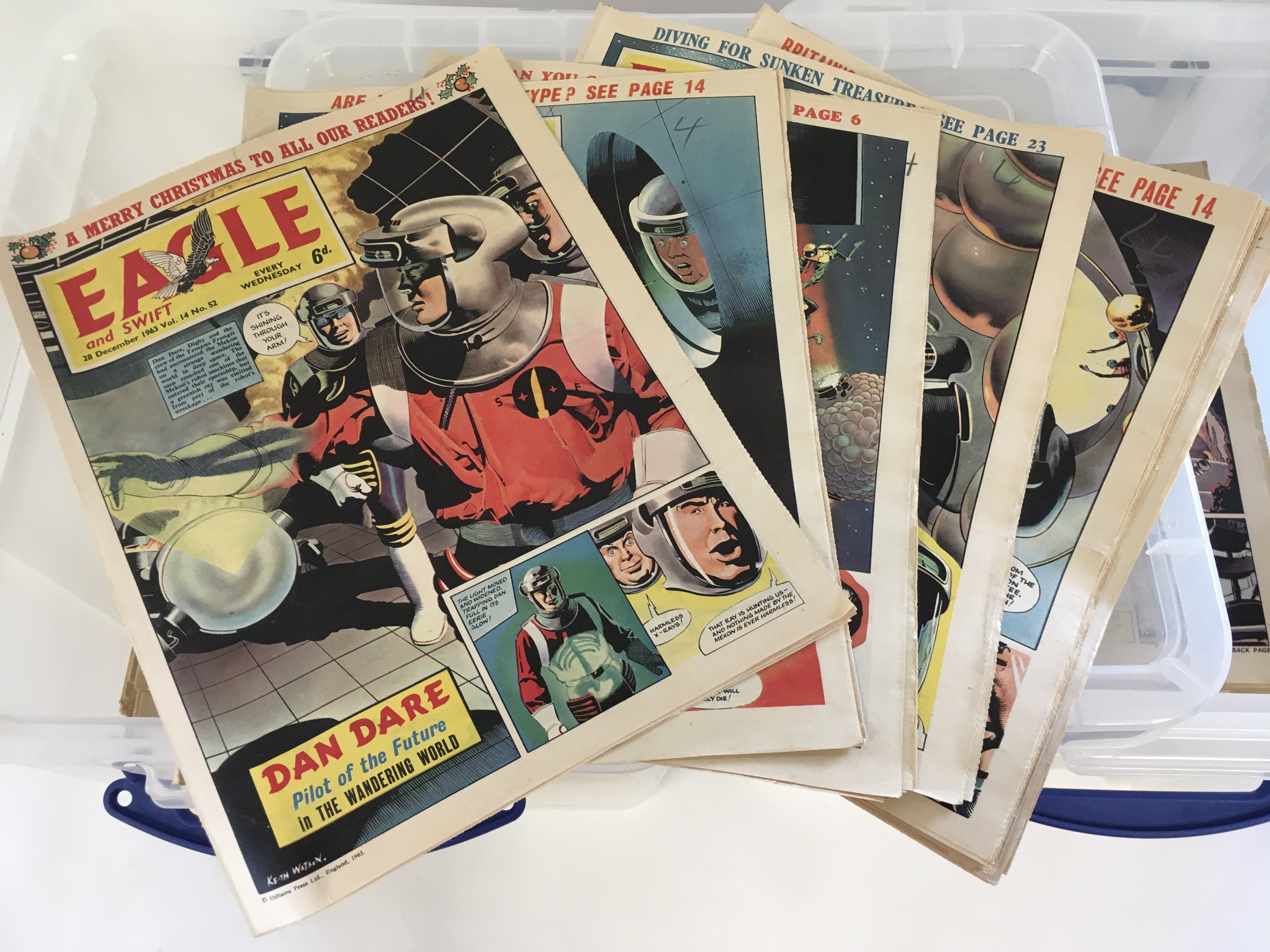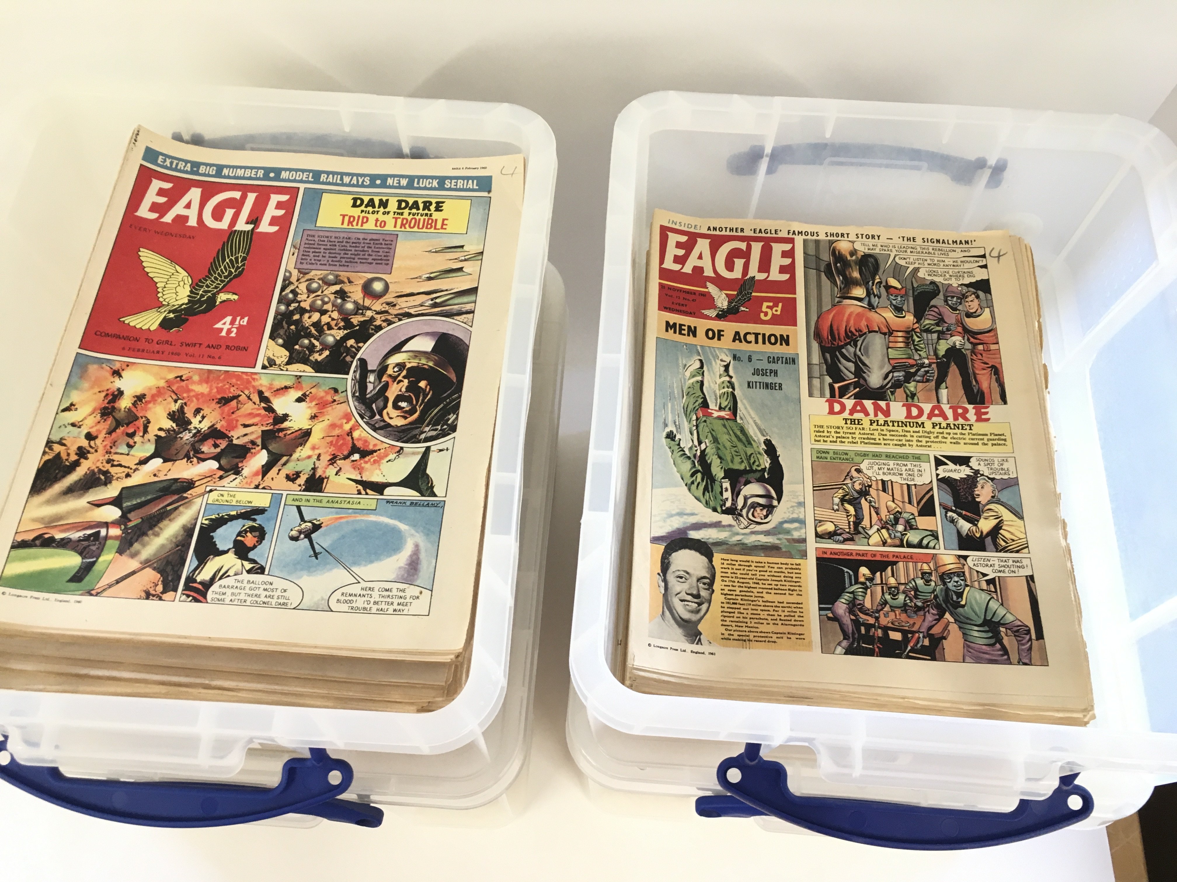 4 boxes containing approximately 600 Eagle comics, dating back to the 60's, various volumes. No reserve.
