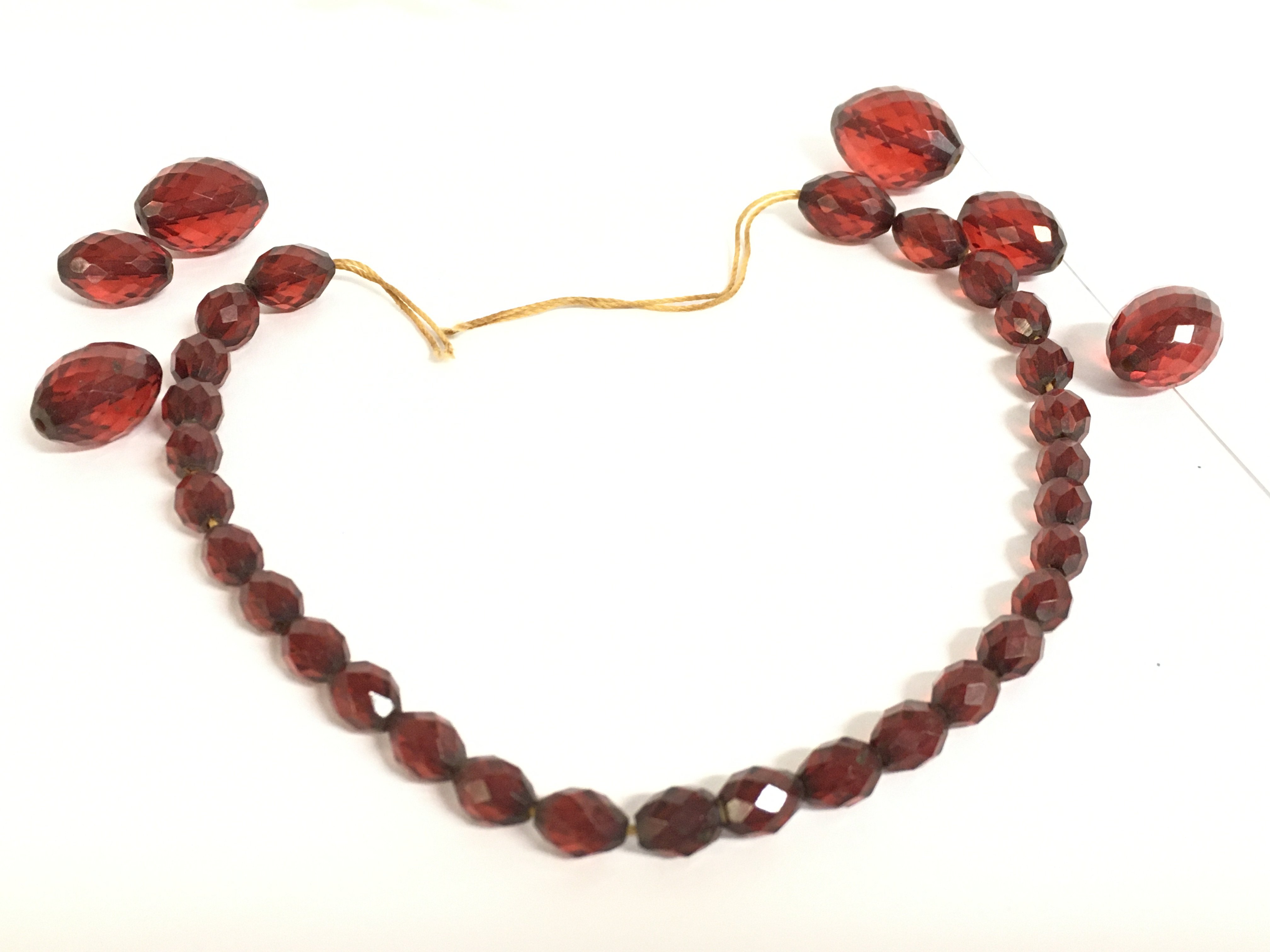 A collection of cherry amber beads. Postage category a