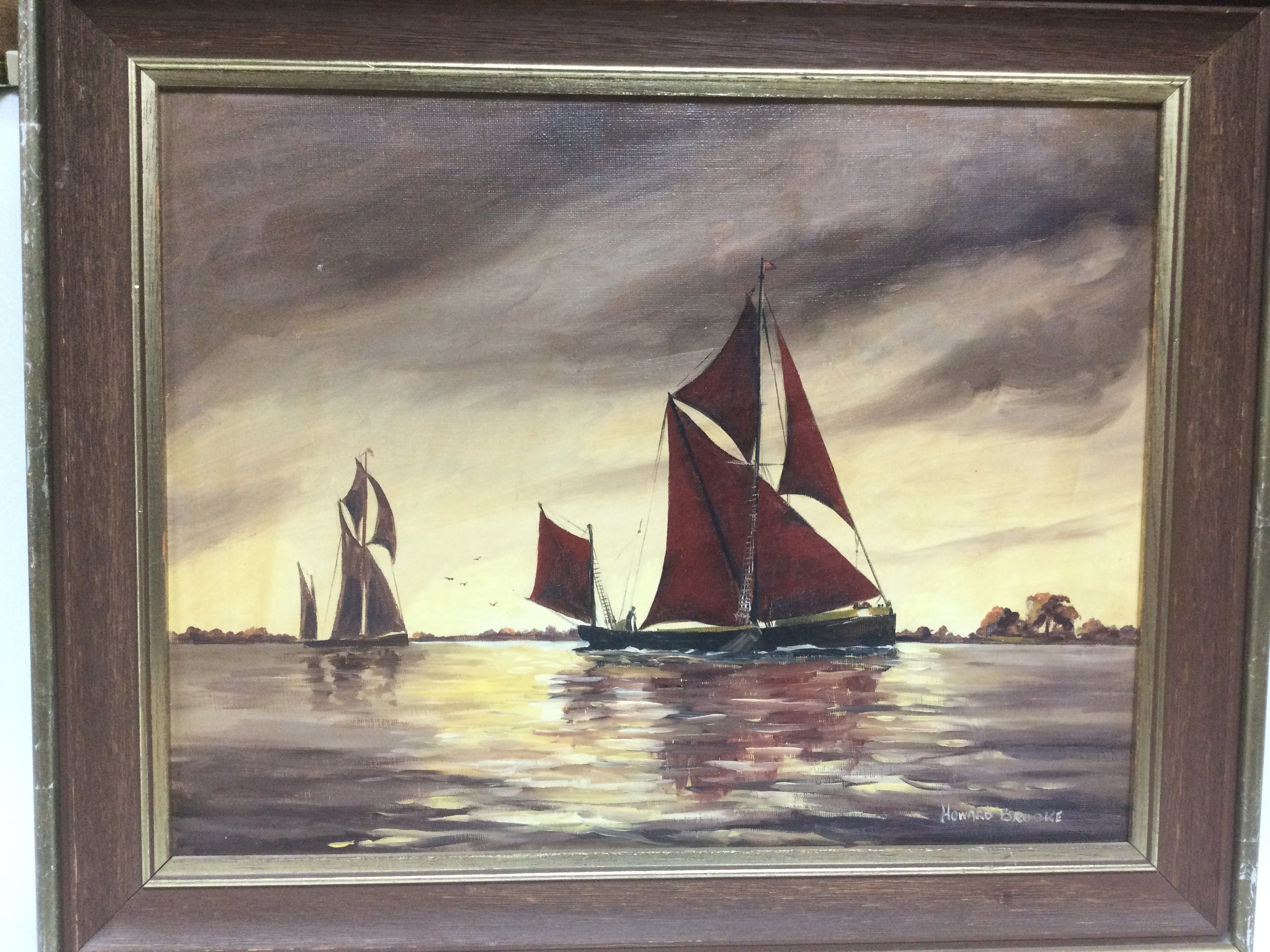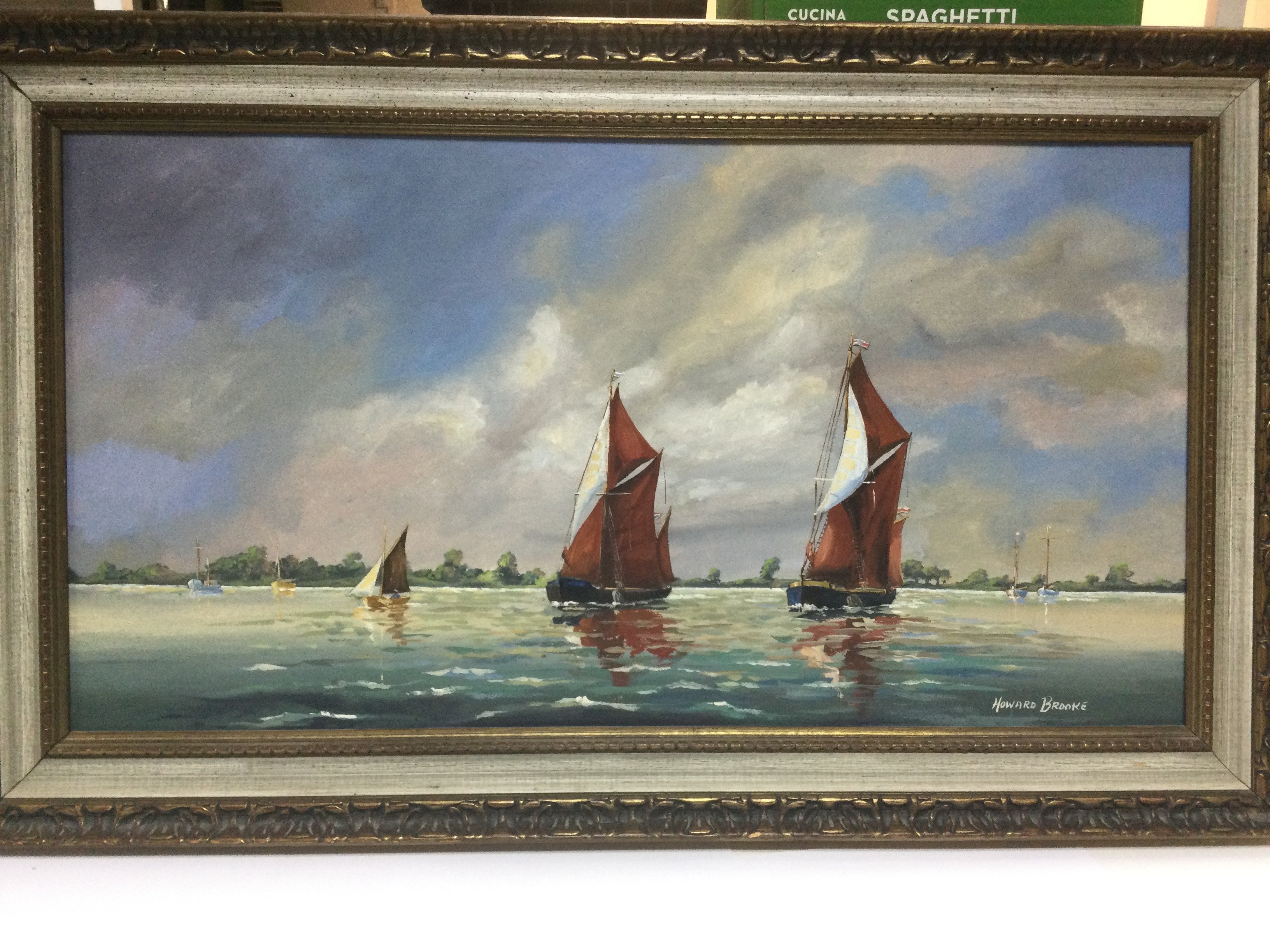 Three Howard Brooke oils on canvas of sailing boats, largest approx 90cm x 55cm. Shipping category D.- NO RESERVE