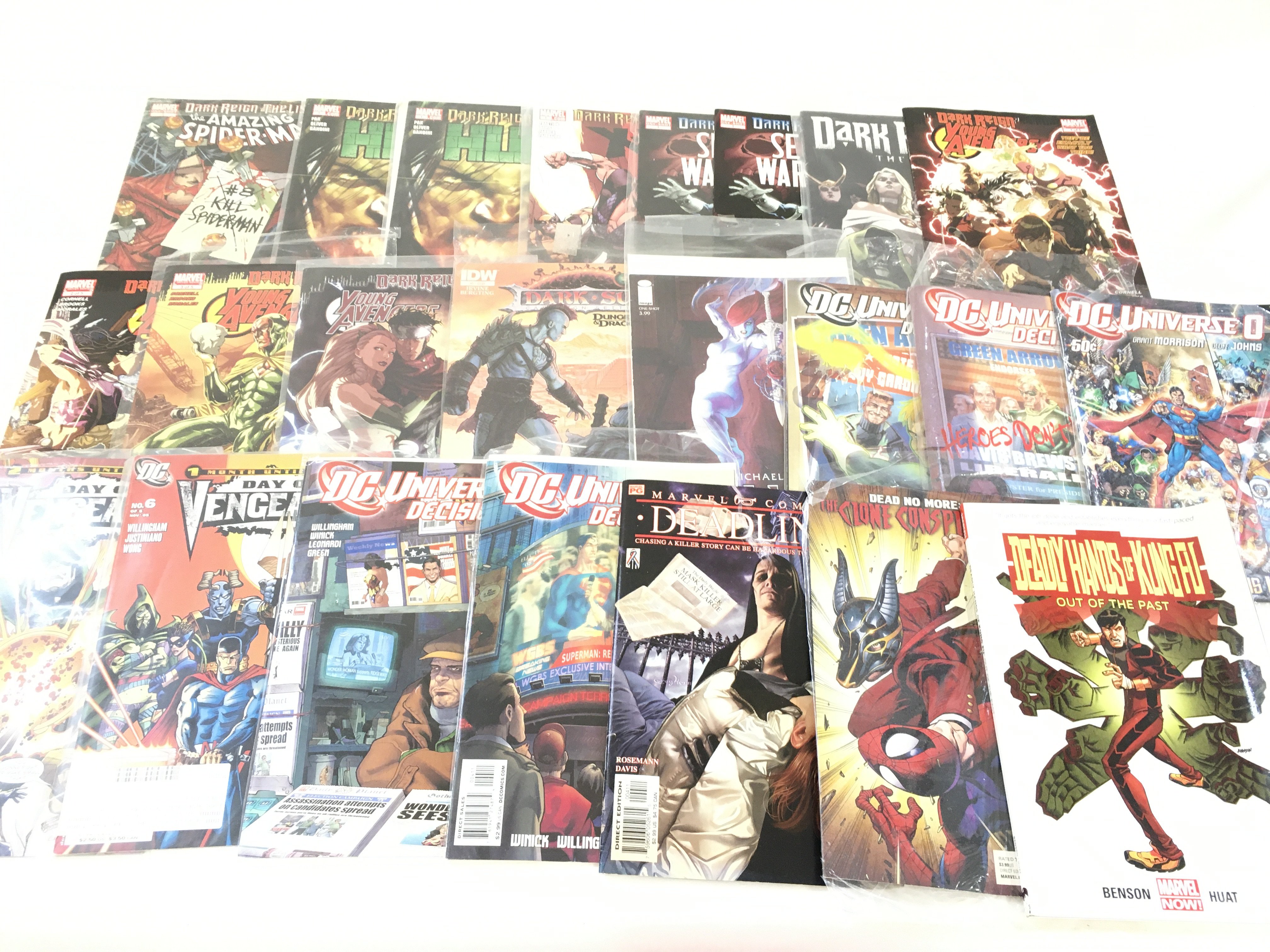 A box containing approximately 100 comics. Various titles to include Marvel. No Reserve.