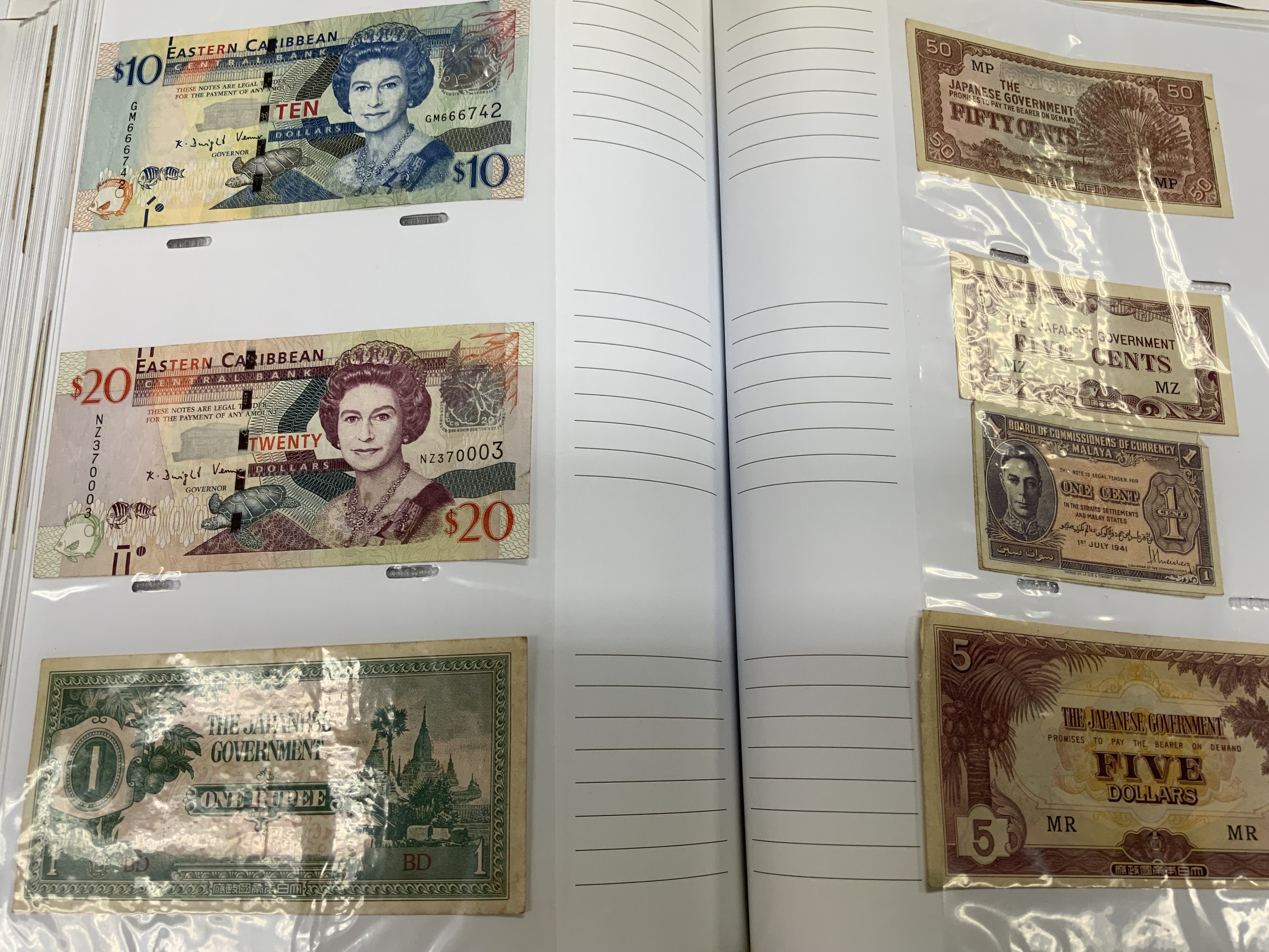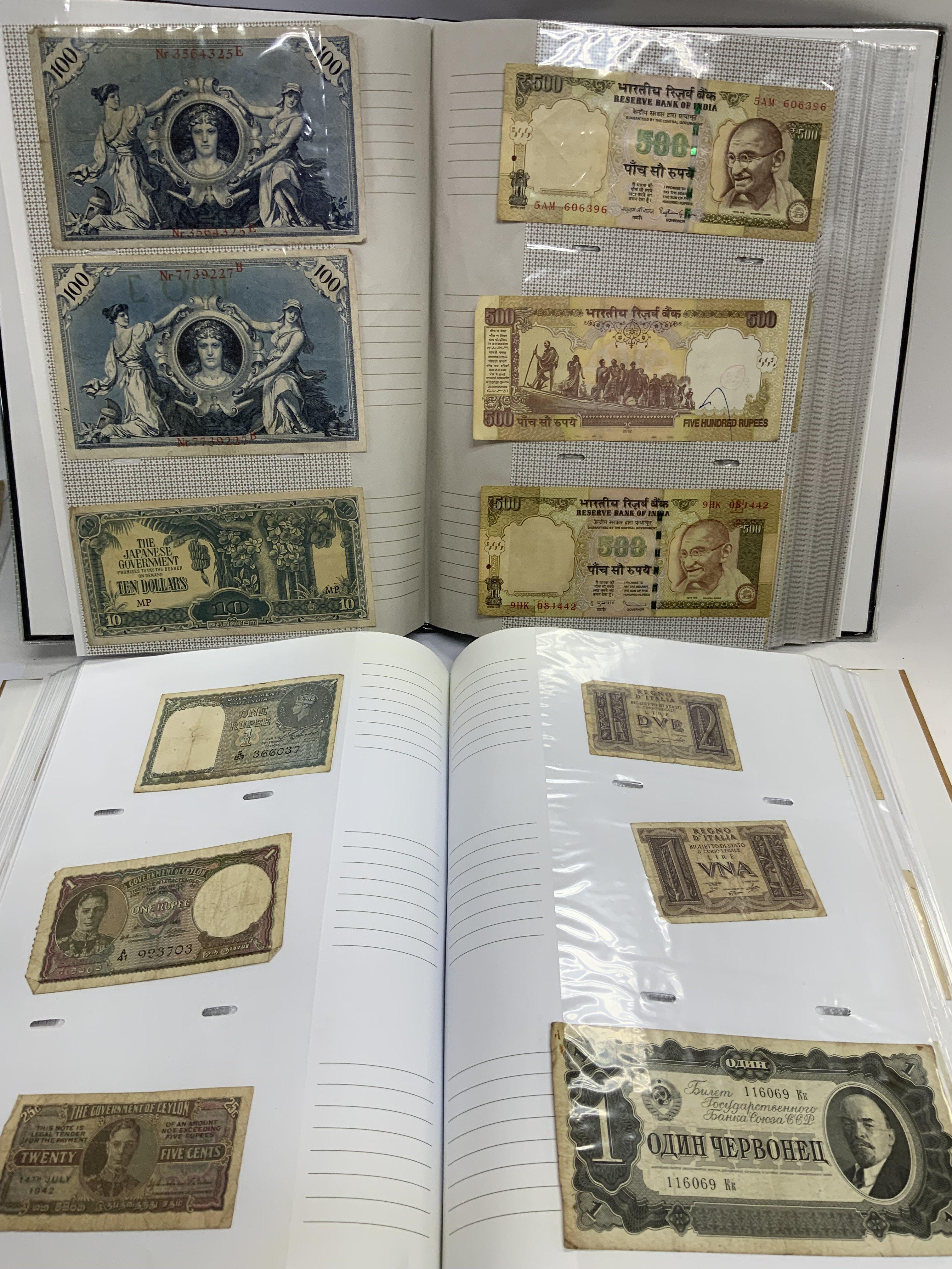 2 folders of various world banknotes. (C)