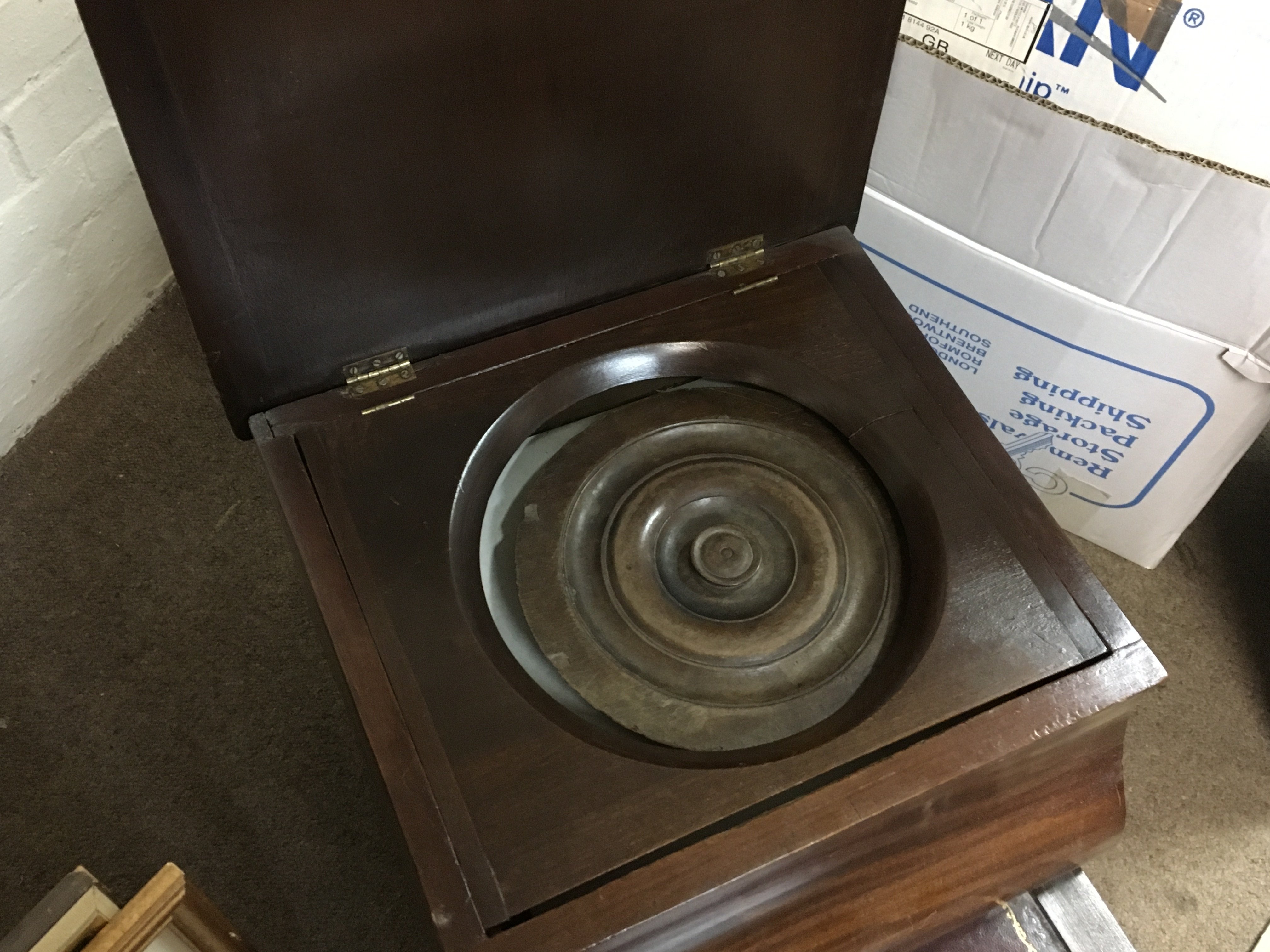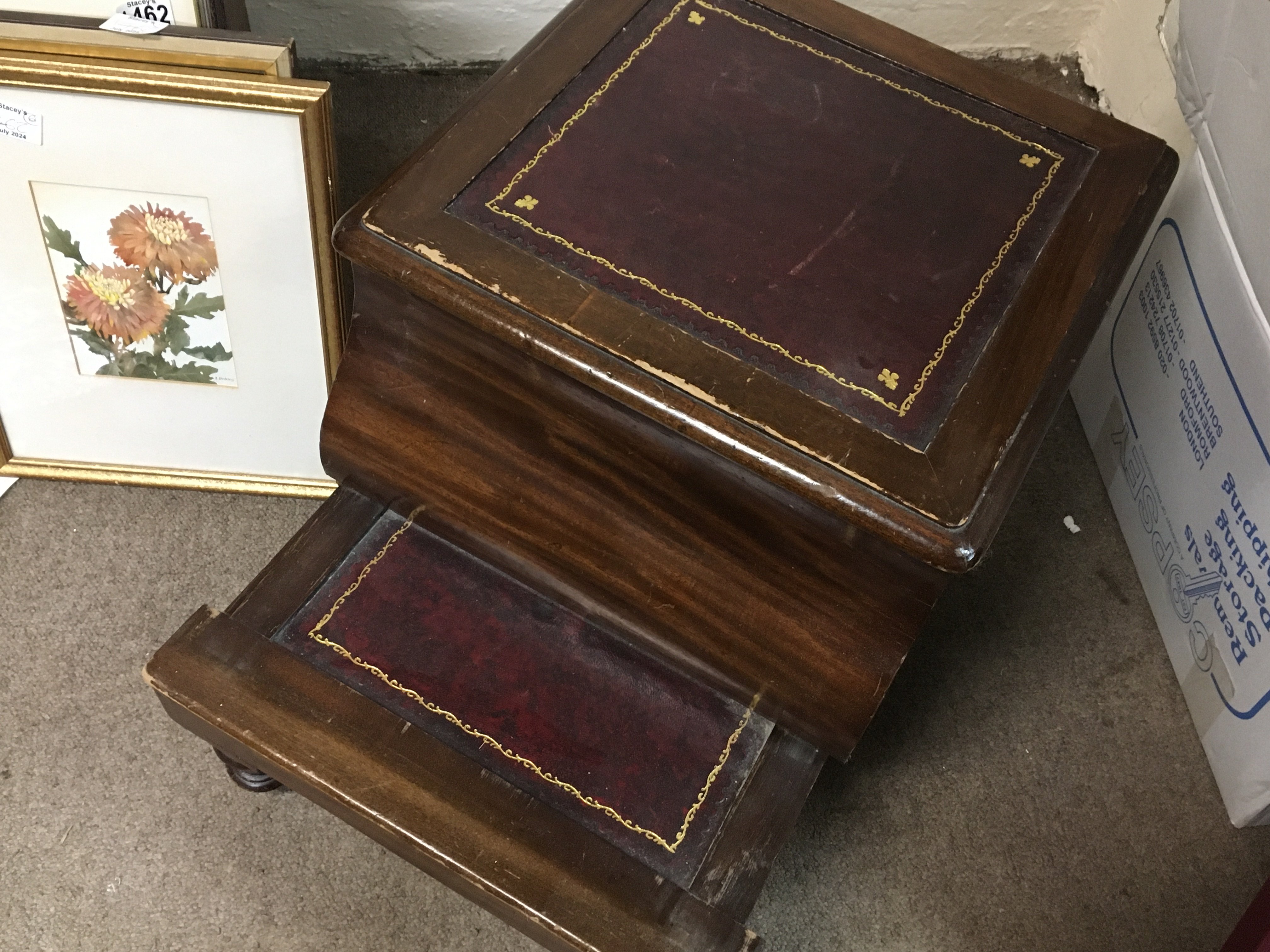 An oak commode with leather fitting. Dimensions 40x45x44cm- NO RESERVE