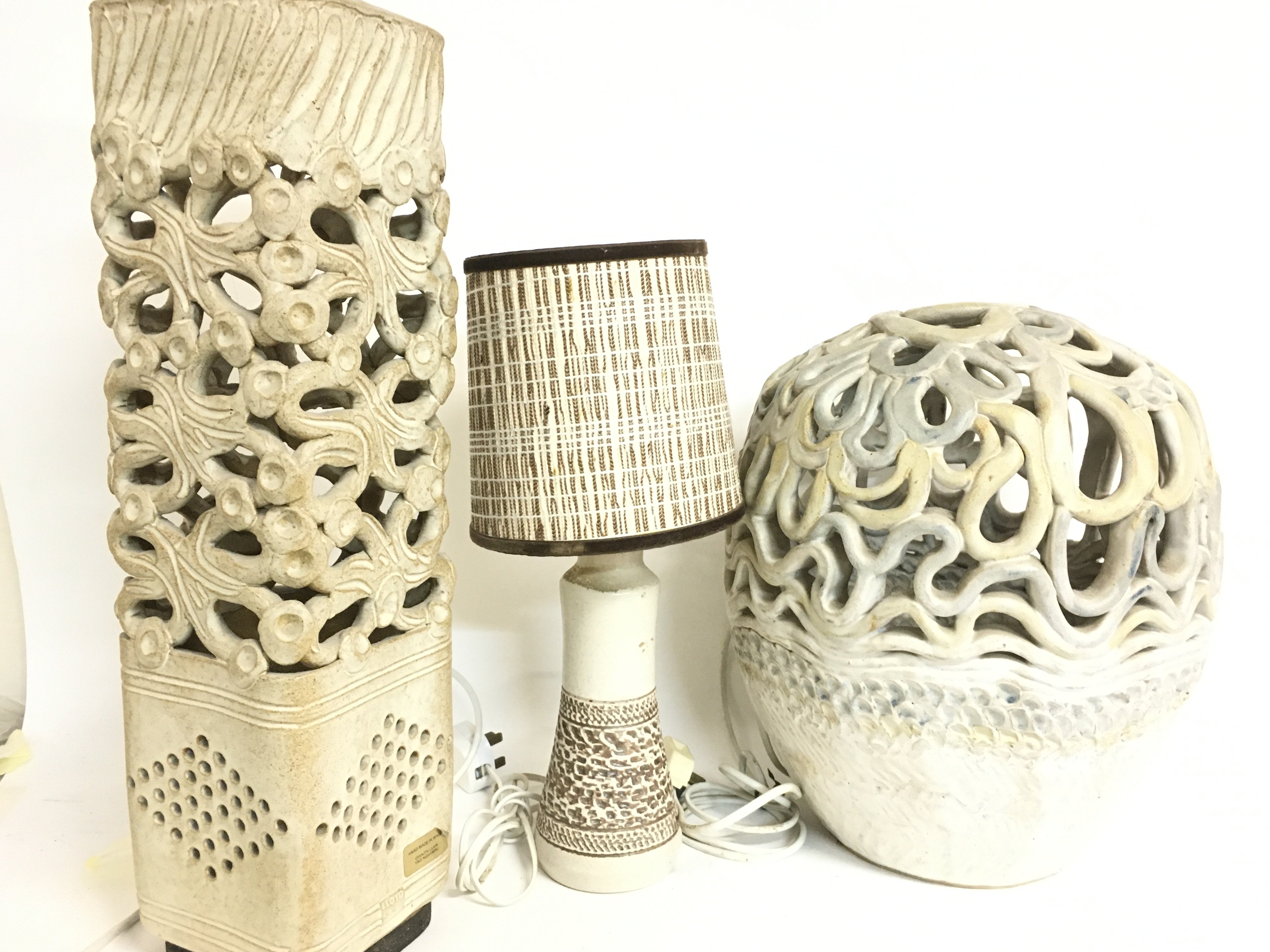 Stoneware Art lamps including Welsh lamp made by Lloyd. 42 to 53.5cm tall. This lot cannot be posted- NO RESERVE