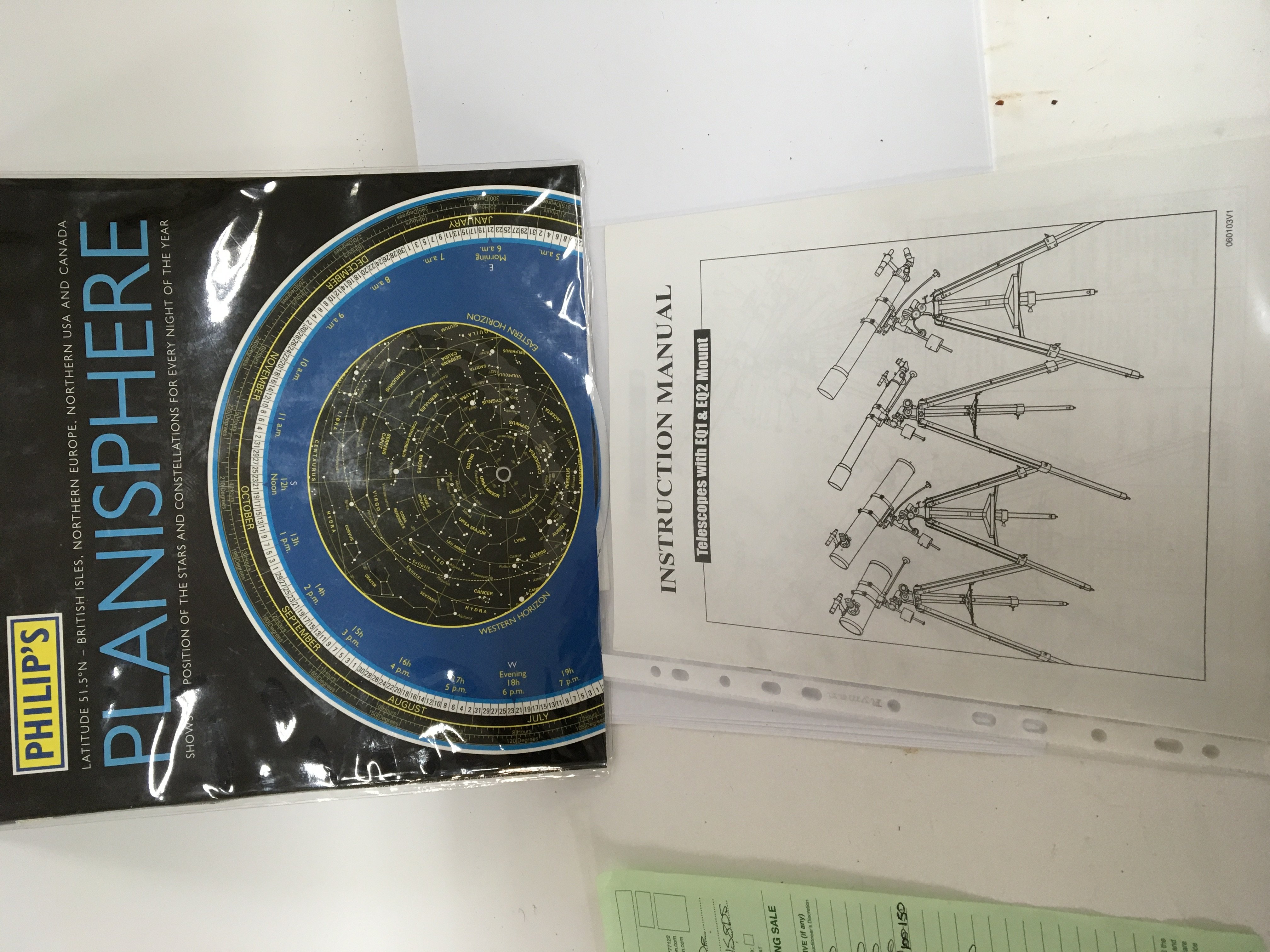 A Modern Sky Watch Telescope with adjustable stand and instruction manual and Philips Planisphere.