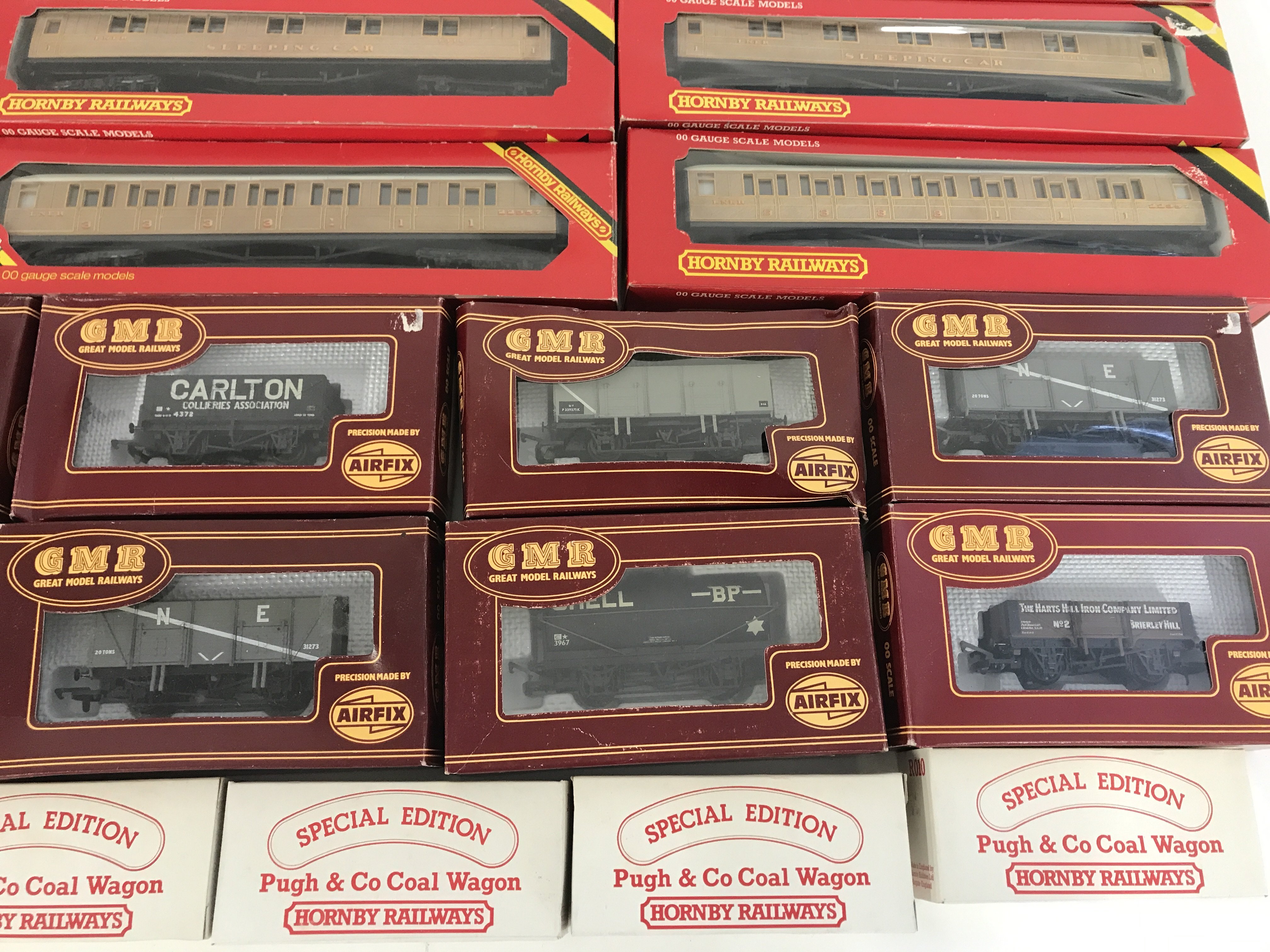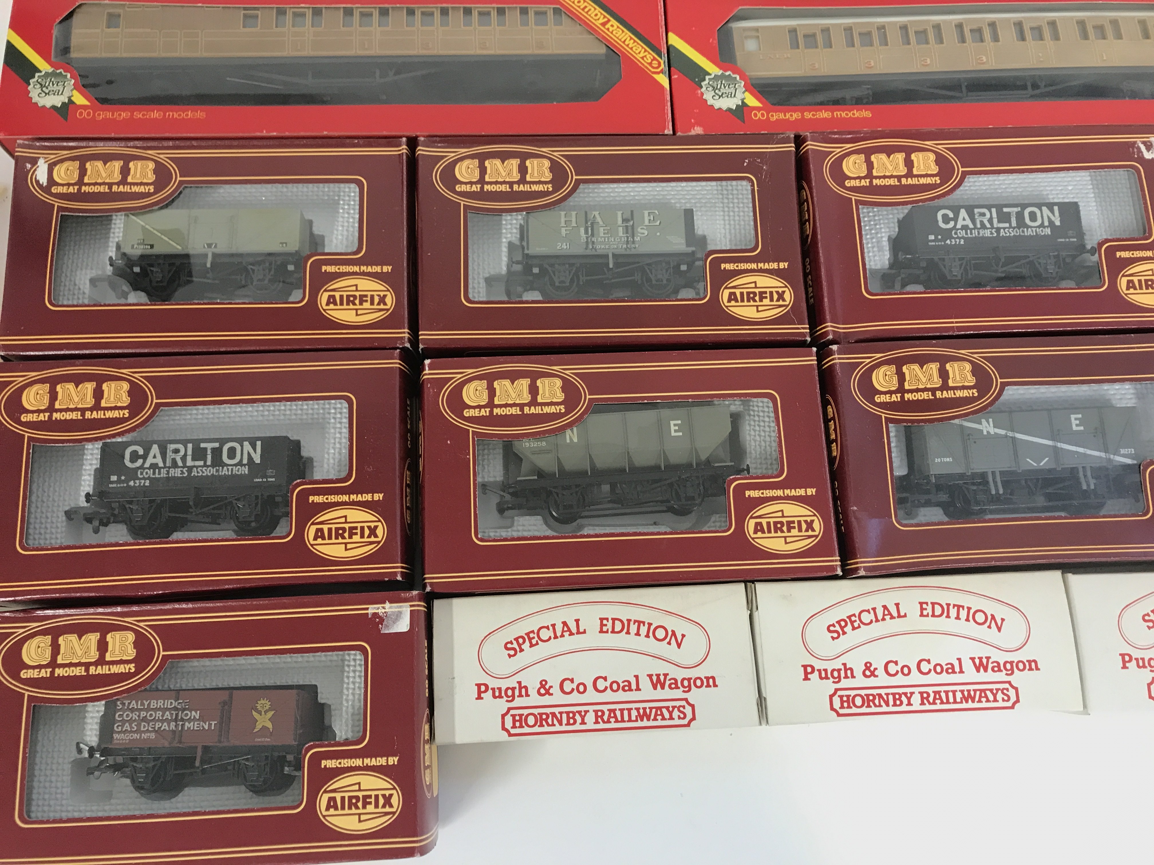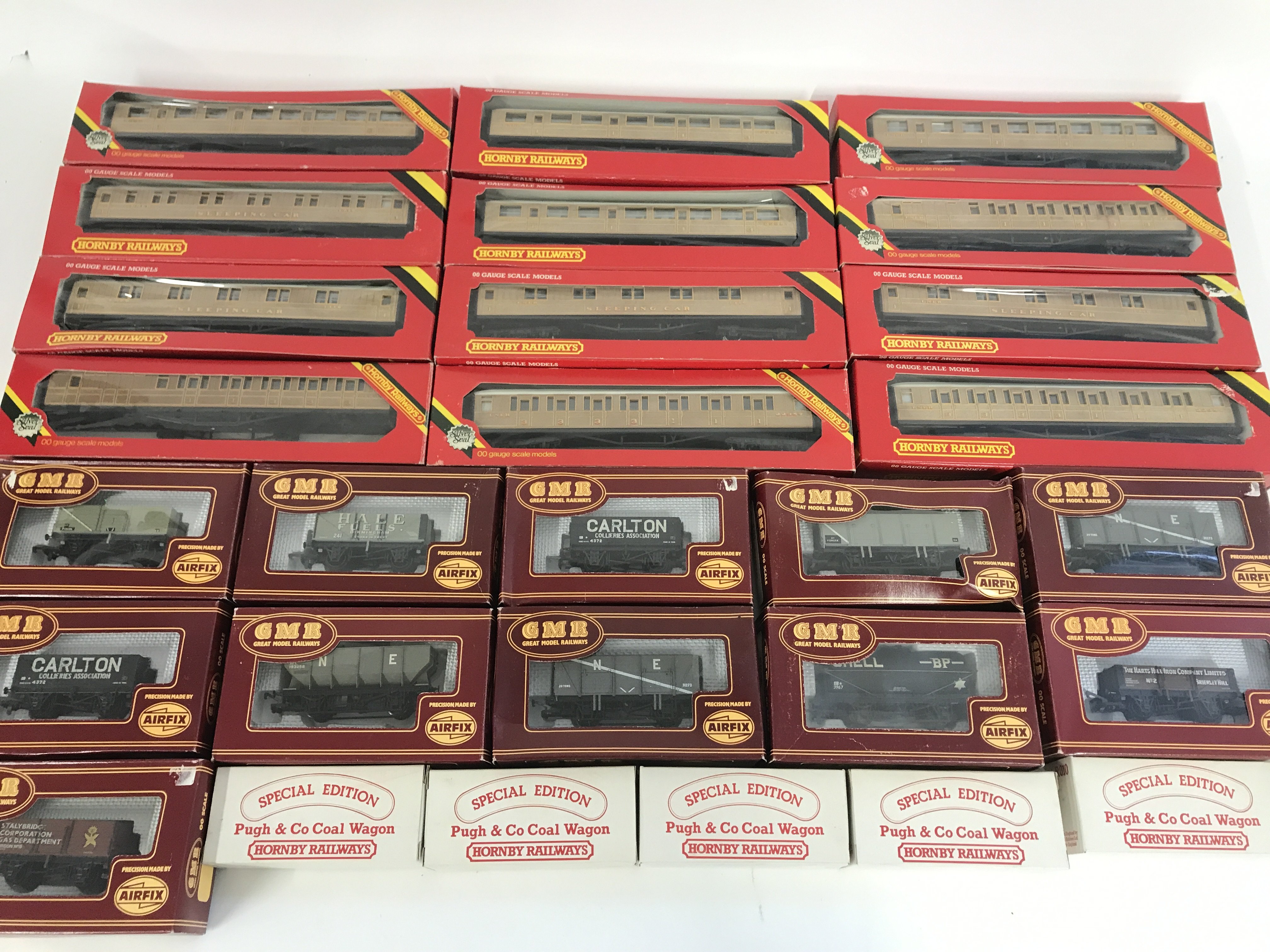A Collection of Boxed Hornby 00 Gauge Coaches and Airfix Wagons.