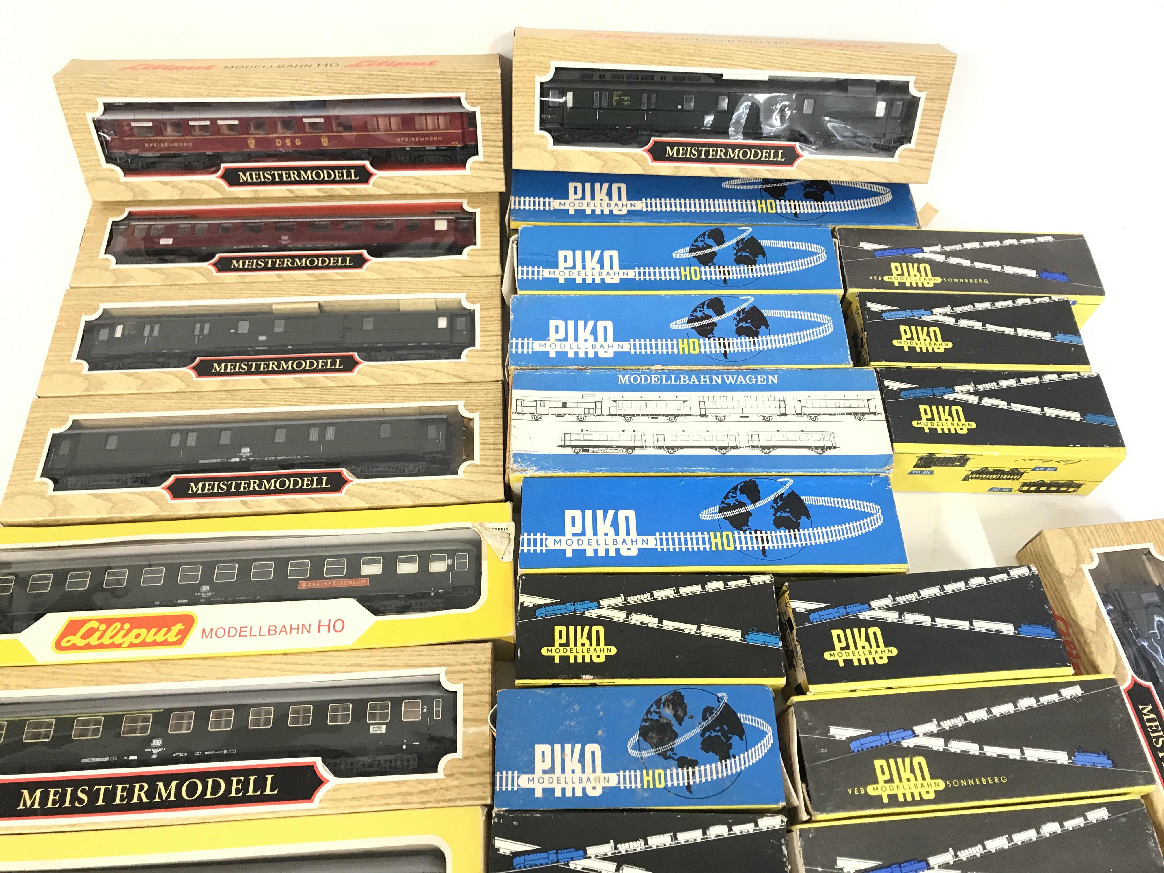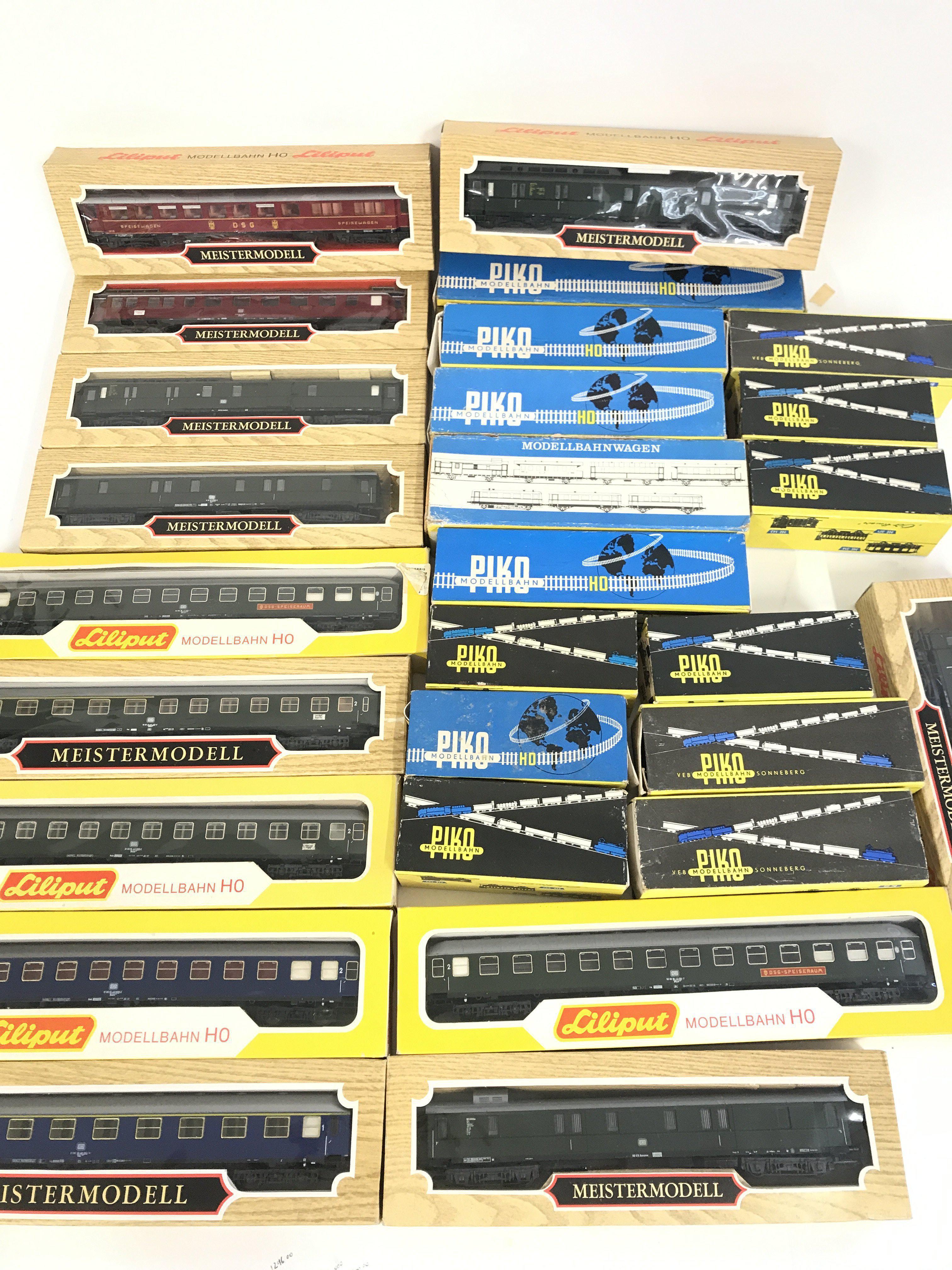 A Collection of Boxed H0 Gauge Coaches and Wagons including Liliput and Piko.