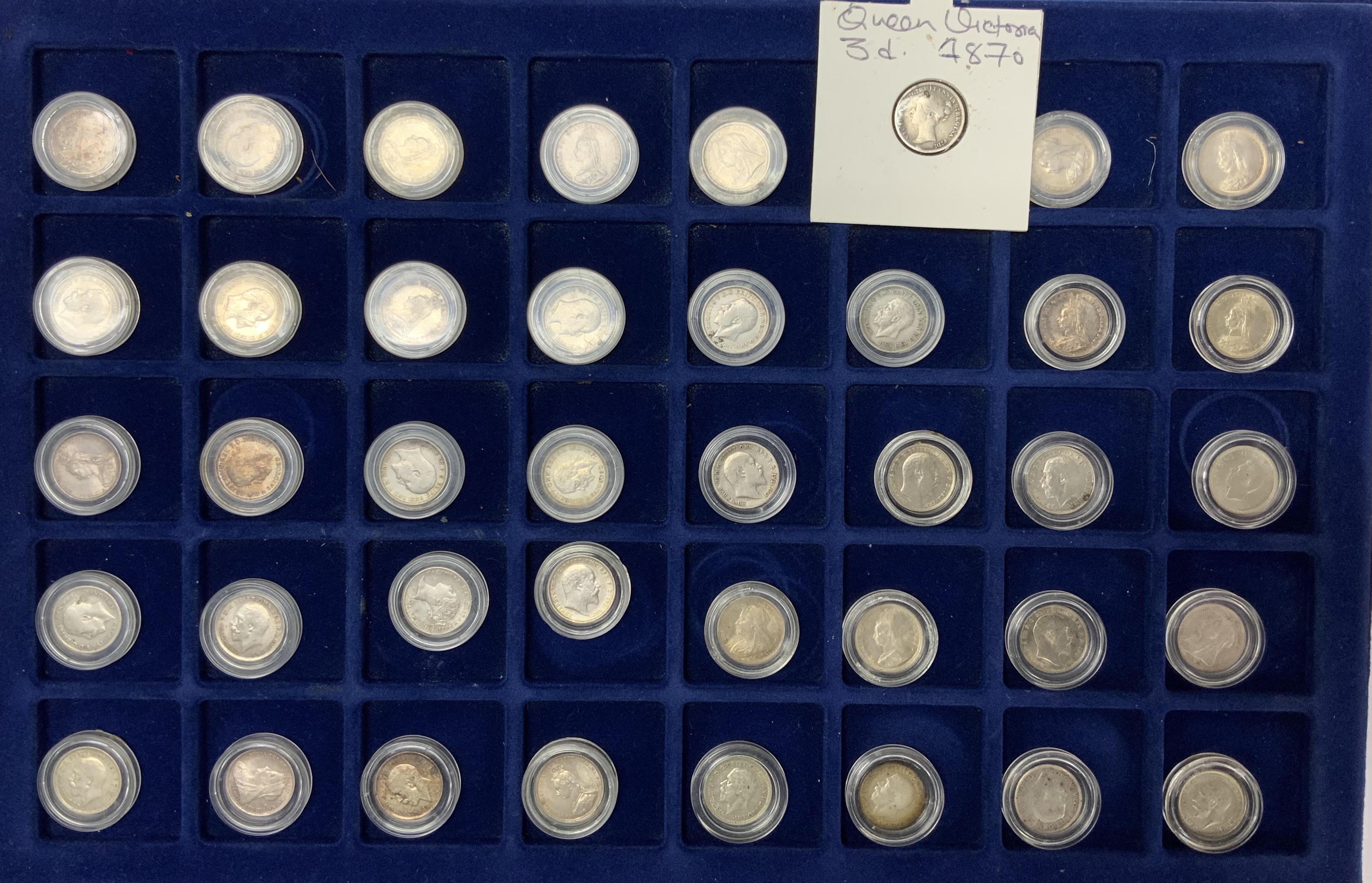 A collection of Queen Victoria and George V 3d coins (40), to include 1859, 1870 young head 3d coins (A)
