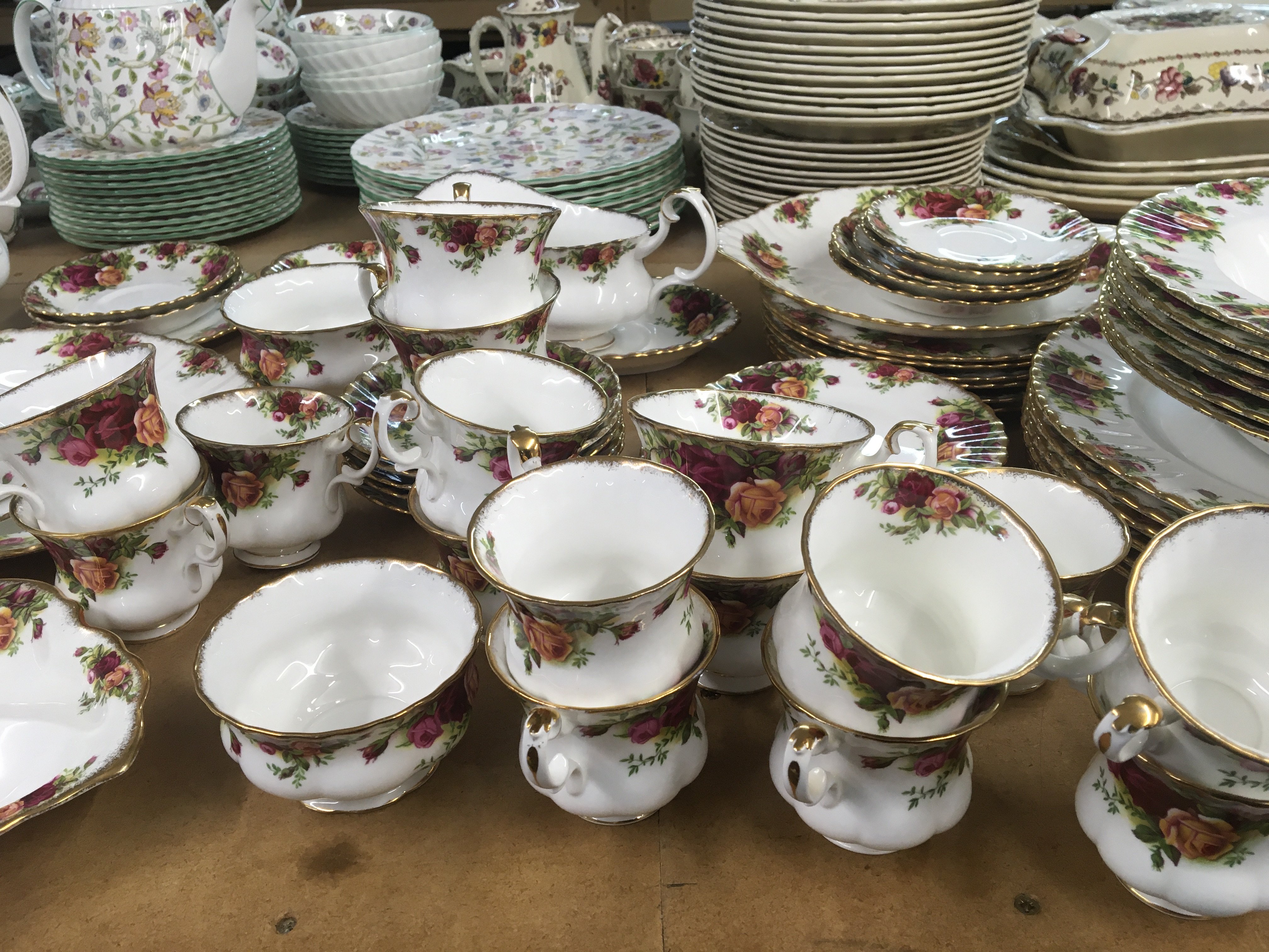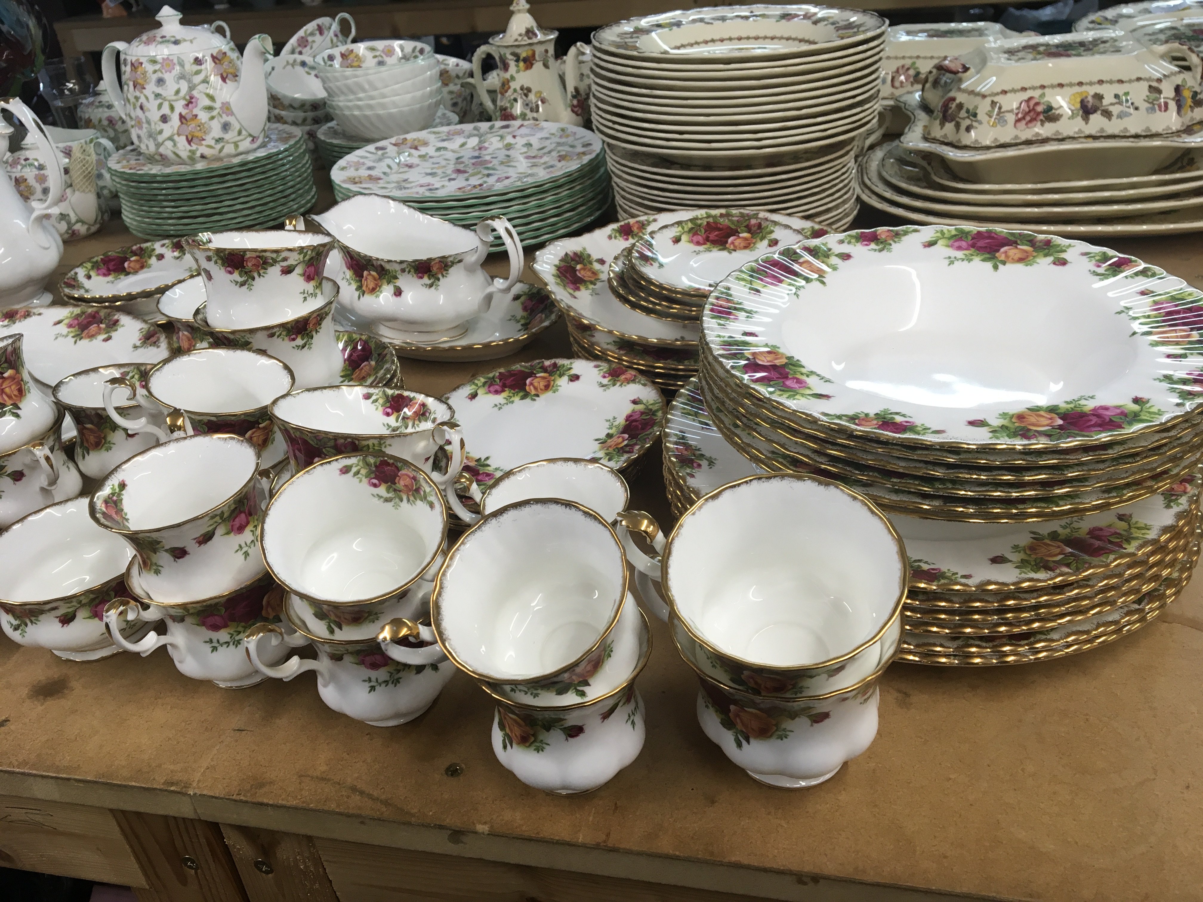 An Extensive Royal Albert Old English Country Rose dinner tea and coffee set with cake stand tea and coffee pot six place setting no obvious damage.
