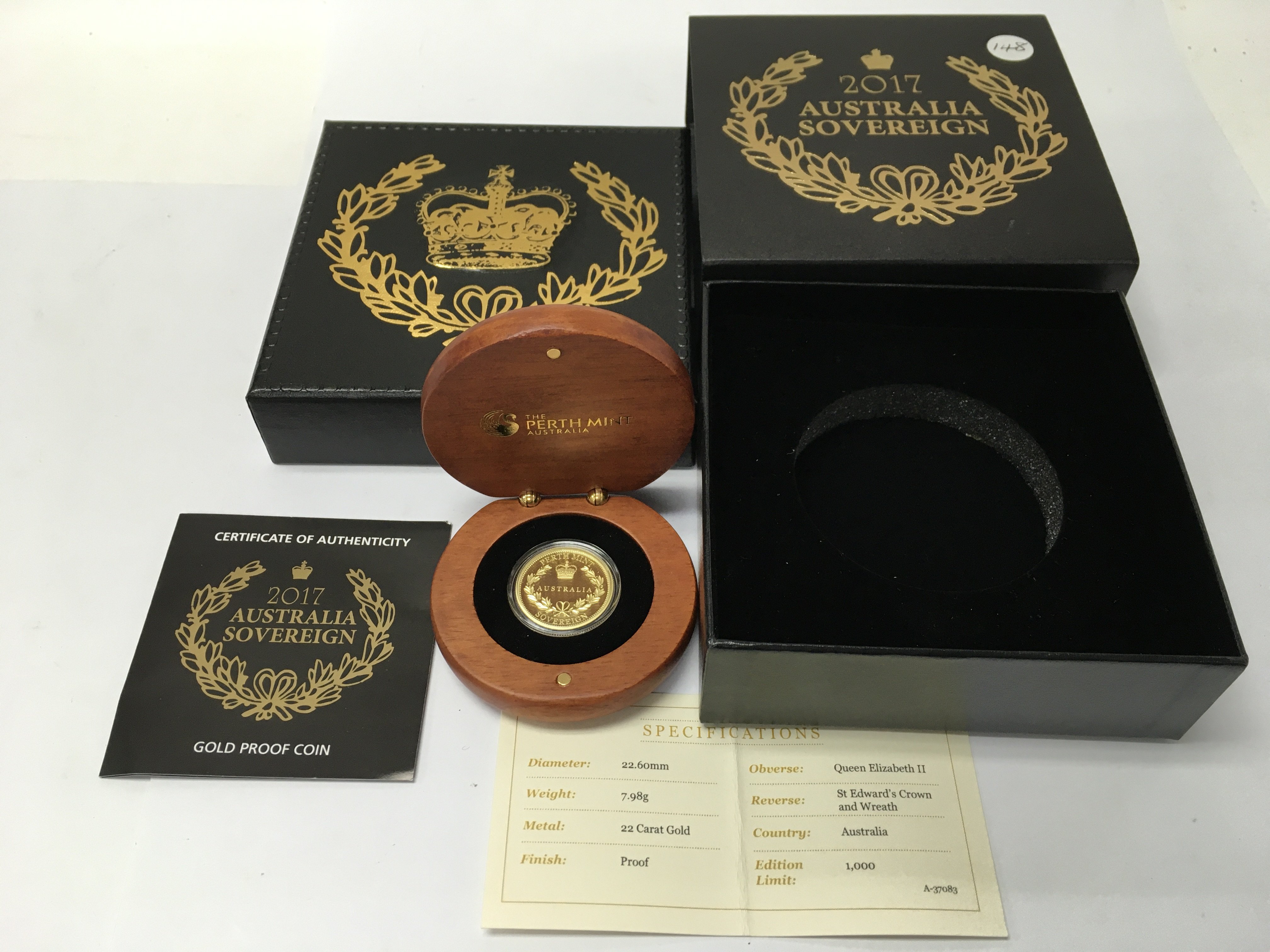 (WITHDRAWN - DUPLICATE LOT) A 2017 Australia proof sovereign with COA and packaging. Limited mintage of 1000. Postage B