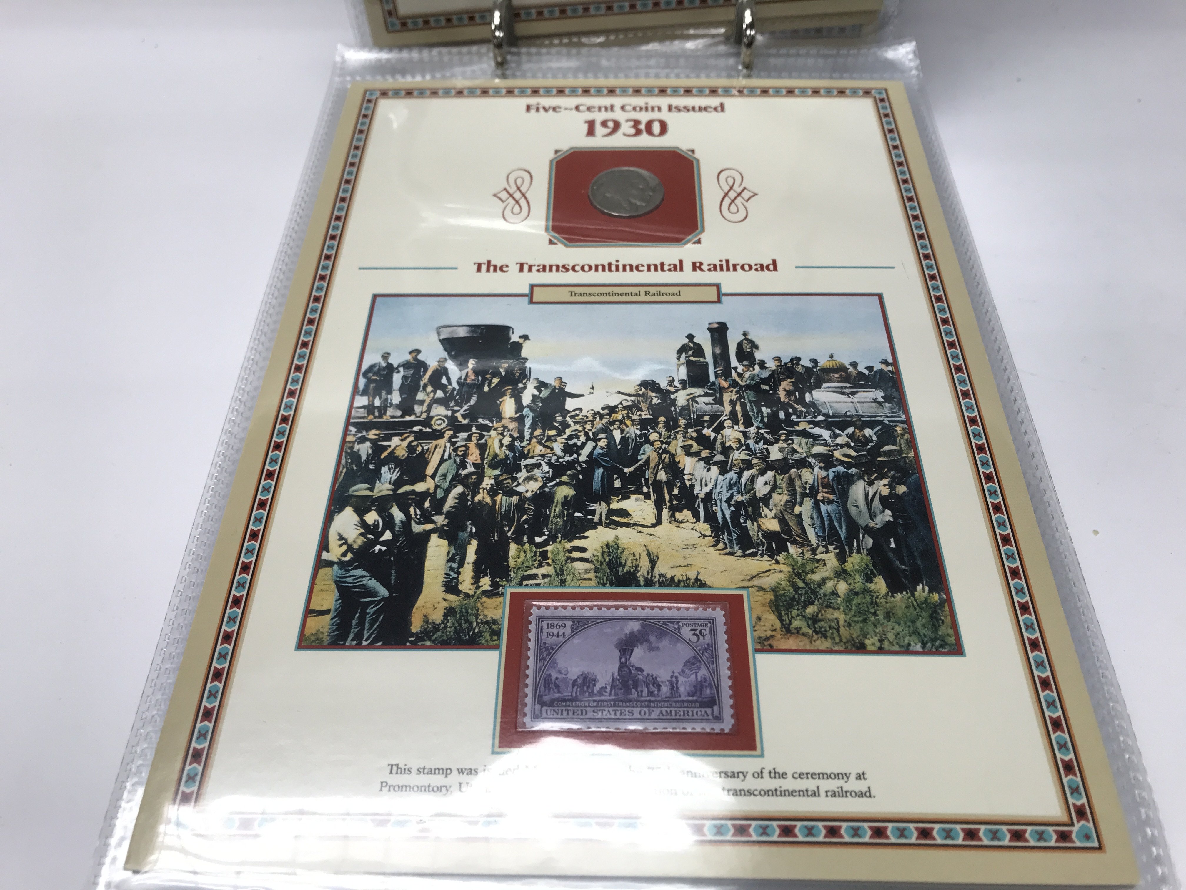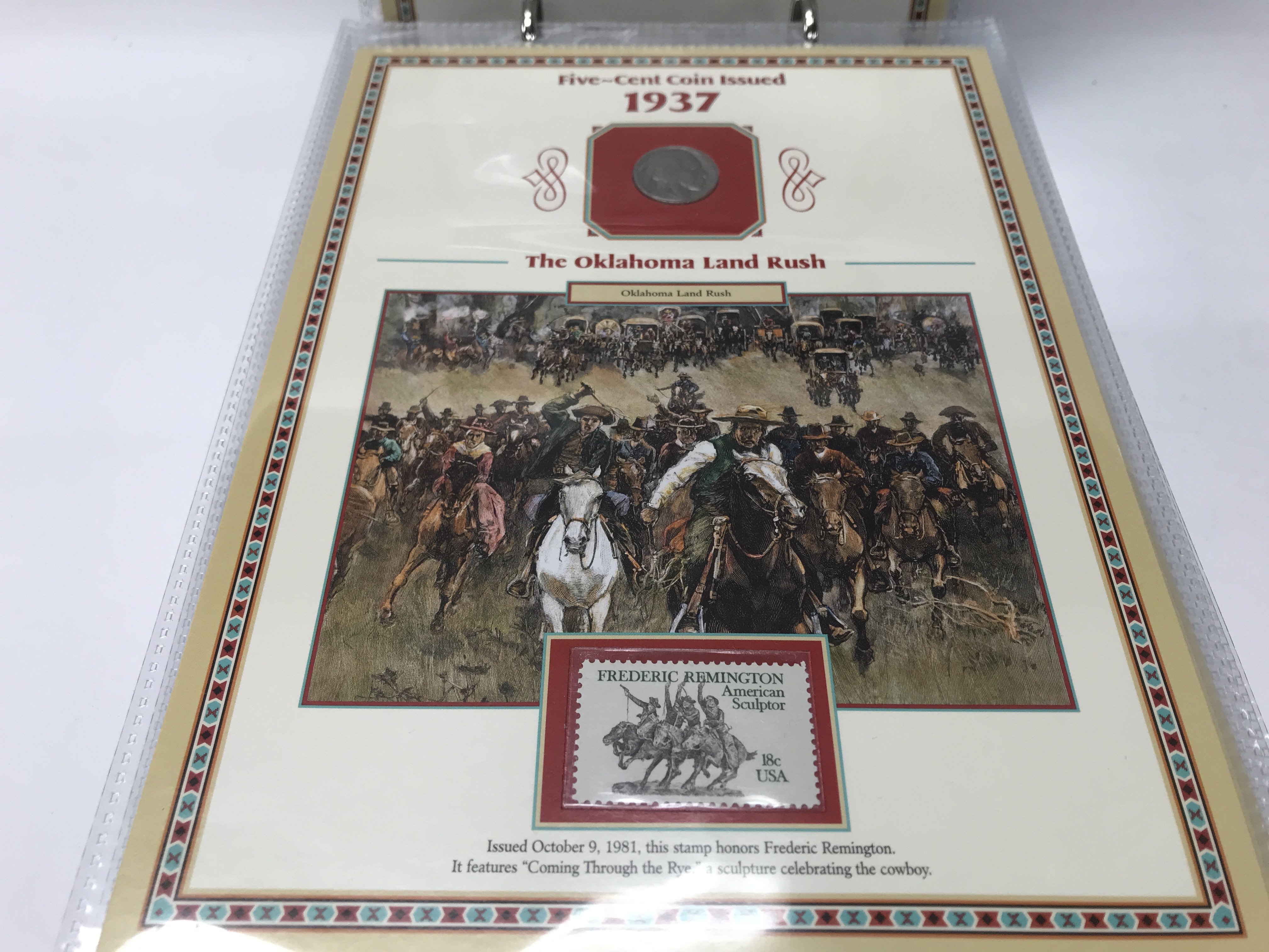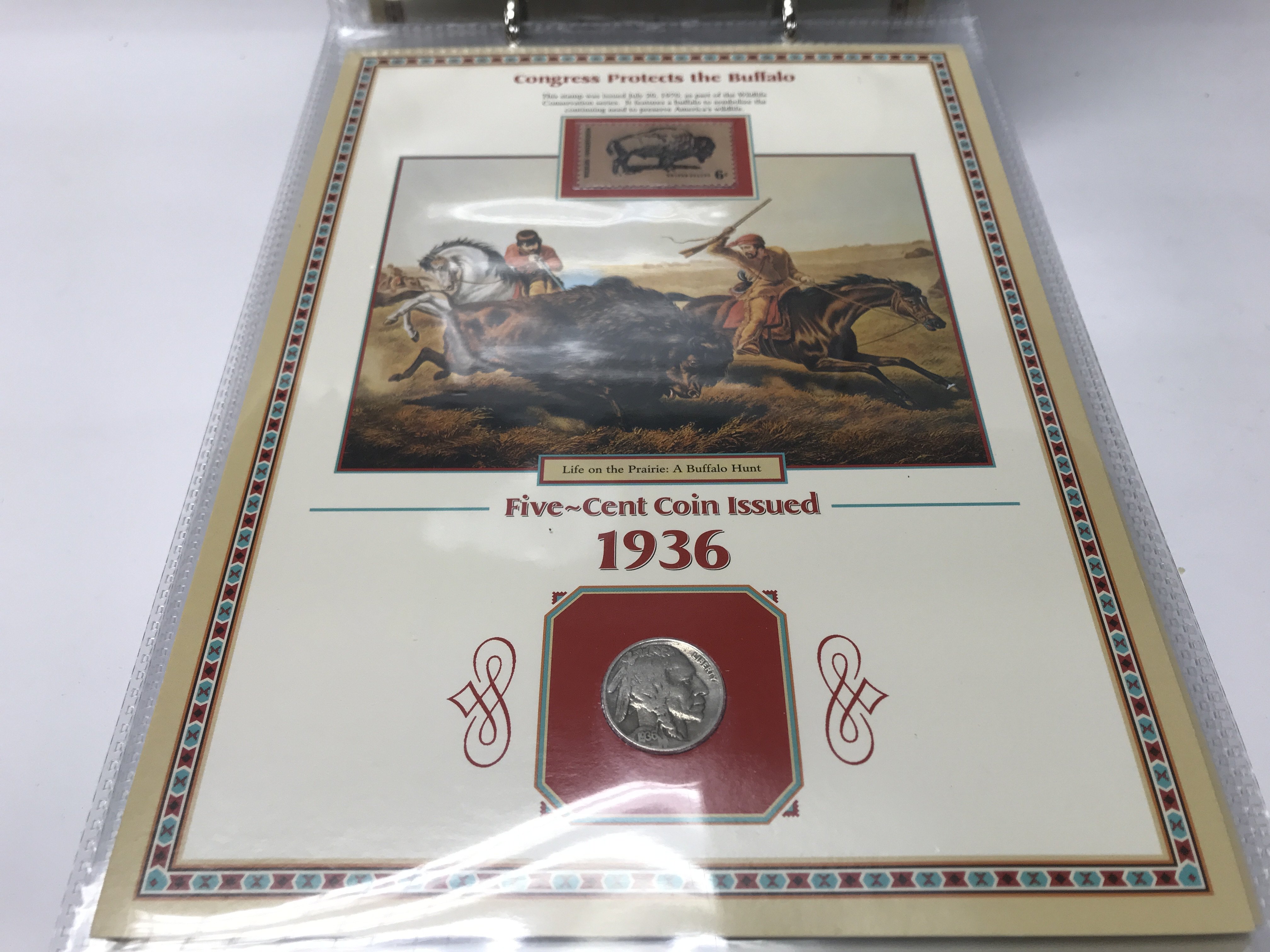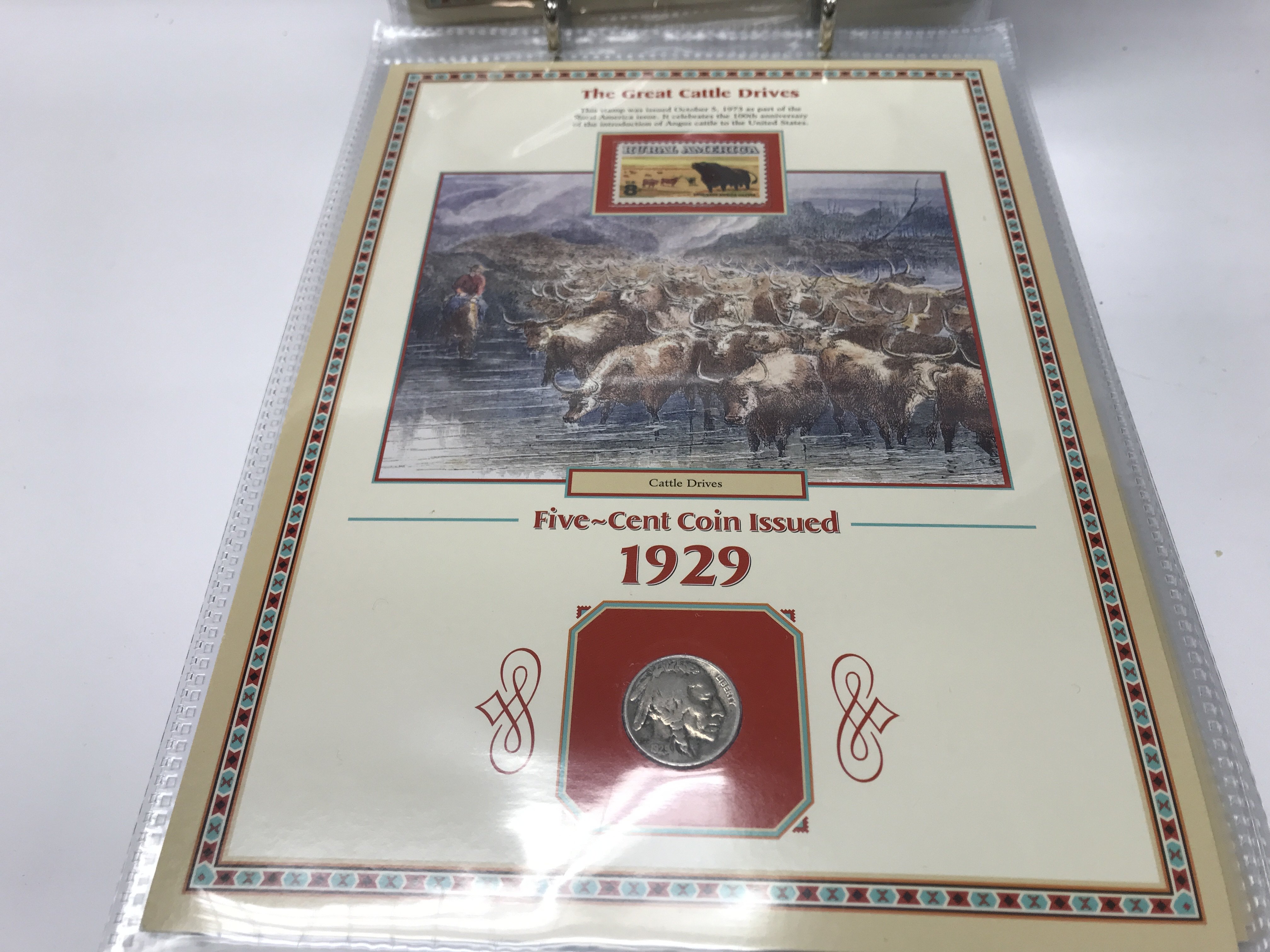 (WITHDRAWN DUPLICATE IS LOT 99) 20 years of buffalo nickels combined with US commemorative stamps and artwork honouring the American west.