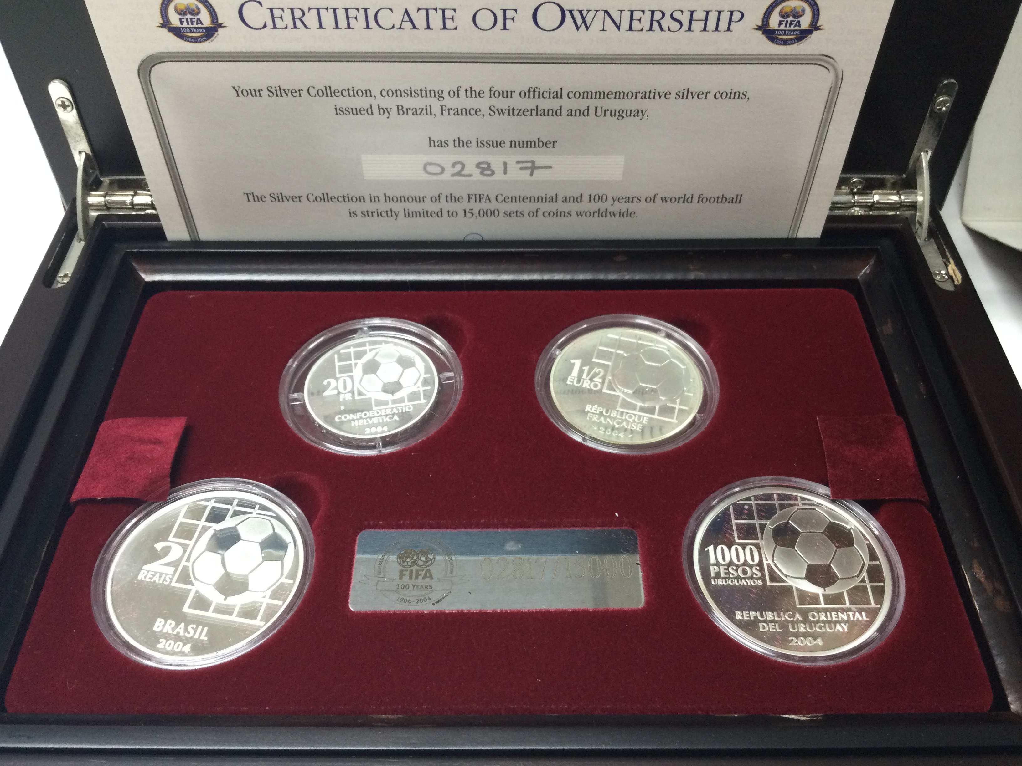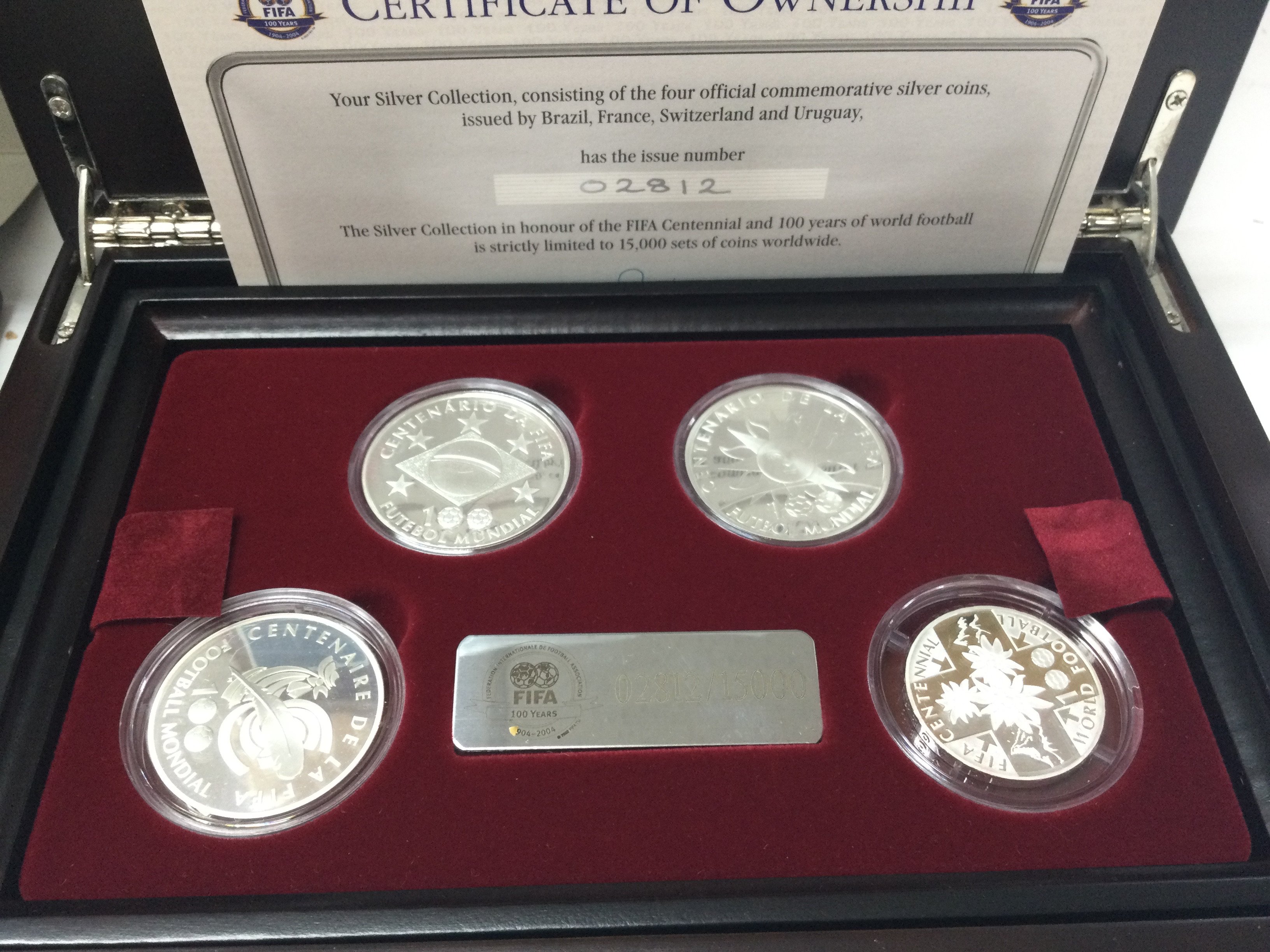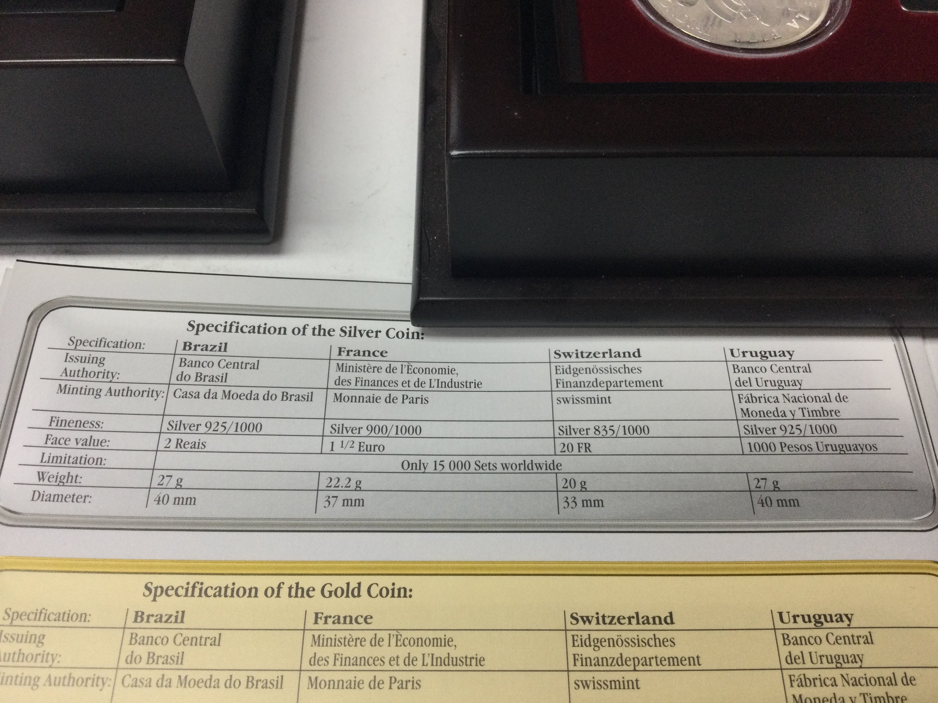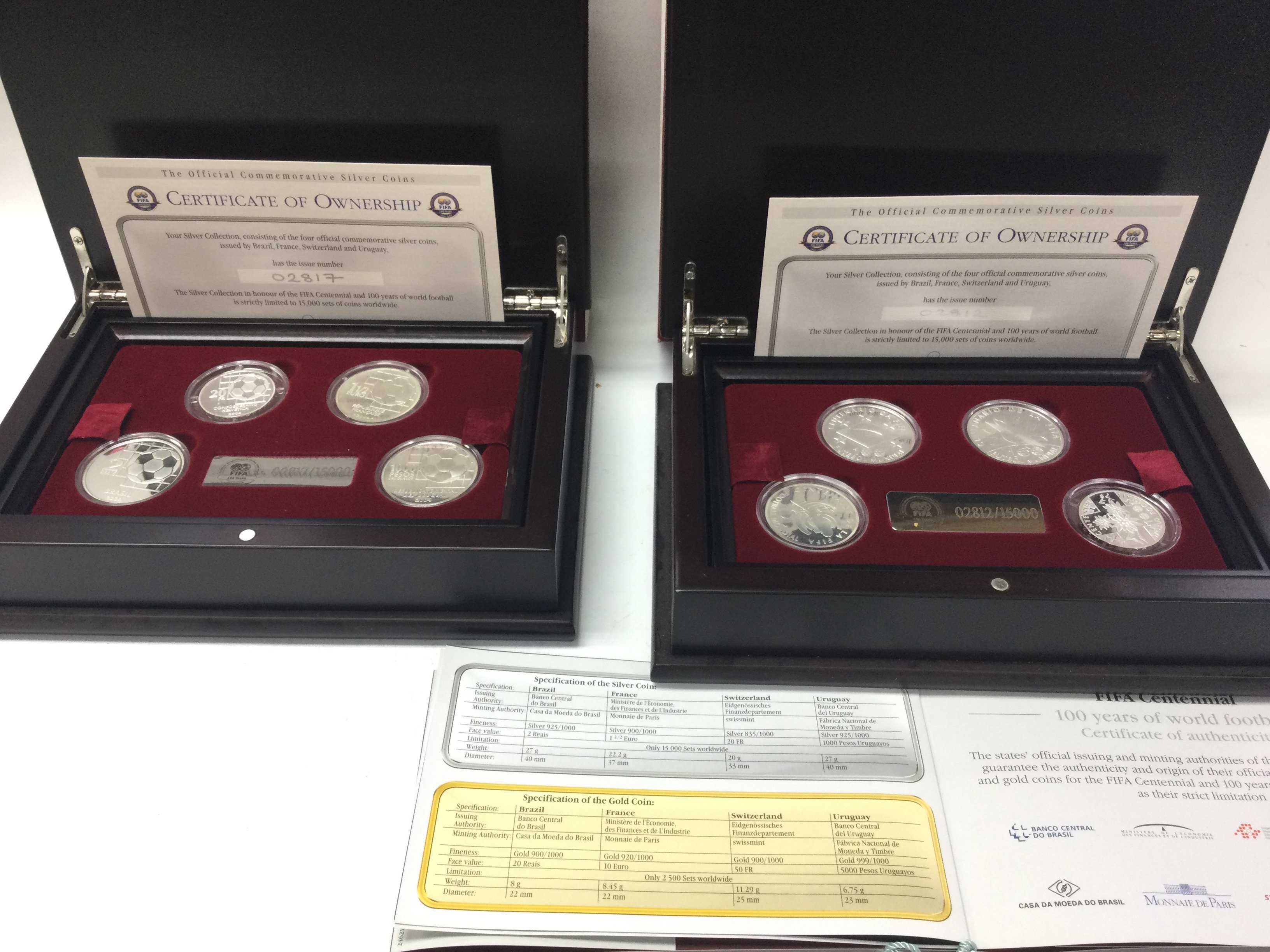 Two sets of fifa centennial silver coins with COAS. Postage B