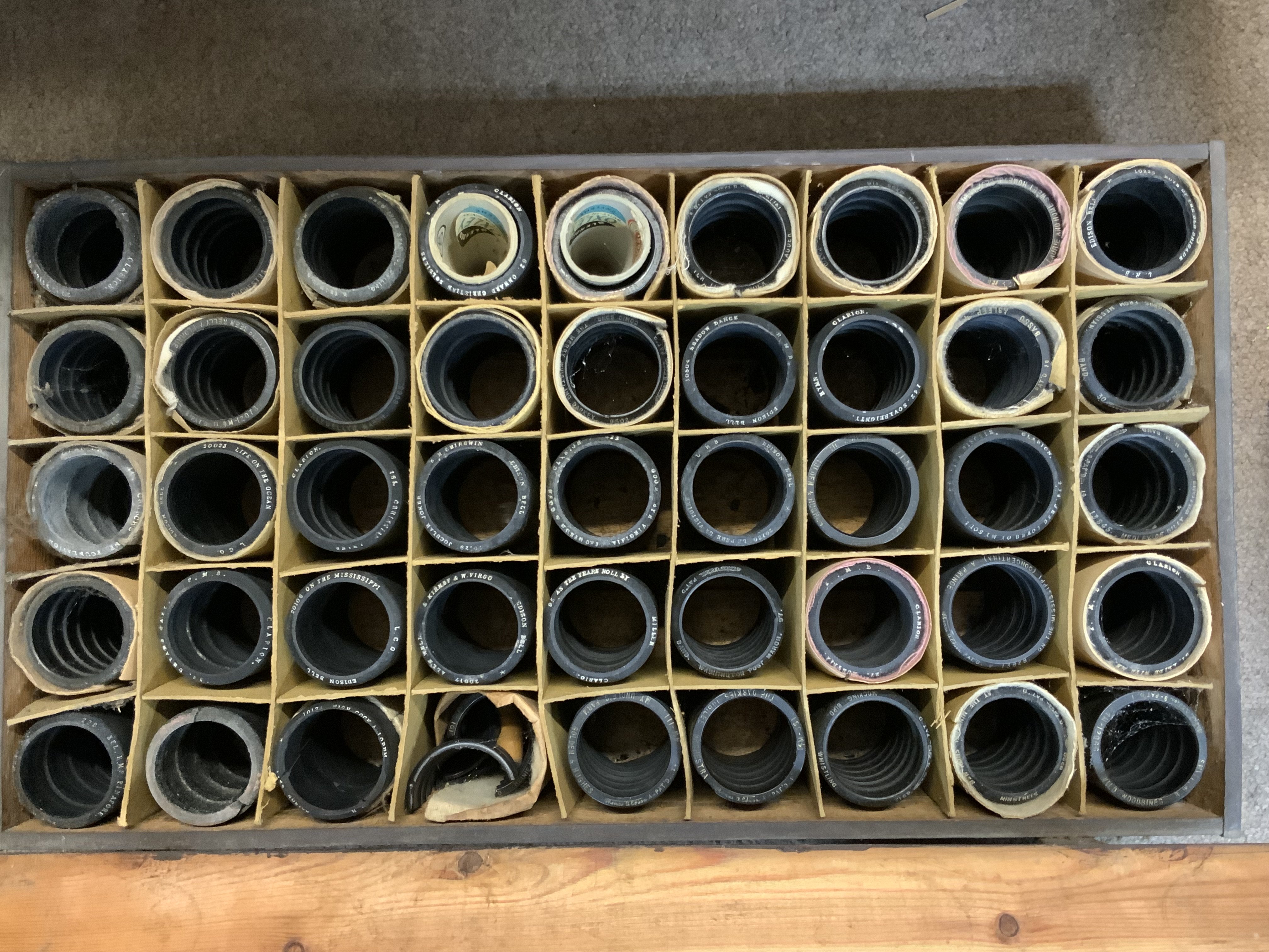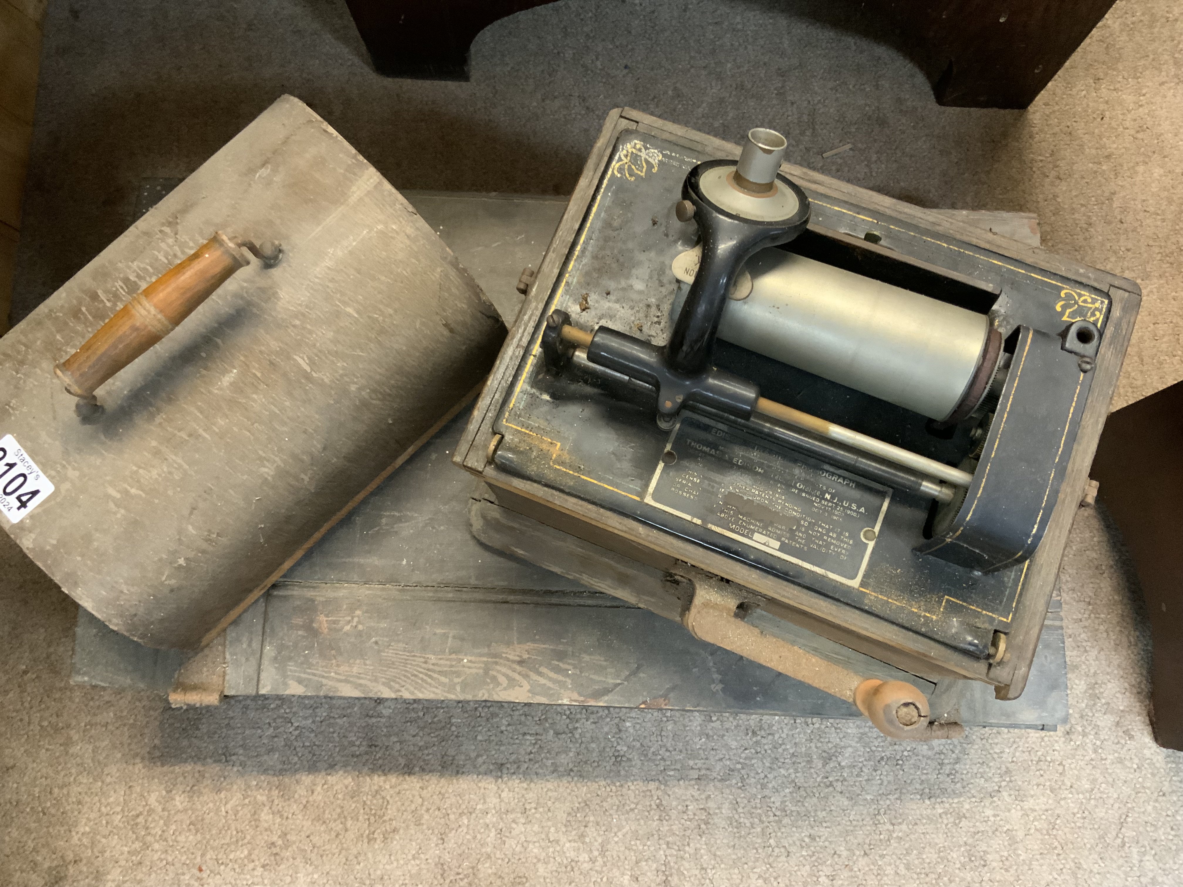 A vintage Edison phonograph together with a case of phonograph reels. (D) in need if attention.