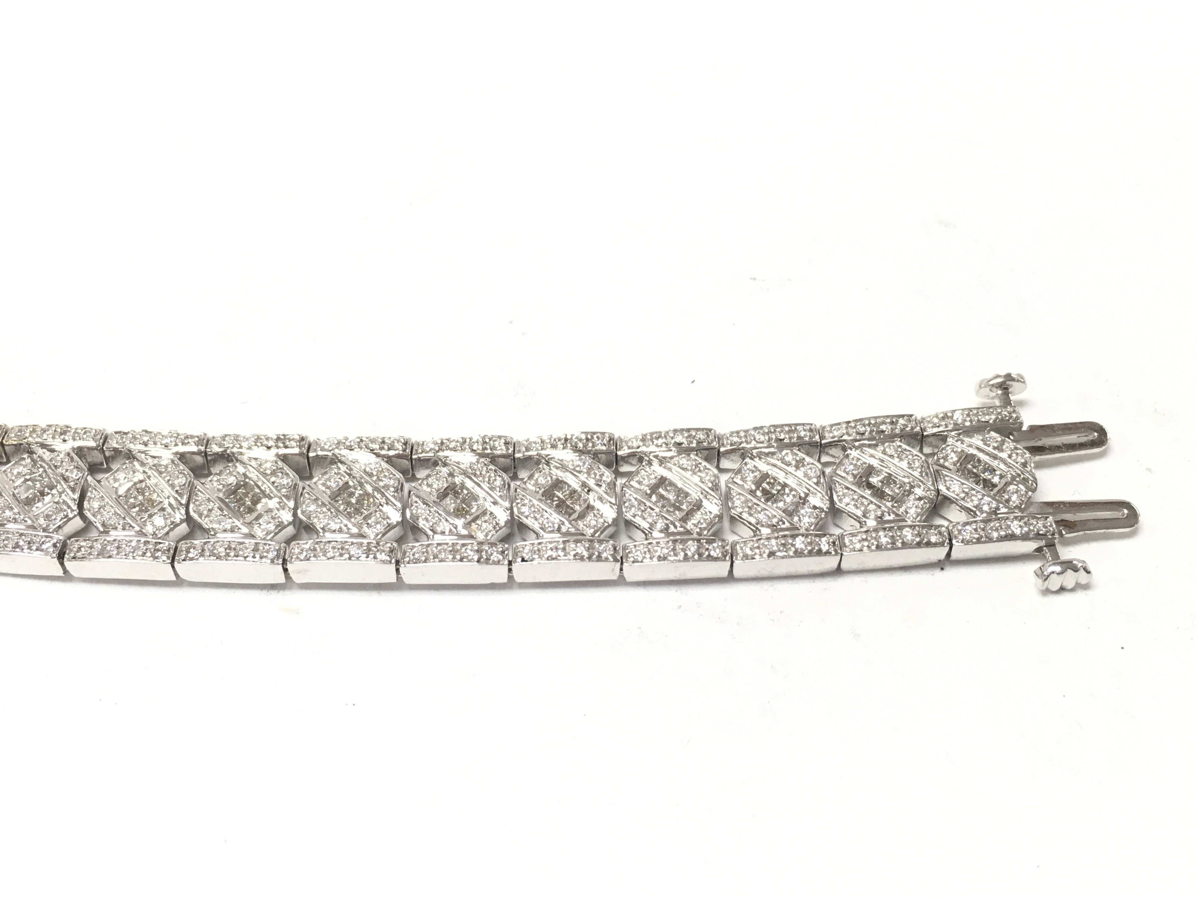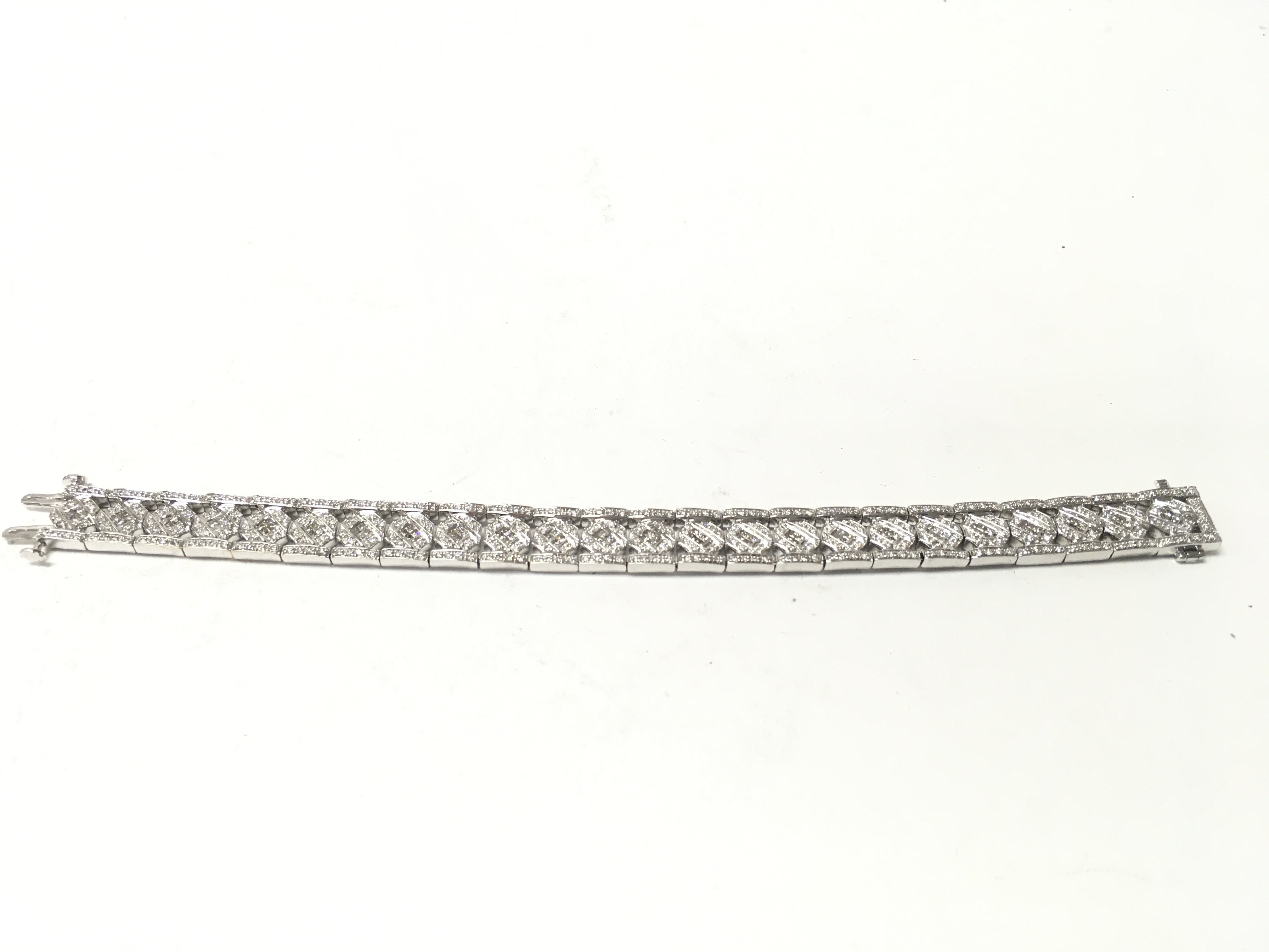 An 18ct white gold diamond bracelet. 42.07g total. 19cm long. Postage B