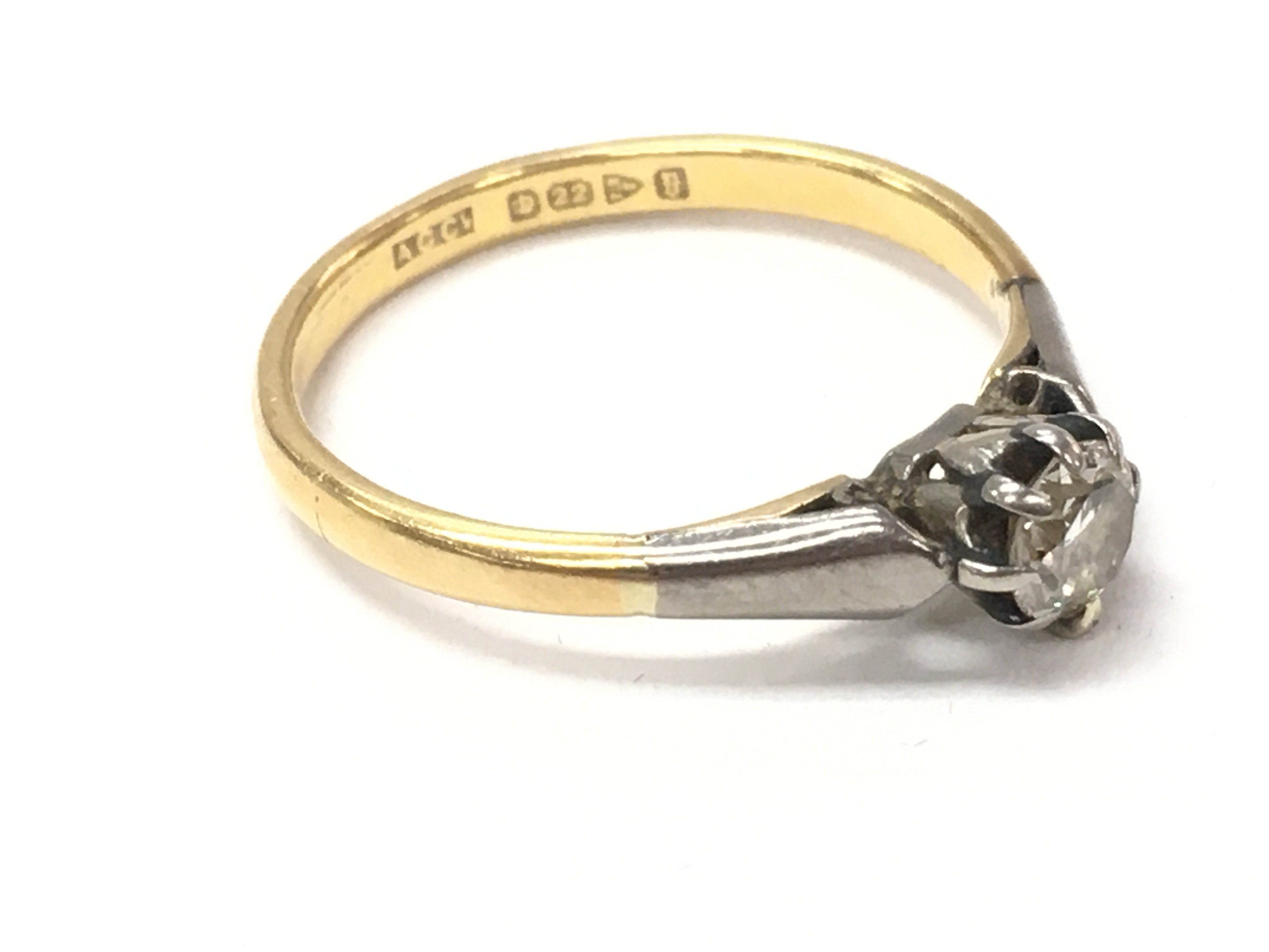 A 22ct gold diamond solitaire ring. 3.79g and Size V and approximately 0.25ct diamond.