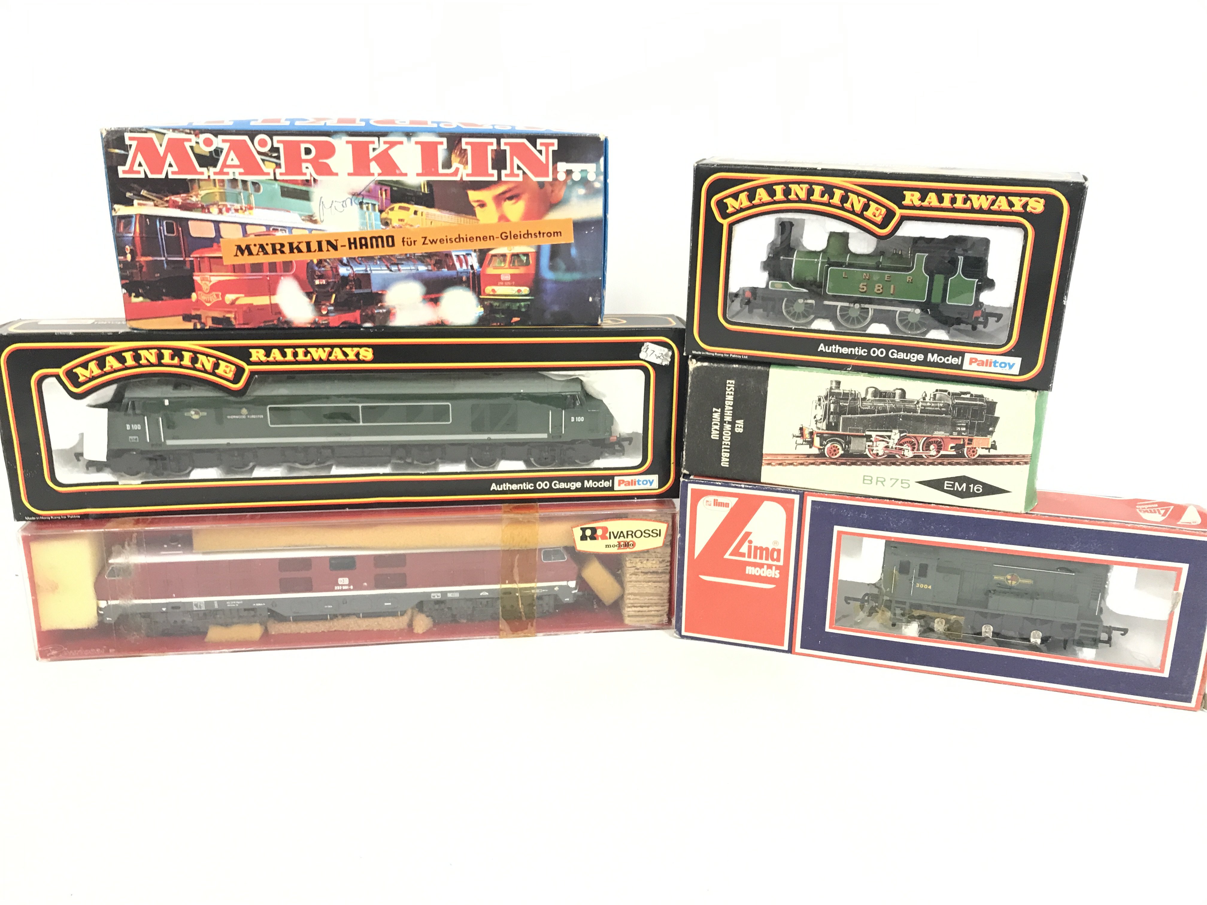 A Collection of 6 Boxed Locomotives including Llima. Rivarossi. Mainline. Marklin etc.