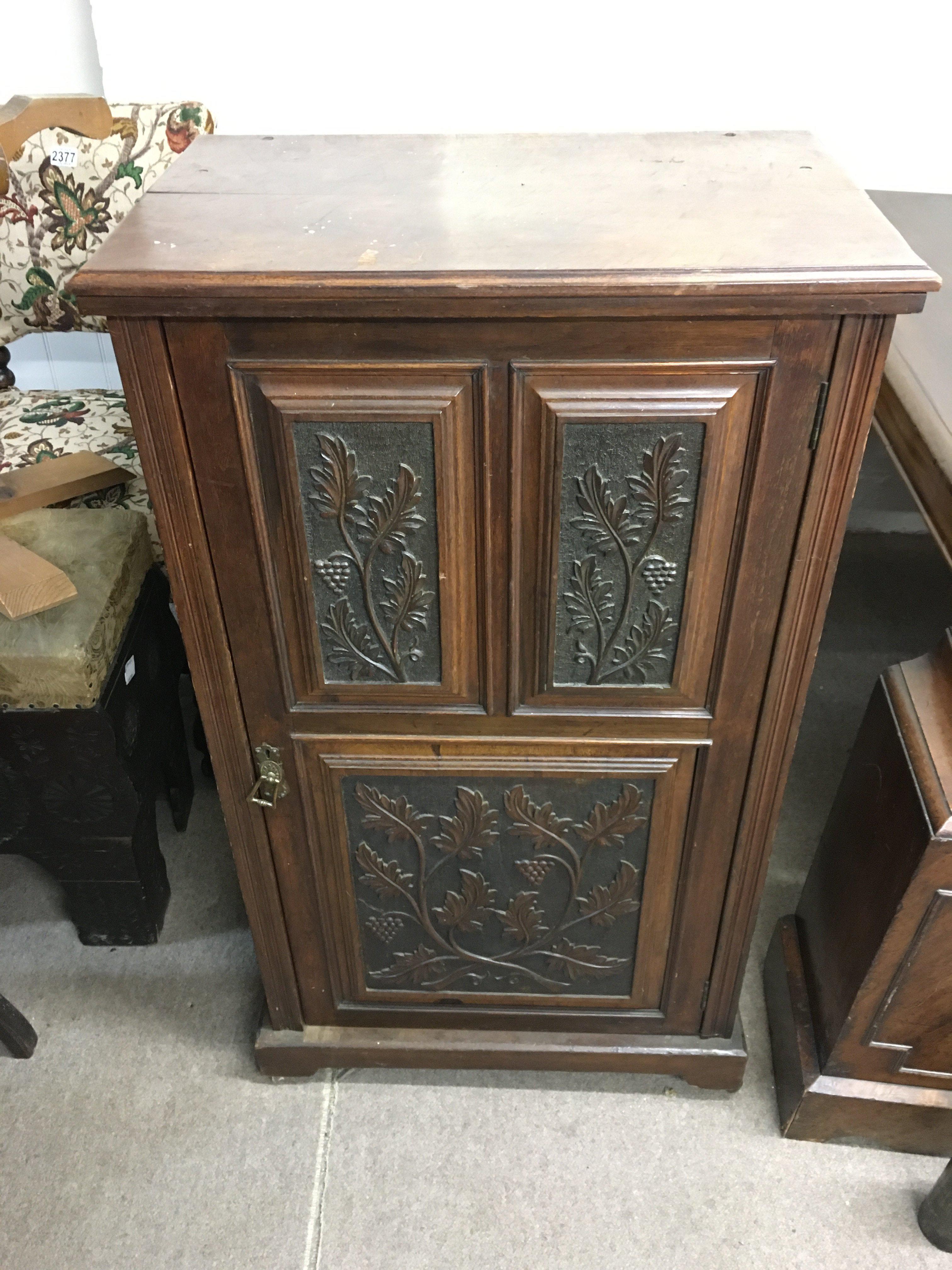 A Victorian oak cupboard with carved wooden panels 37x58x102cm. NO RESERVE