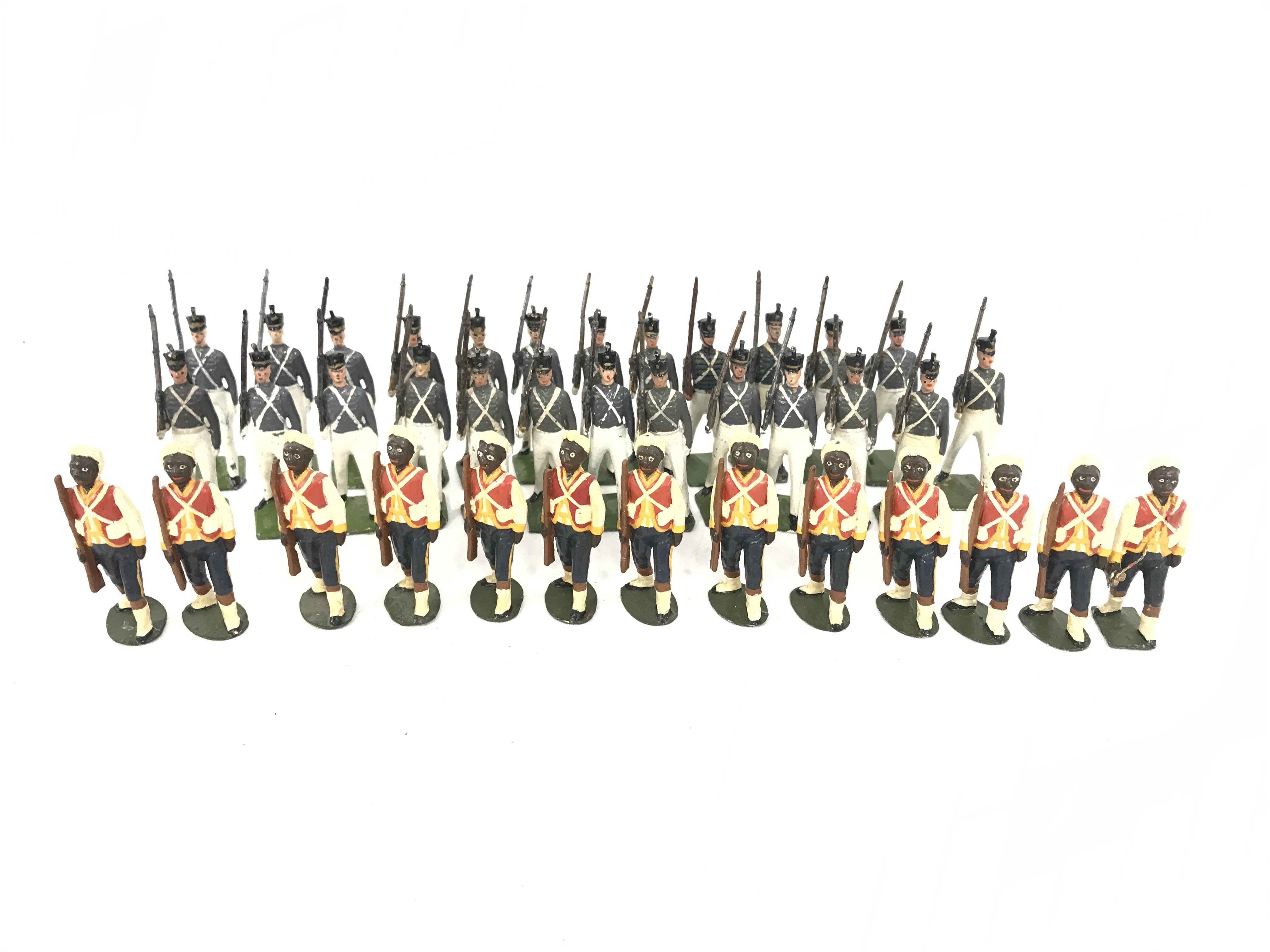 A Collection of Vintage Britains Figures. 25 West Point Cadets and 12 West Indians- Restored. No Reserve.