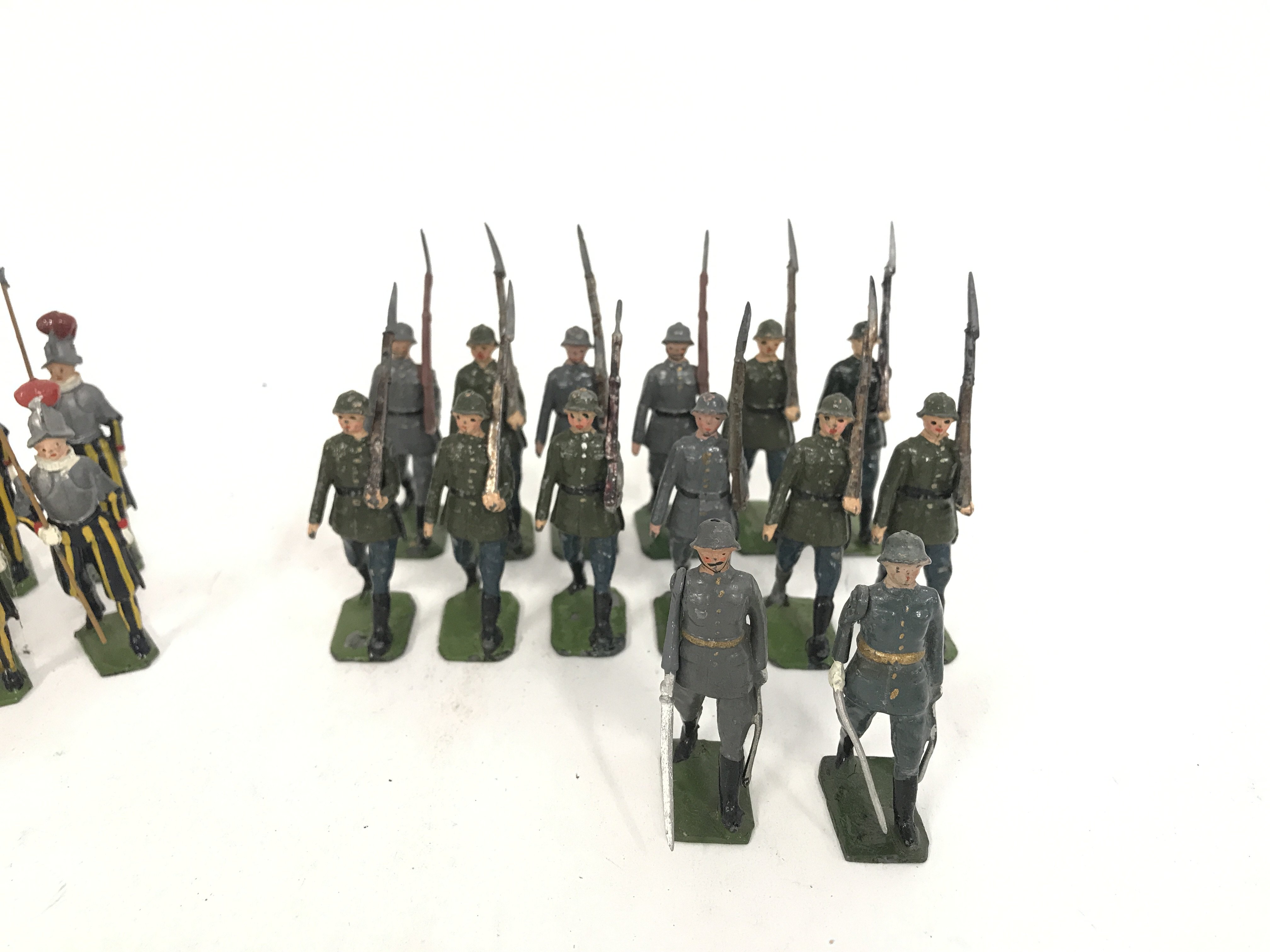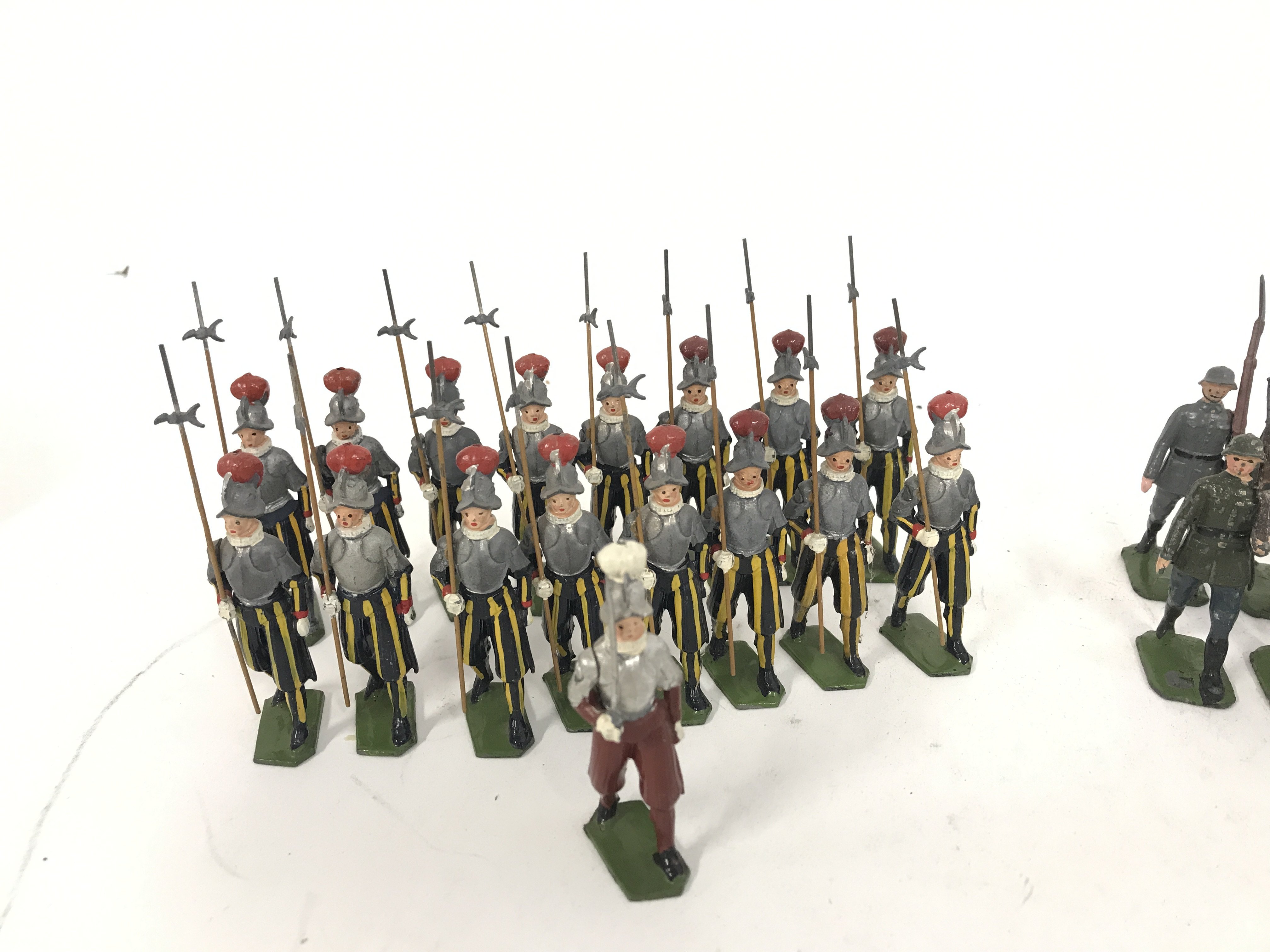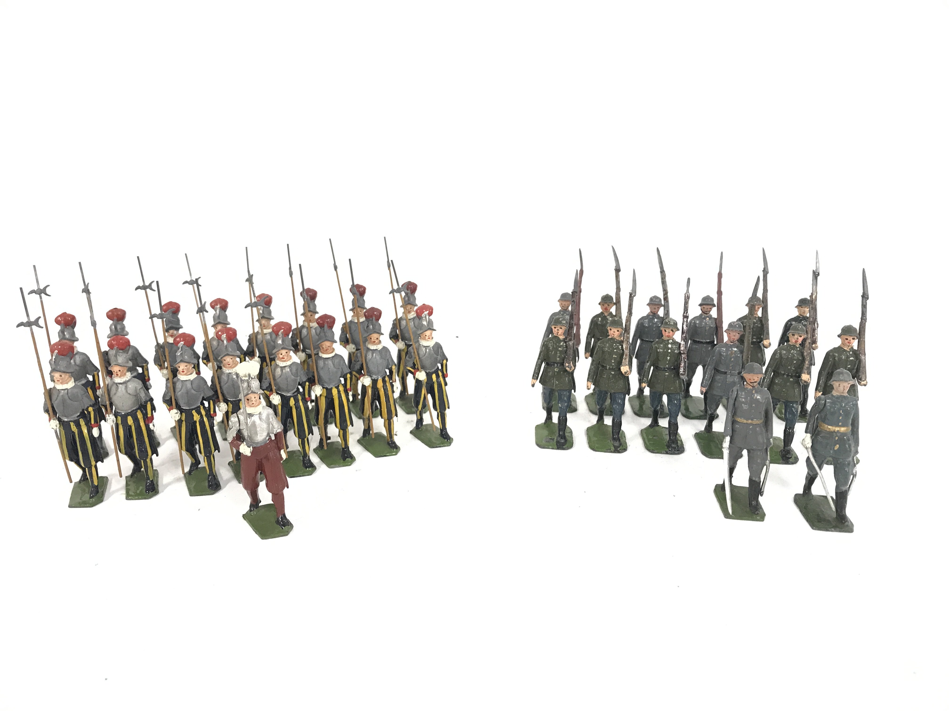 A Collection of Vintage Britains Soldiers.16 Swiss Vatican Guards with Officer and 12 WW2 German Infantry with 2 Officers. No Reserve.